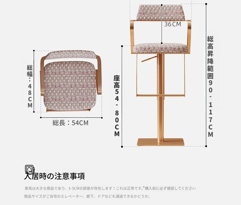 【2台】ダイエ影花紙【フランス輸入ジャガードコットンリネン】回転昇降バースツール