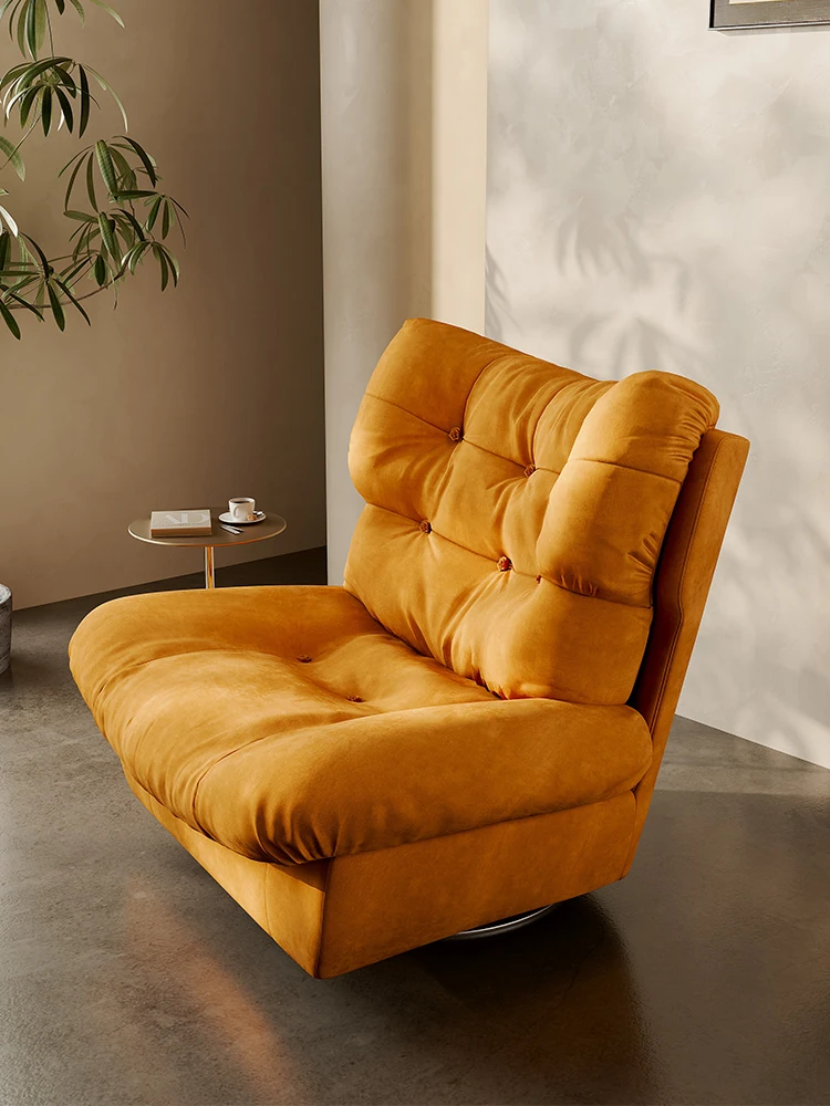 【現貨1点】Milano回転椅子【フランス輸入スエード】[メープルイエロー]105*106*105cm