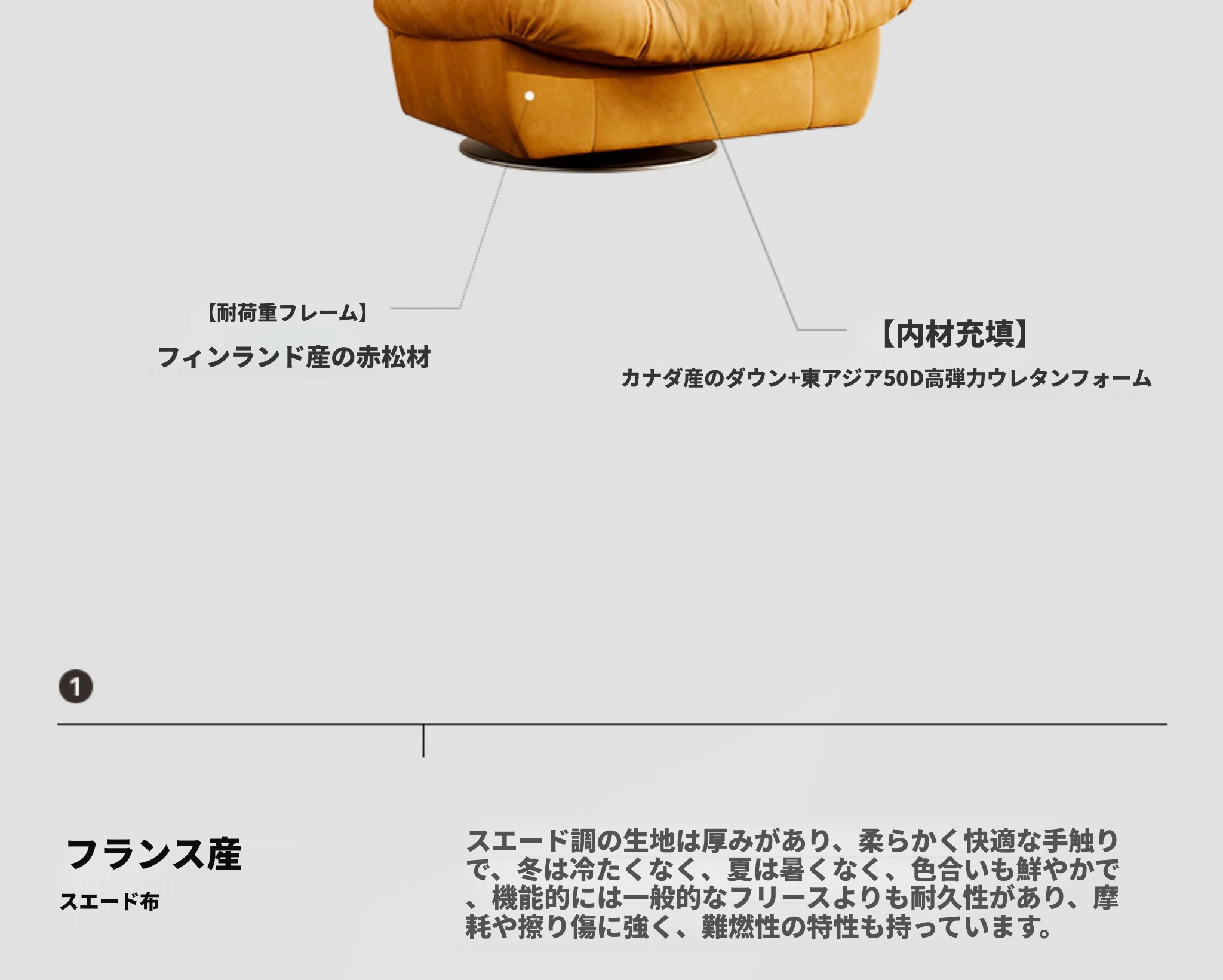 メロアルト 雲のようなリクライニングチェア ミラノスタイルの軽やかなラグジュアリー ダウン素材使用のスエード仕上げ リラックスできるソファチェア 睡眠・横になれる機能付き