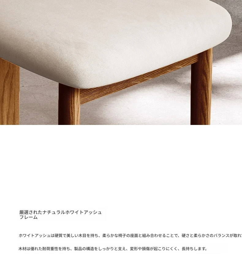 【少量在庫】【2脚】ムーンライトライス【フランス輸入ミルクベルベット+北米産ホワイトアッシュフレーム】アートダイニングチェア