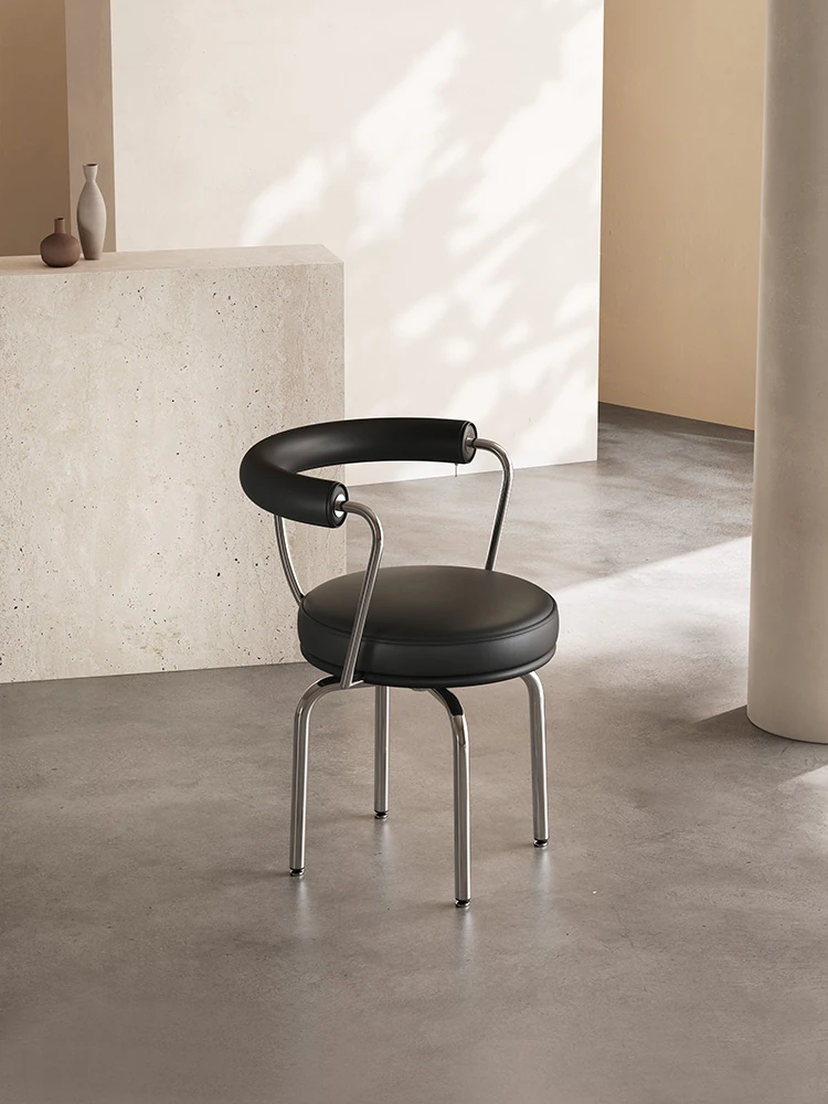 デザイナー回転ダイニングチェア【イタリアンフルグレインレザー+オーステナイト316ステンレス鋼】