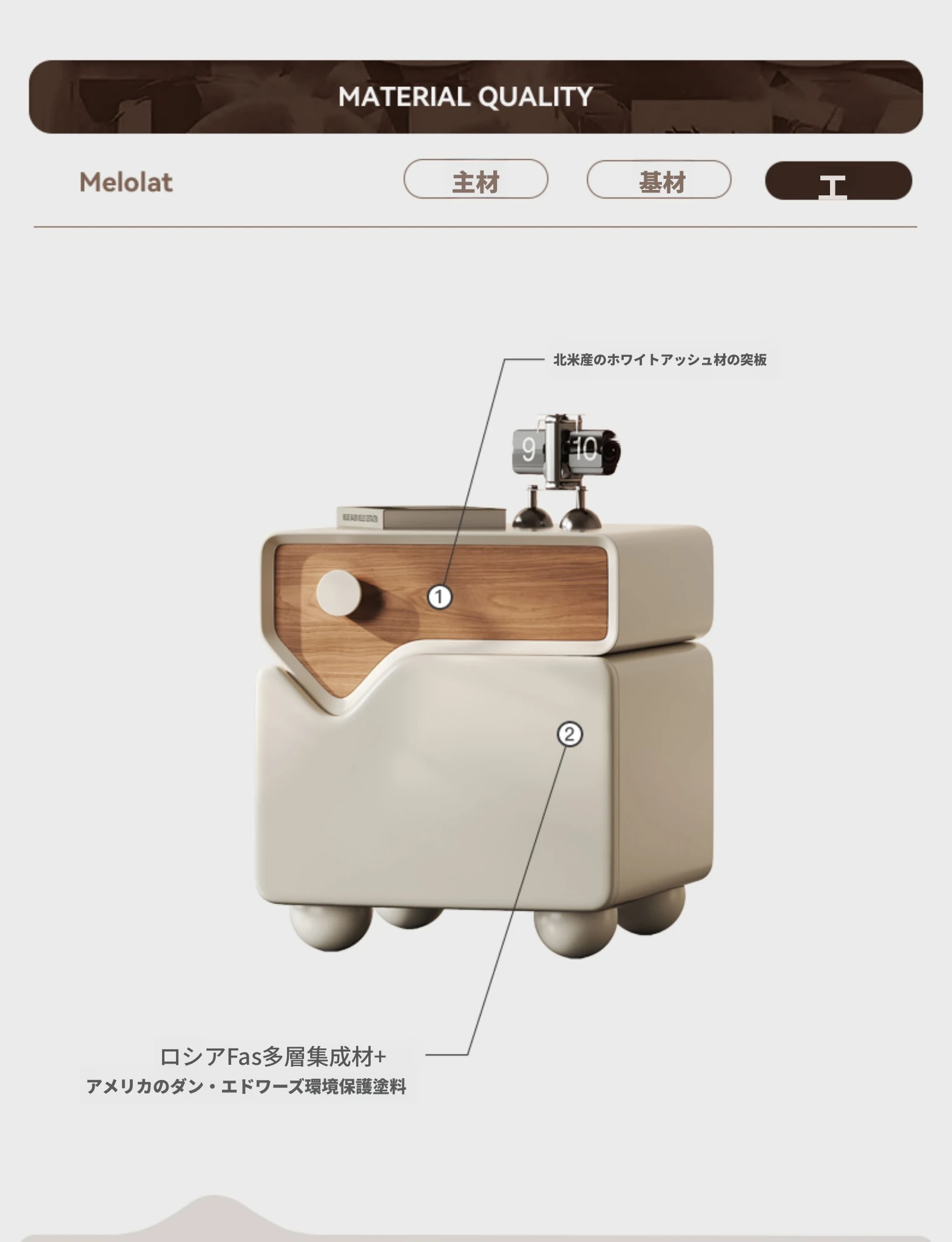 【少量現貨】【Melolatオリジナル発表】 [北米原産ホワイトアッシュ突板] デザイナーのナイトテーブル