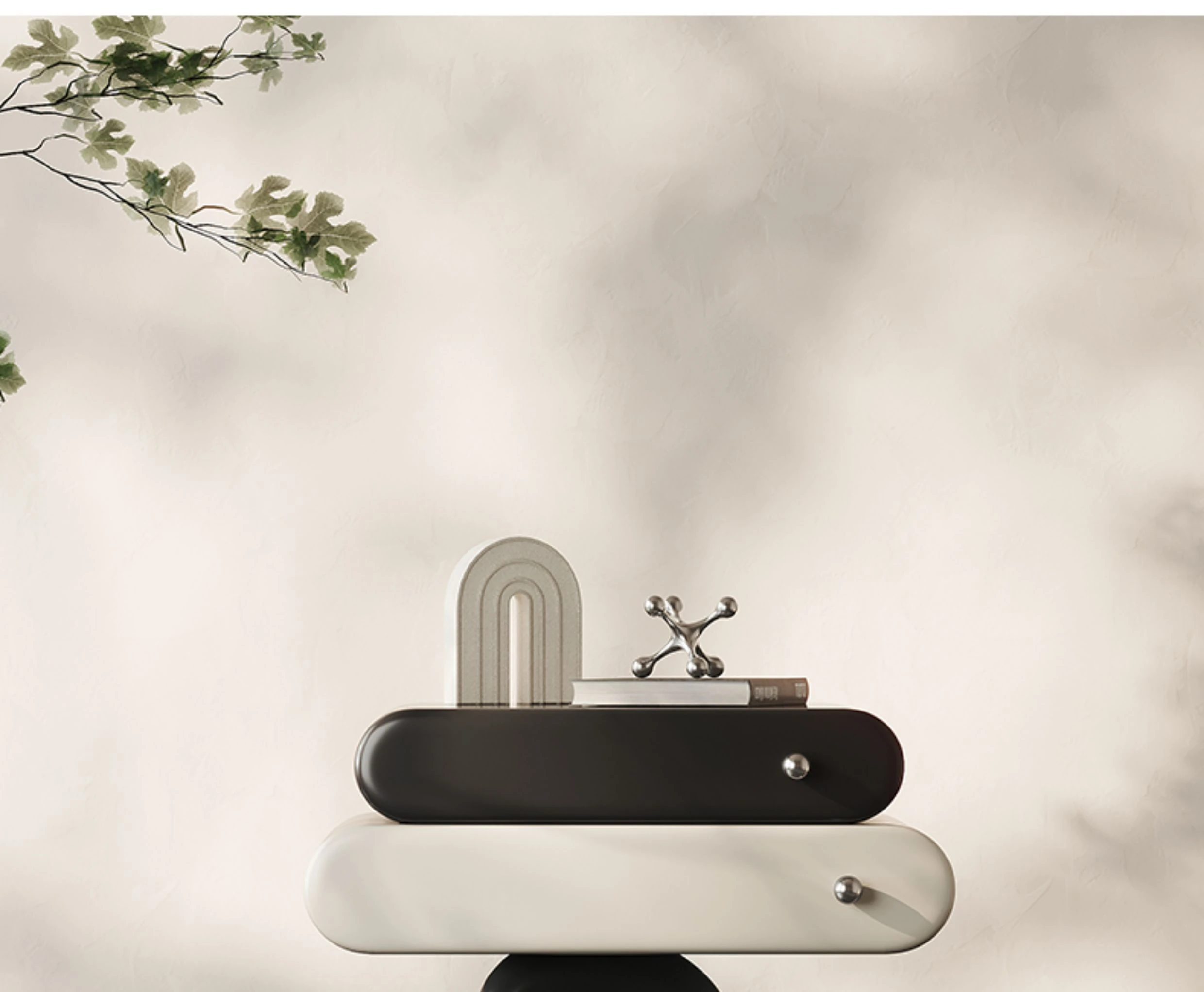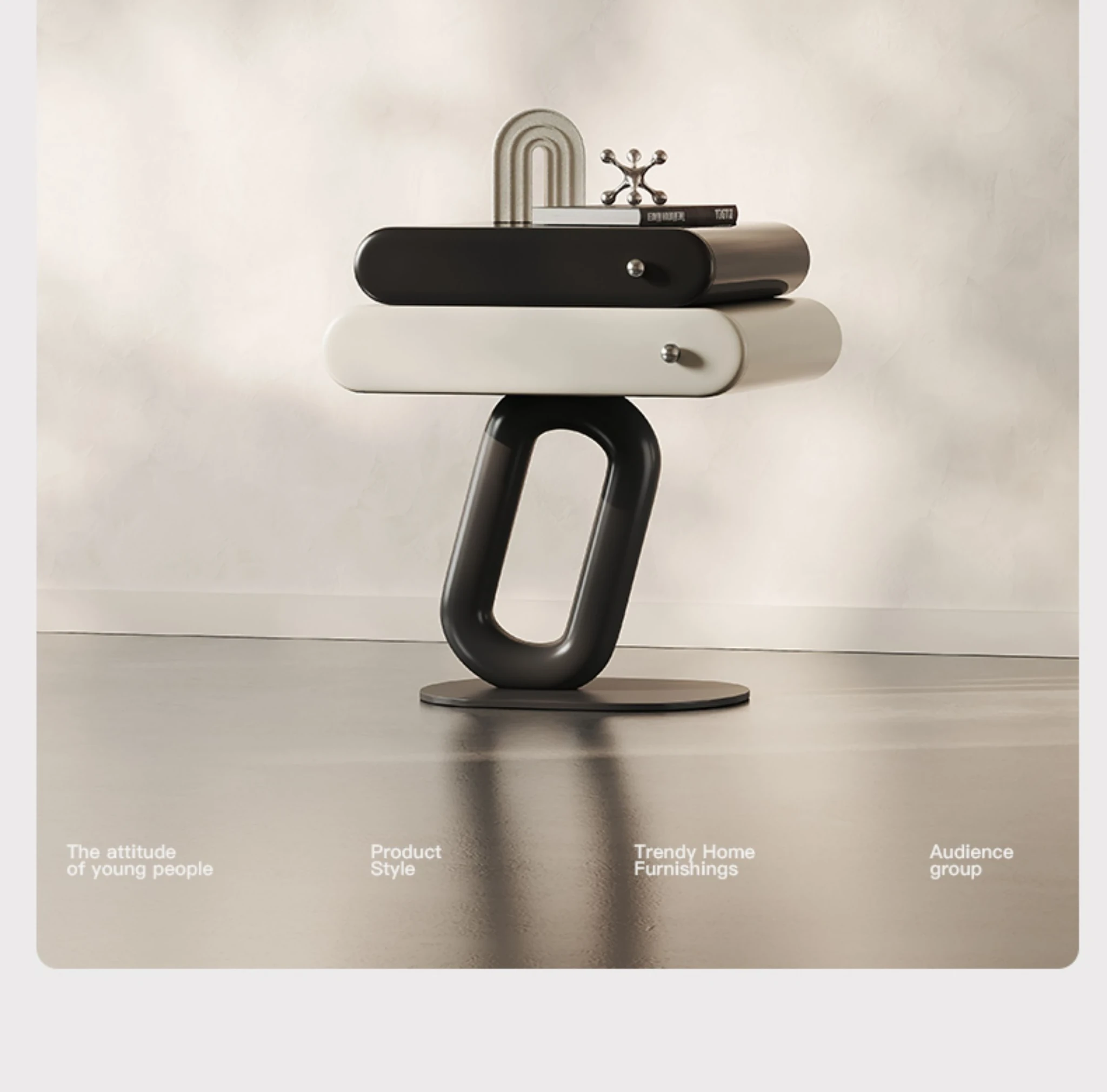 Meloaltオリジナルデザインのナイトテーブル|イタリアンミニマリズムで洗練された雰囲気の寝室用クリームカラー収納キャビネット!スタイリッシュな空間を演出し、機能性と美しさを兼ね備えた一品。