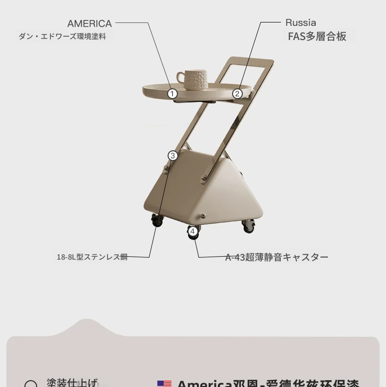 【少量現貨】【2025オリジナル初発】[ロシア輸入FAS多層積層板] キャスターサイドテーブル