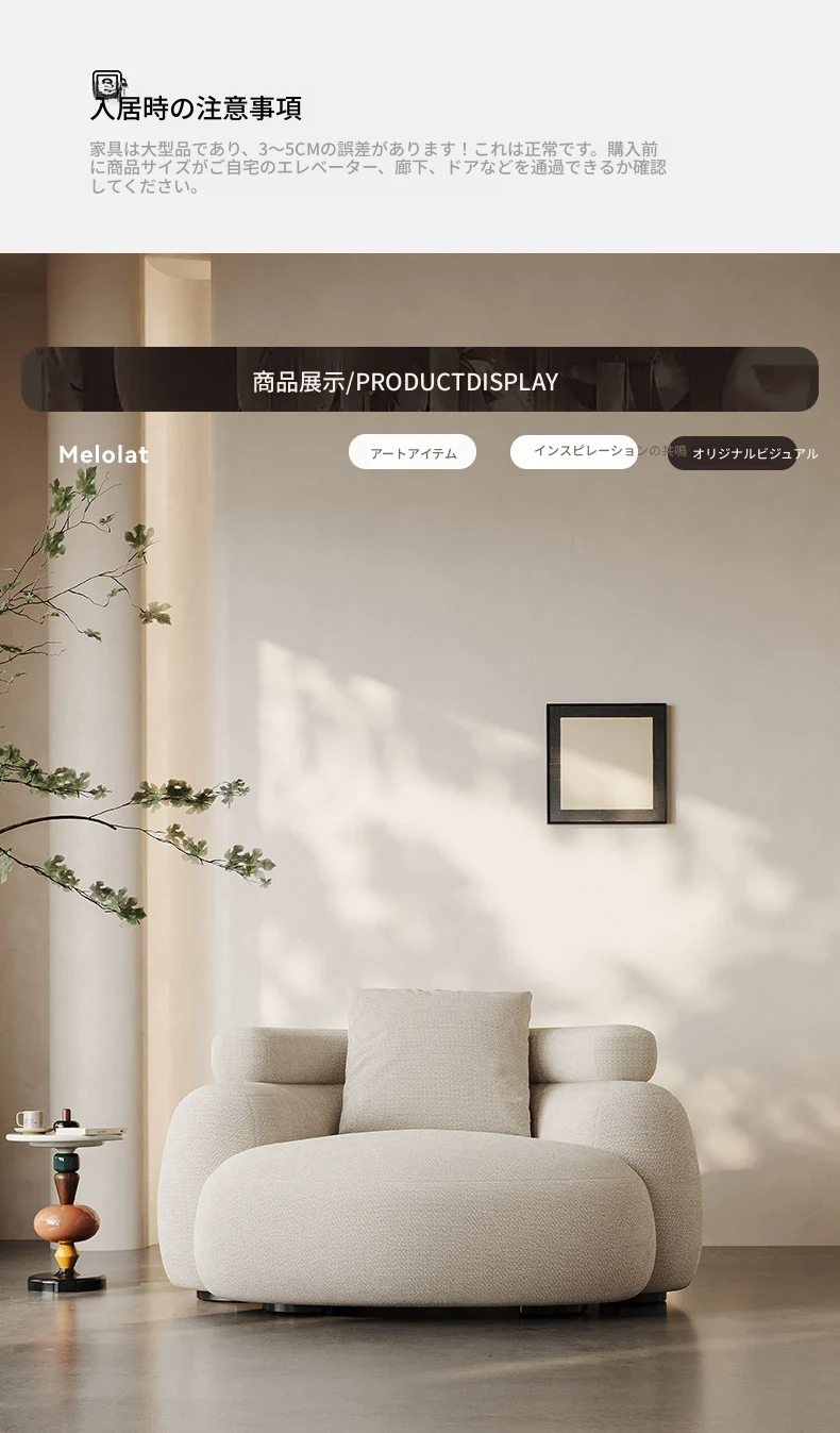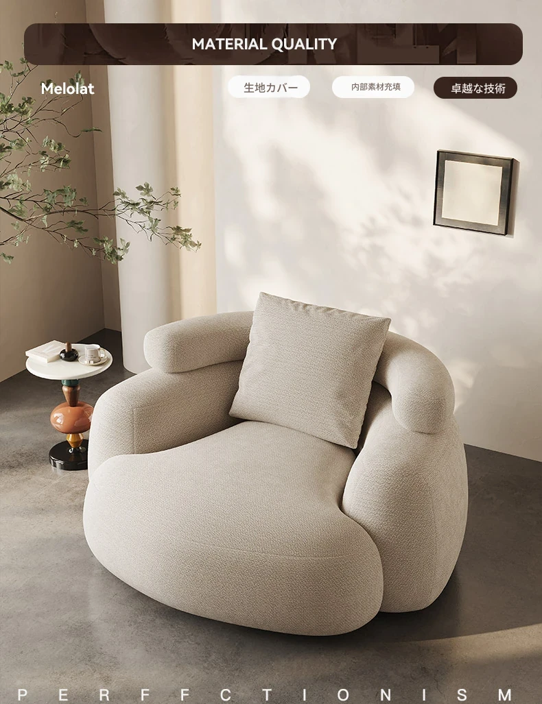 Meloaltオリジナルデビュー!イタリアンラグジュアリーの布製一人用ソファ。バルコニーやリビングにぴったりのリラックスソファチェア。快適さとスタイルを兼ね備えたおしゃれなアイテム!