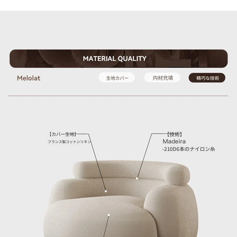 月光米【2025オリジナル発表】[フランス輸入天然コットンリネン] デザイナーソファチェア