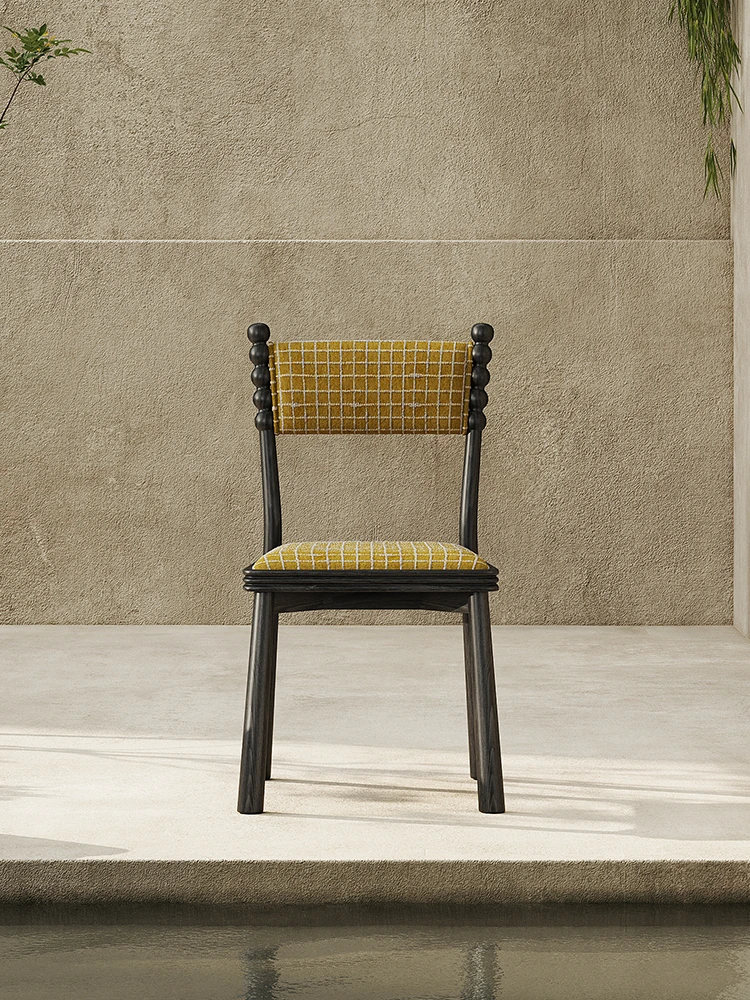 【2脚】山川芸野【フランス輸入ニット提花コットンリネン+北米輸入原生ホワイトアッシュ】アートダイニングチェア