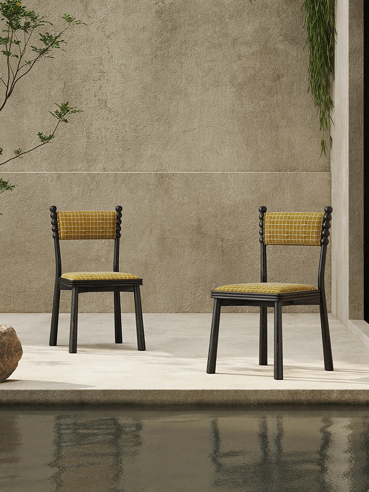 【2脚】绿澜白韵【フランス雪尼ール提花布+北米輸入原生ホワイトアッシュ】アートダイニングチェア