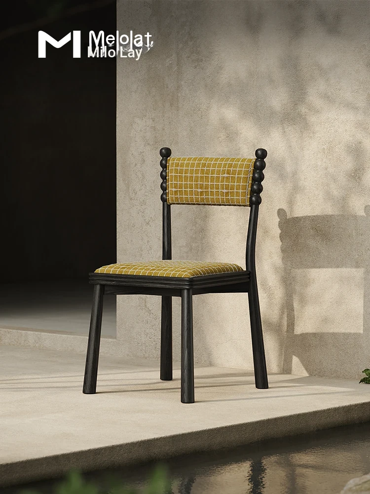 Meloalt無垢材フレンチヴィンテージ化粧椅子 - おしゃれなデザインの寝室&ダイニング用椅子!背もたれ付きで快適な座り心地、あなたの空間を格上げします。