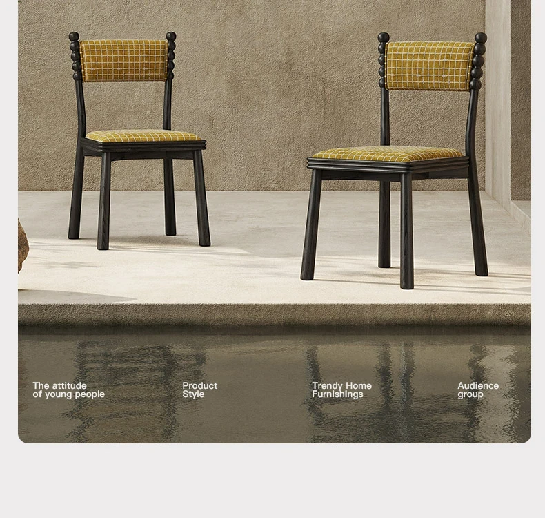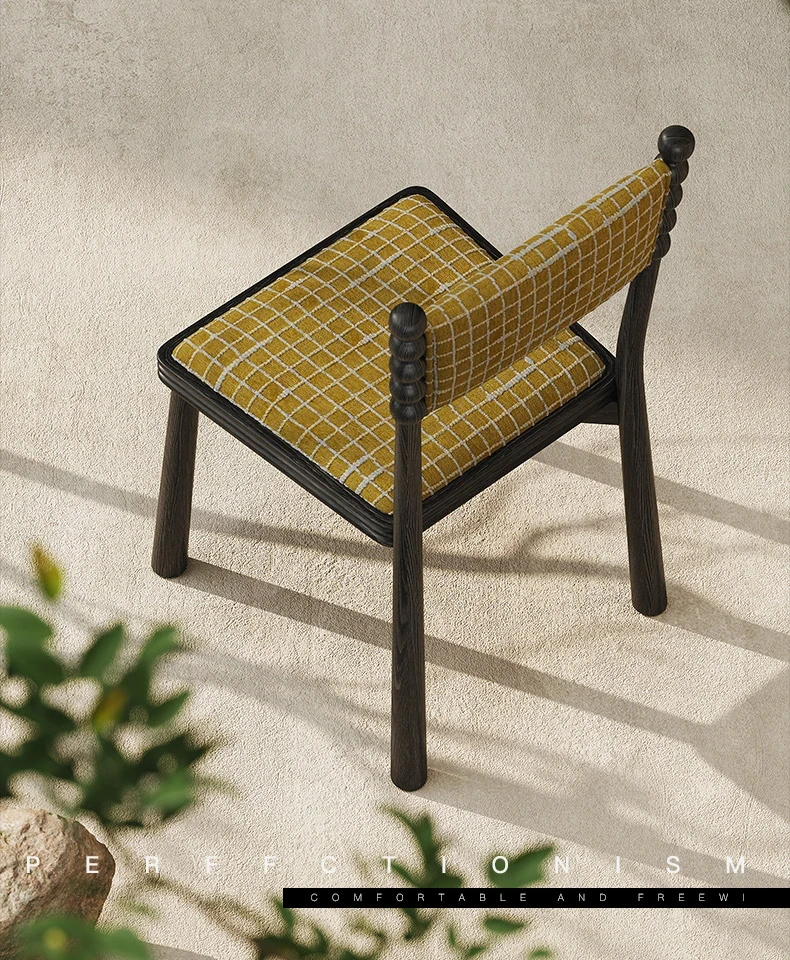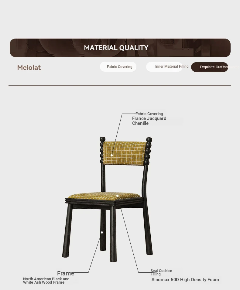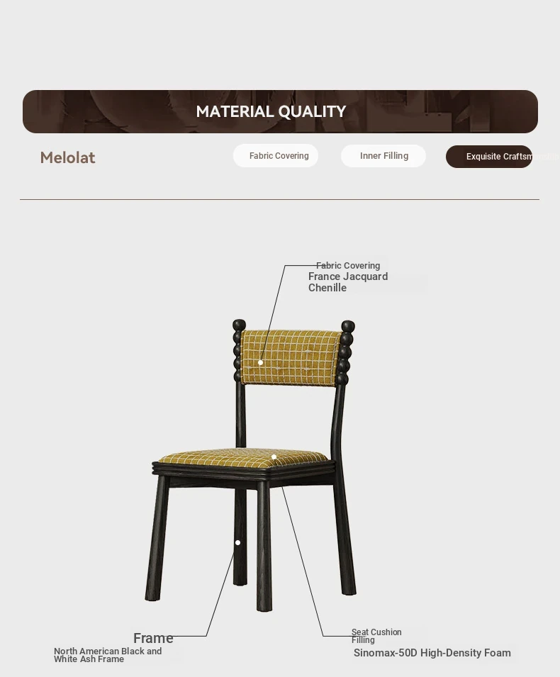 【2脚】焦糖织絮【フランス輸入ニット提花コットンリネン+北米輸入原生ホワイトアッシュ】アートダイニングチェア