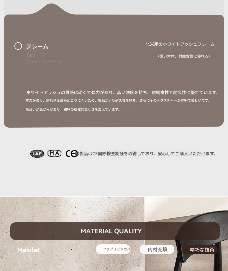 Melolatアメリカンスタイル無垢材ダイニングチェア|北欧モダンデザインのホワイトアッシュ製|快適な背もたれ付きで、家族や友人との食事をより楽しく!