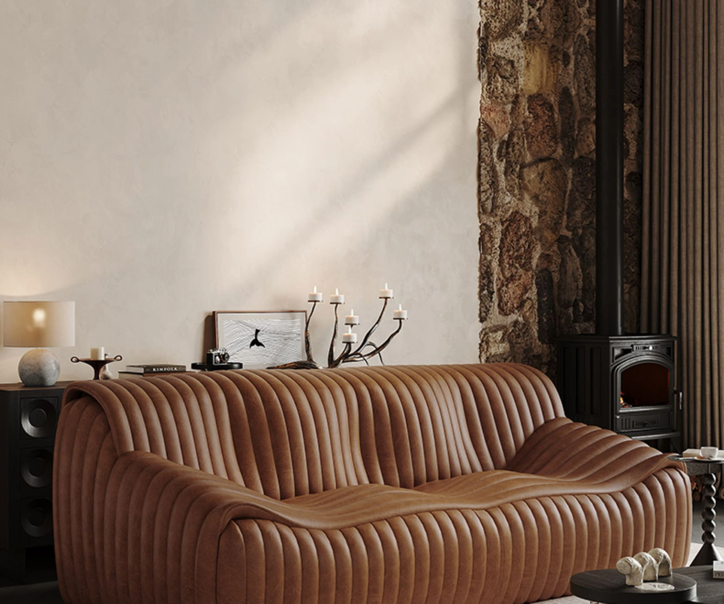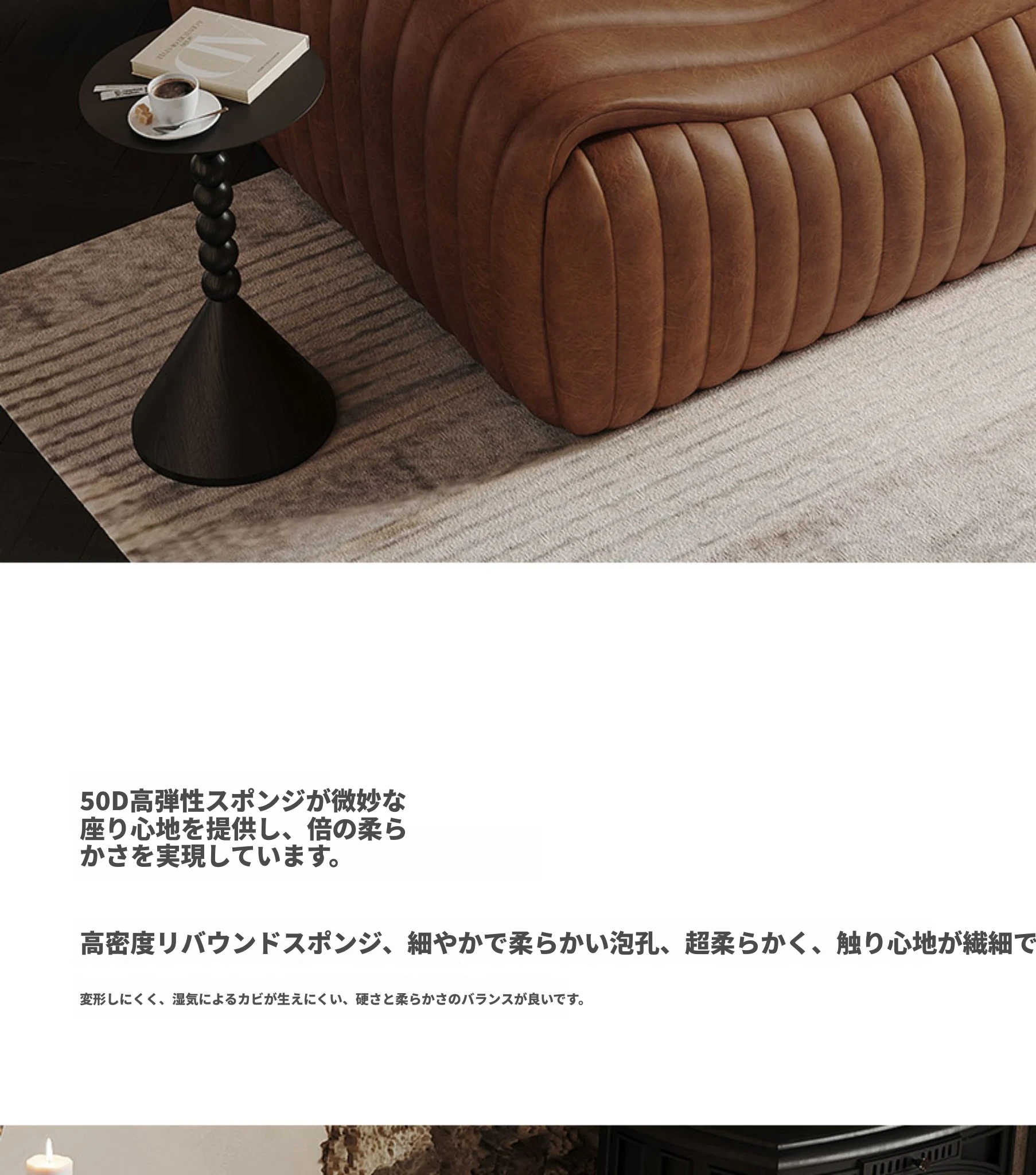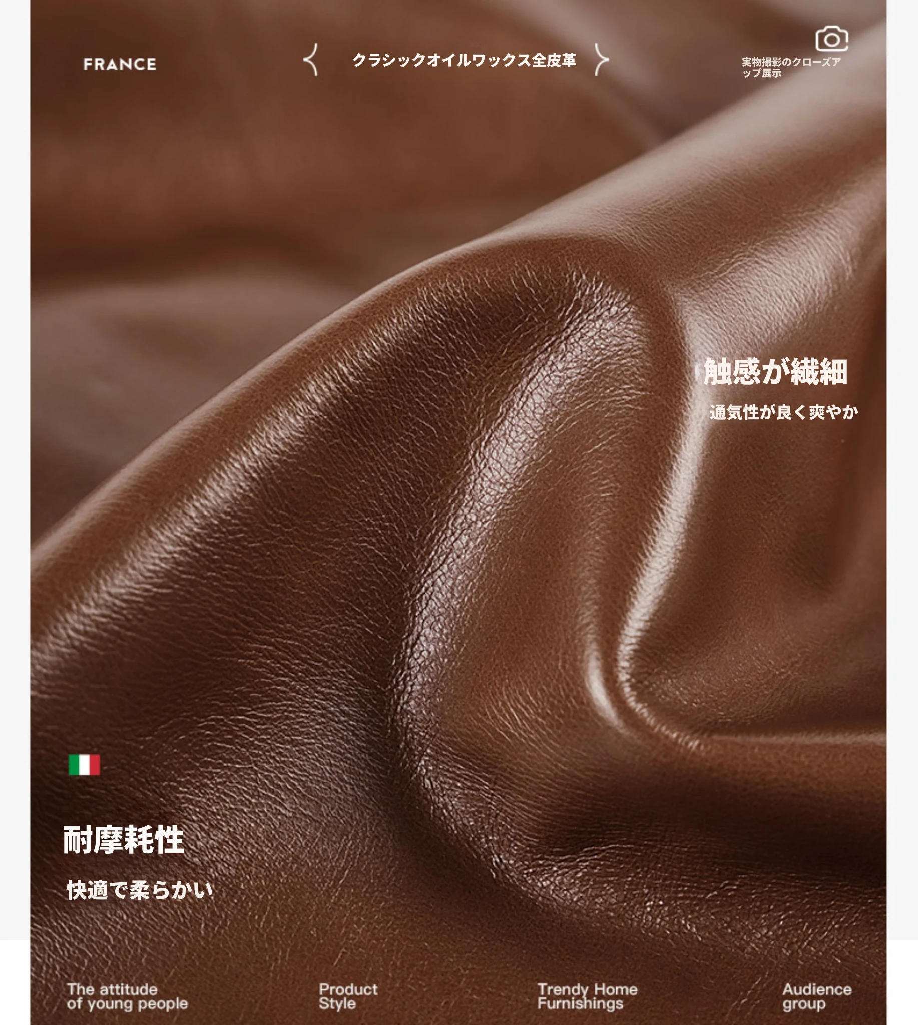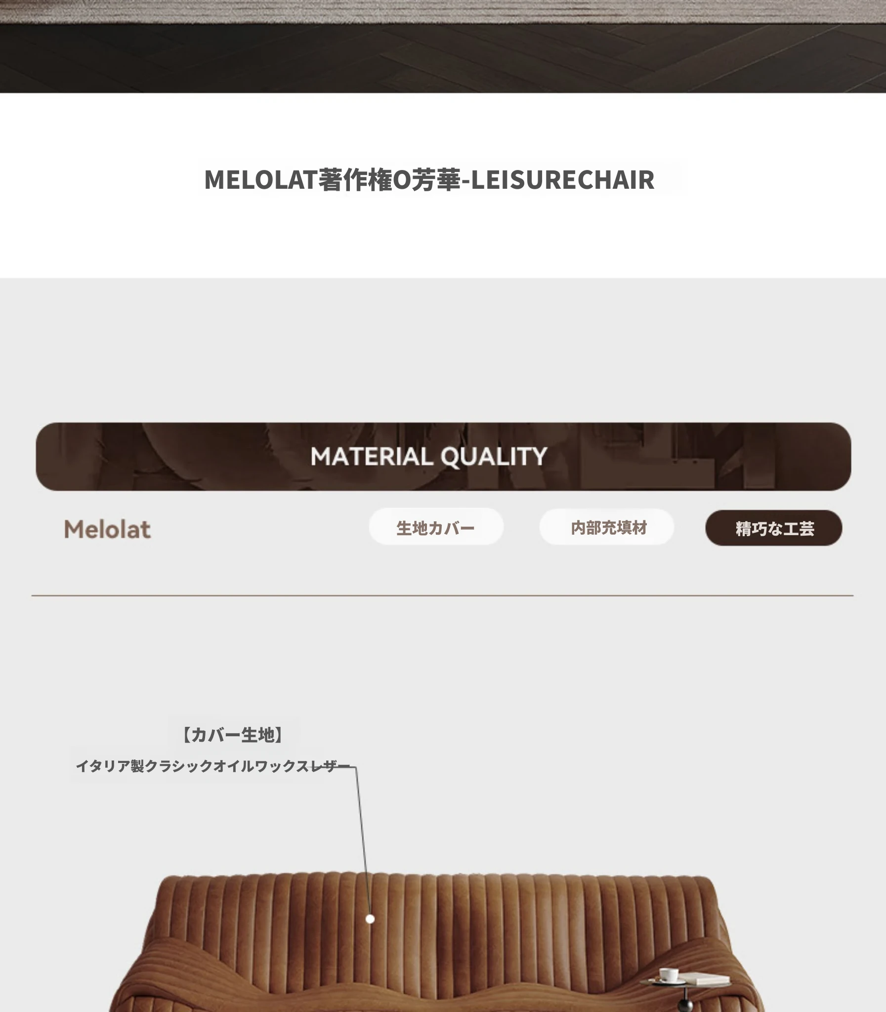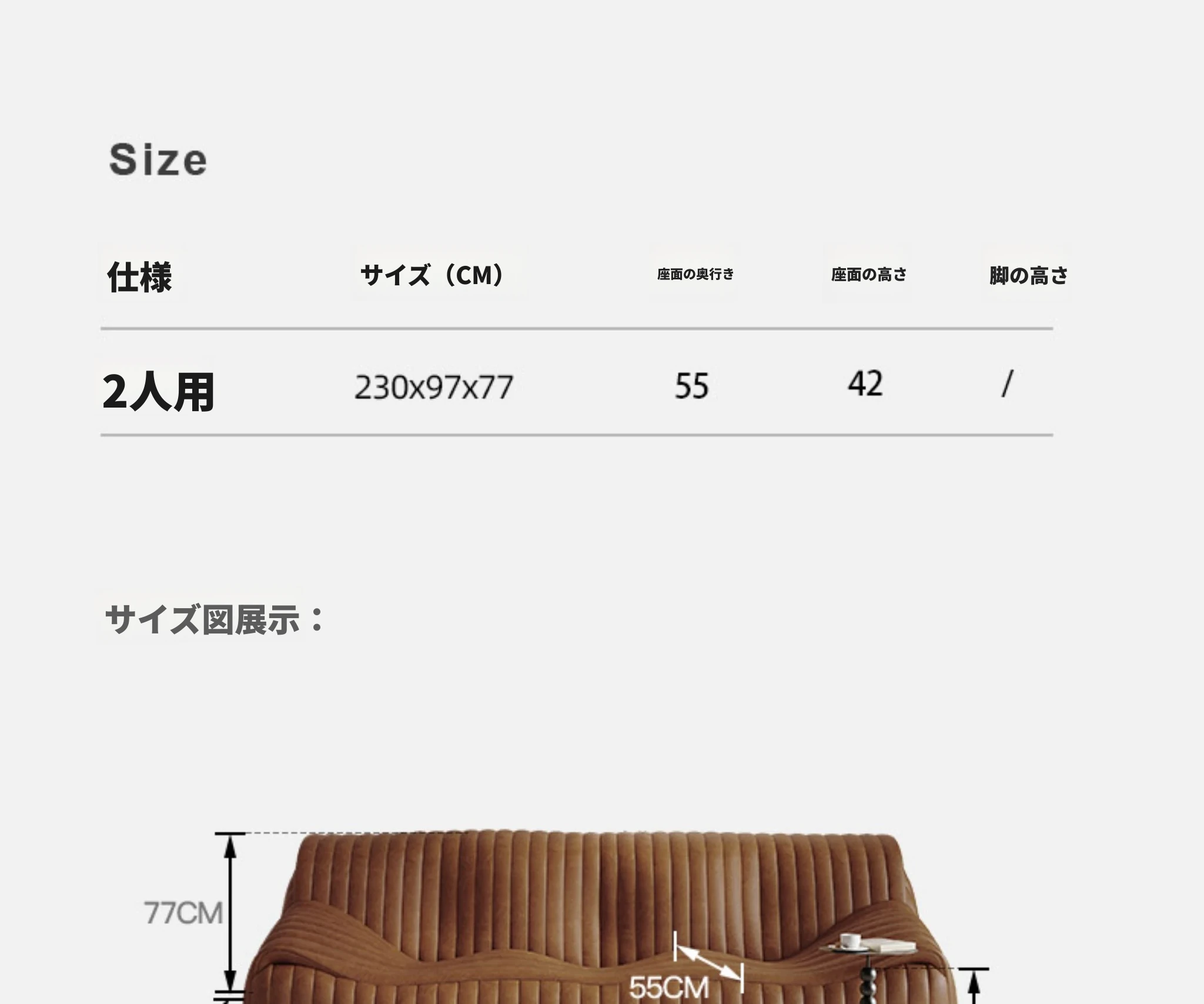 Melolatアメリカンヴィンテージオイルレザーウェーブソファ デザイナー直輸入 三人掛けフレンチスタイル本革ソファ - 高級感あふれるデザインで、くつろぎのひとときを提供します!