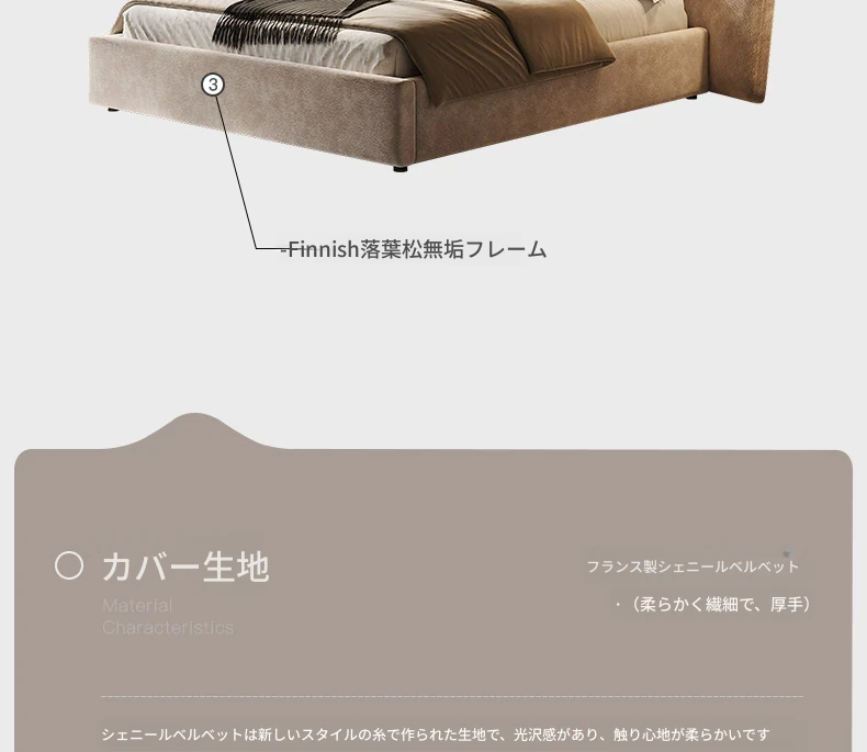 月光米 1.5メートルシングルベッド【フランス輸入シェニールベルベット】