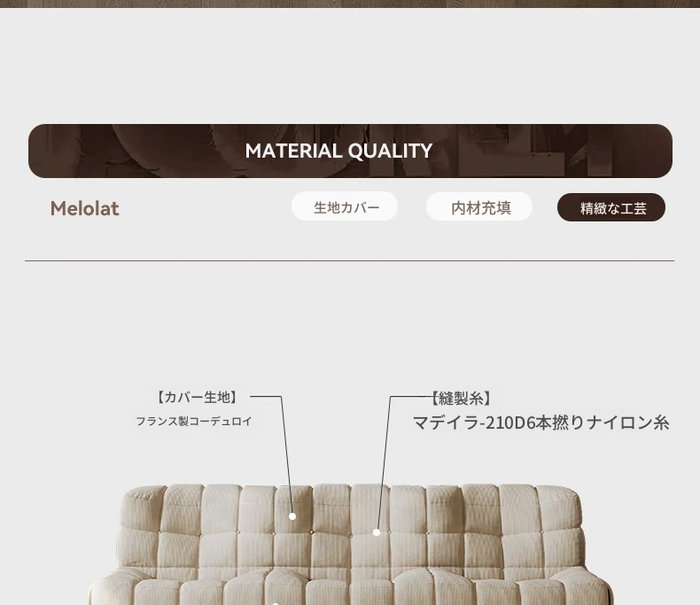 メロラット・シカ島ソファ|レトロデザインのワッフルスタイルで、居心地抜群の侘寂(わびさび)テイスト!シンプルで直線的なフォルムが魅力のリラックスチェア。おしゃれな客間にぴったり!