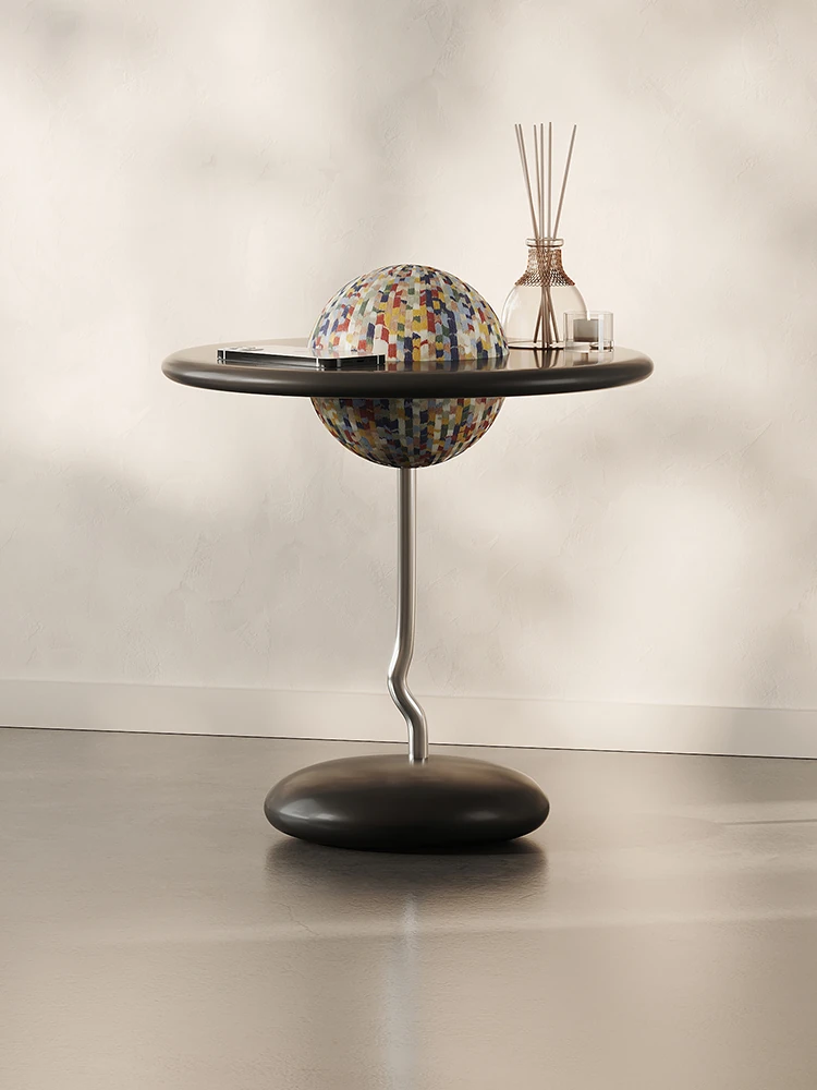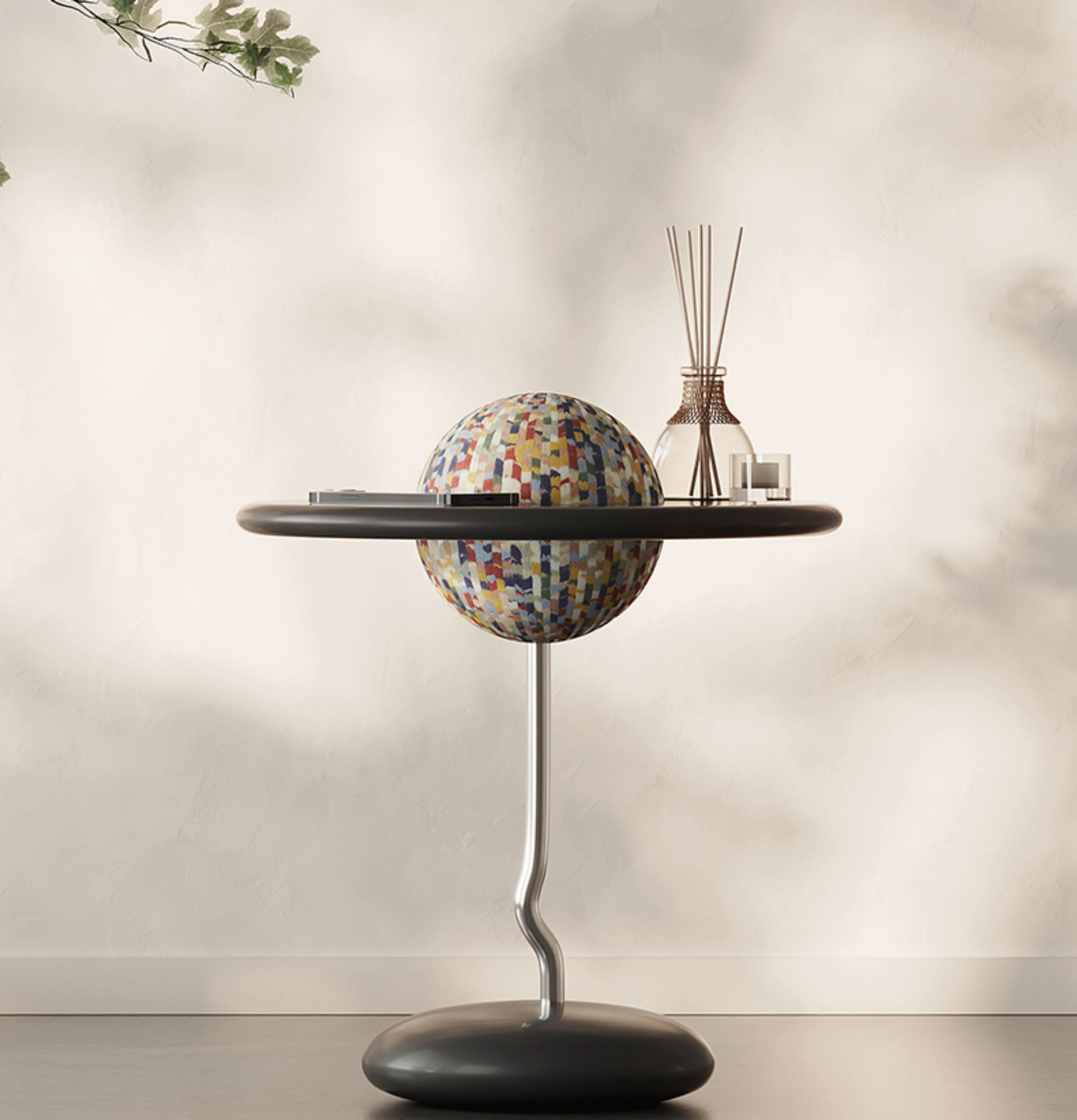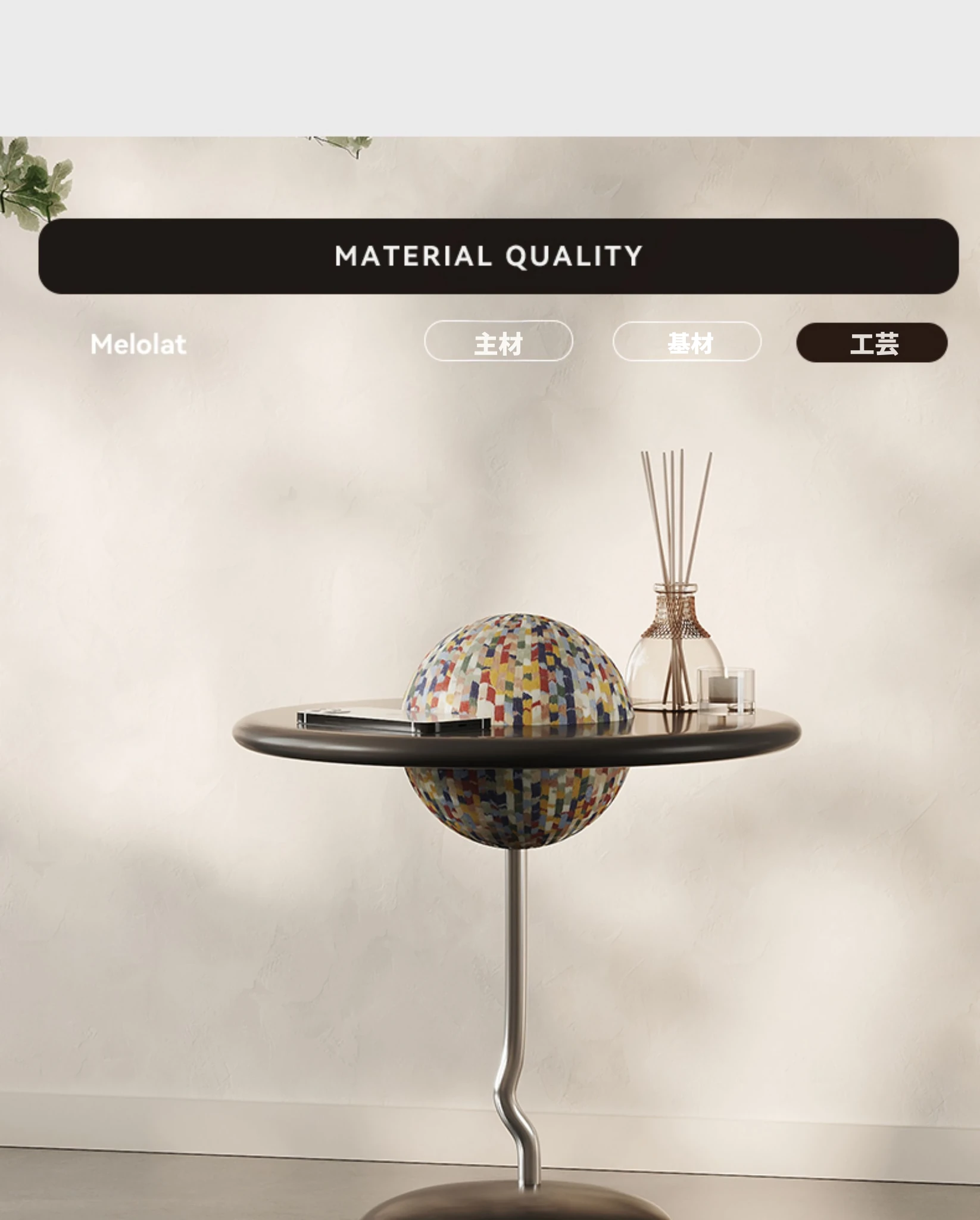 メロラットデザイナーの創造的なサイドテーブル - モダンでラグジュアリーなアートベッドサイドキャビネット、特許取得済みの侘び寂びスタイルで、リビングや寝室に最適!