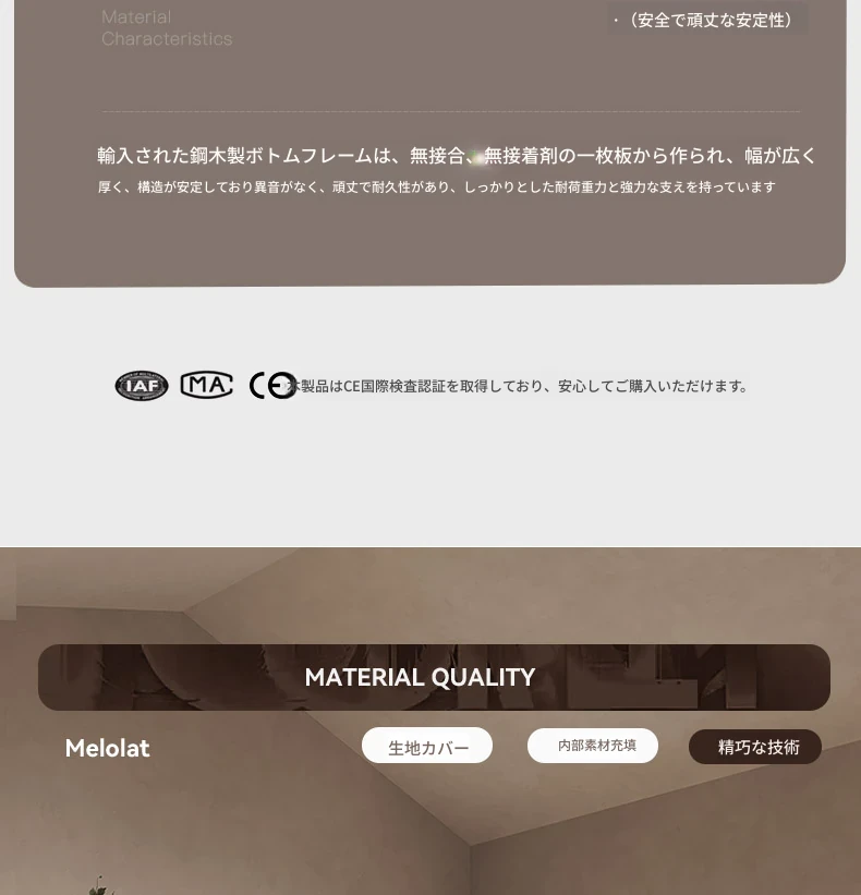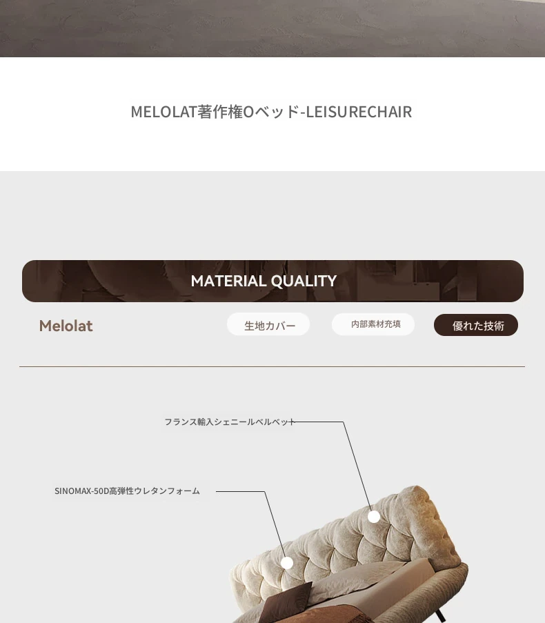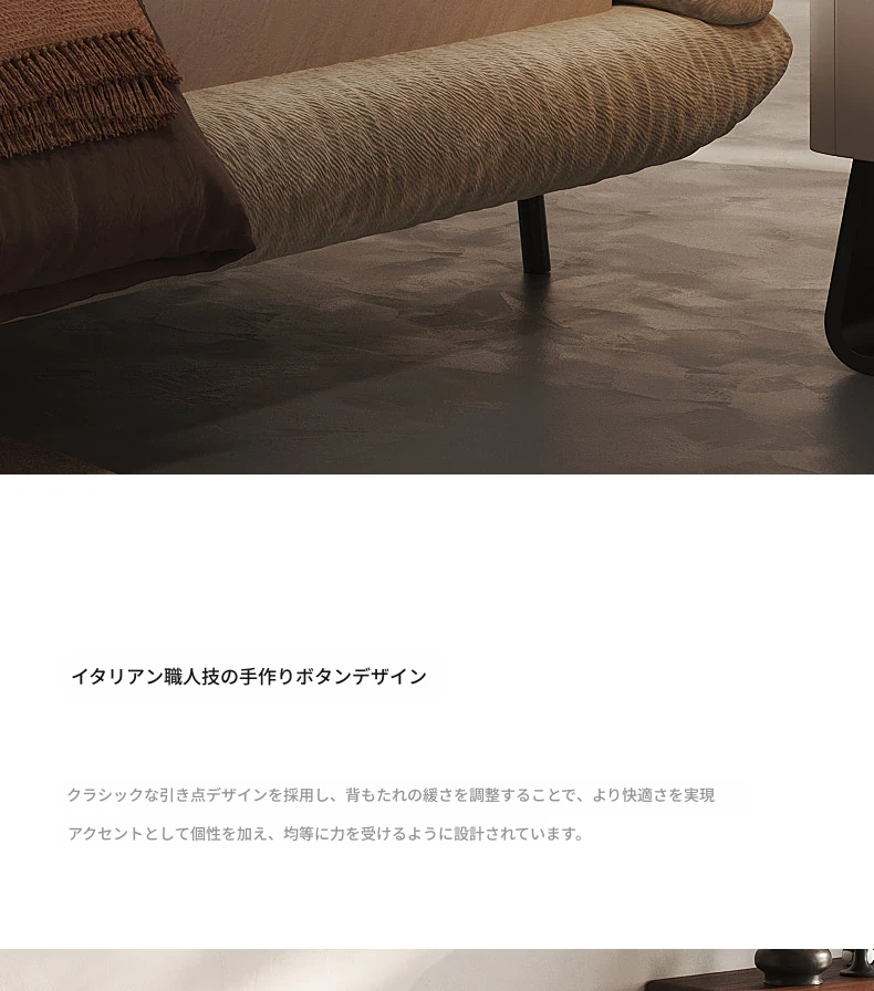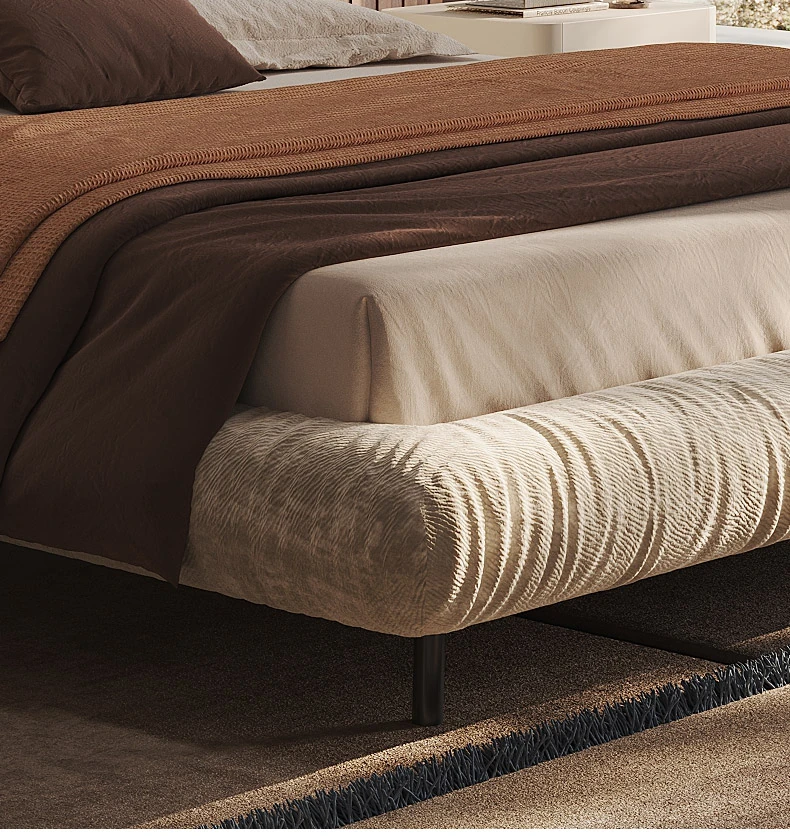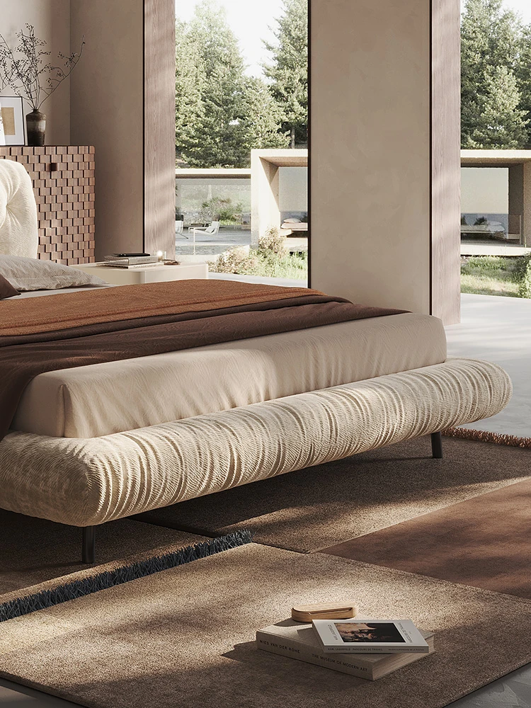 メロラットデザイナー布製ベッド|イタリアンミニマリストクリームスタイルの主寝室用ダブルマリッジベッド|現代的なシンプルさを追求した特許取得済みベッド