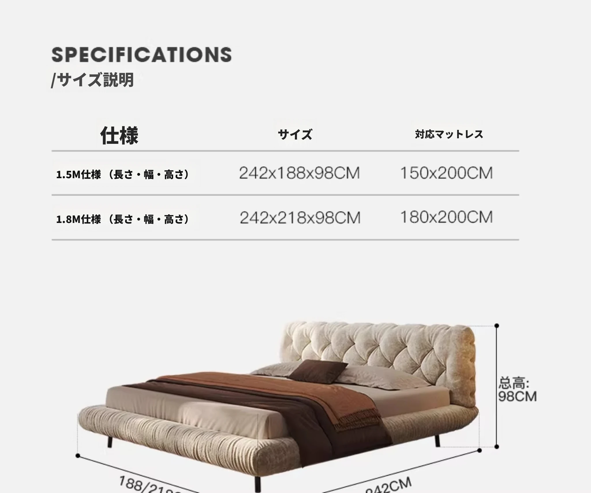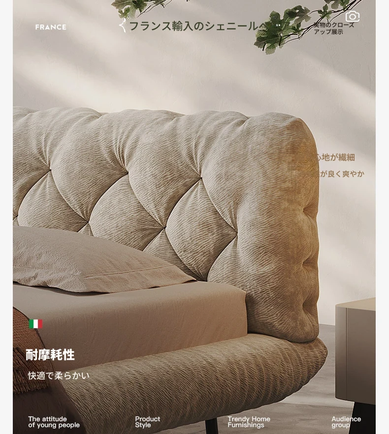 アイボリー 1.8メートル シングルベッド【フランス輸入 シェニールベルベット】2025特許新モデル