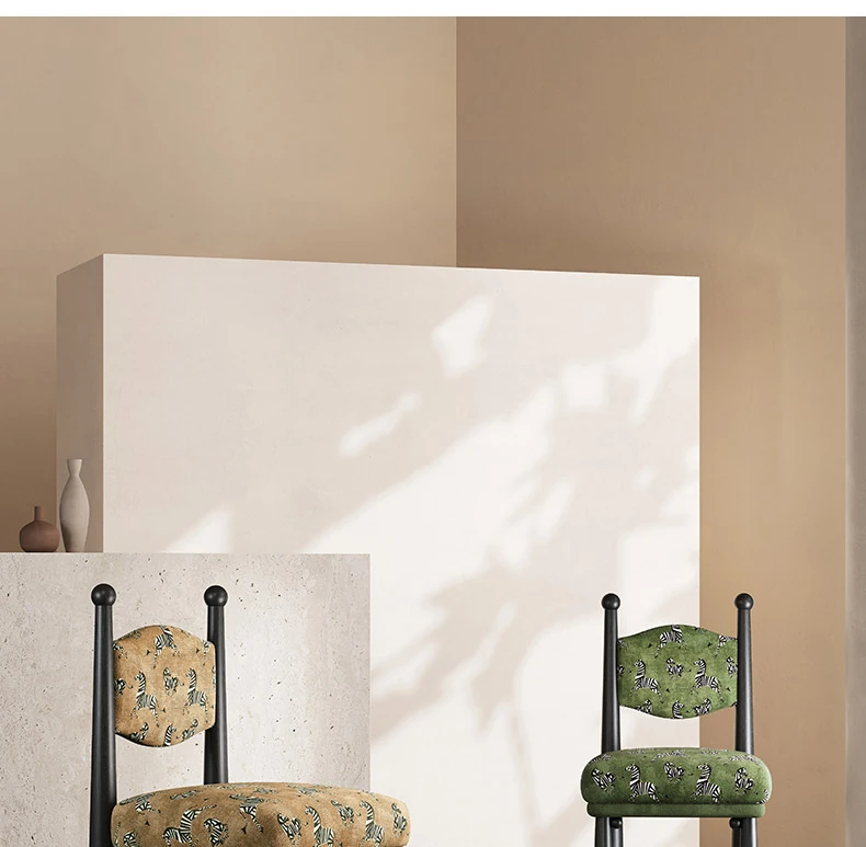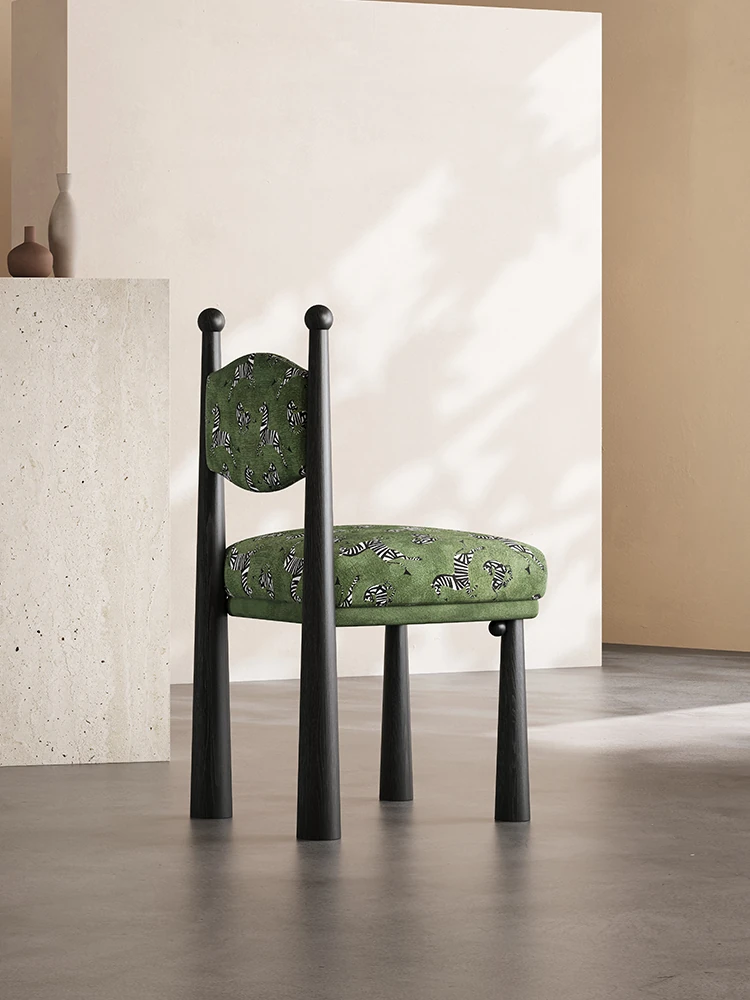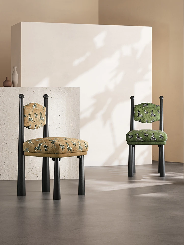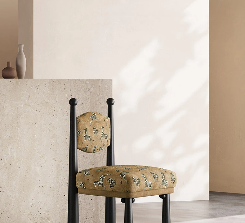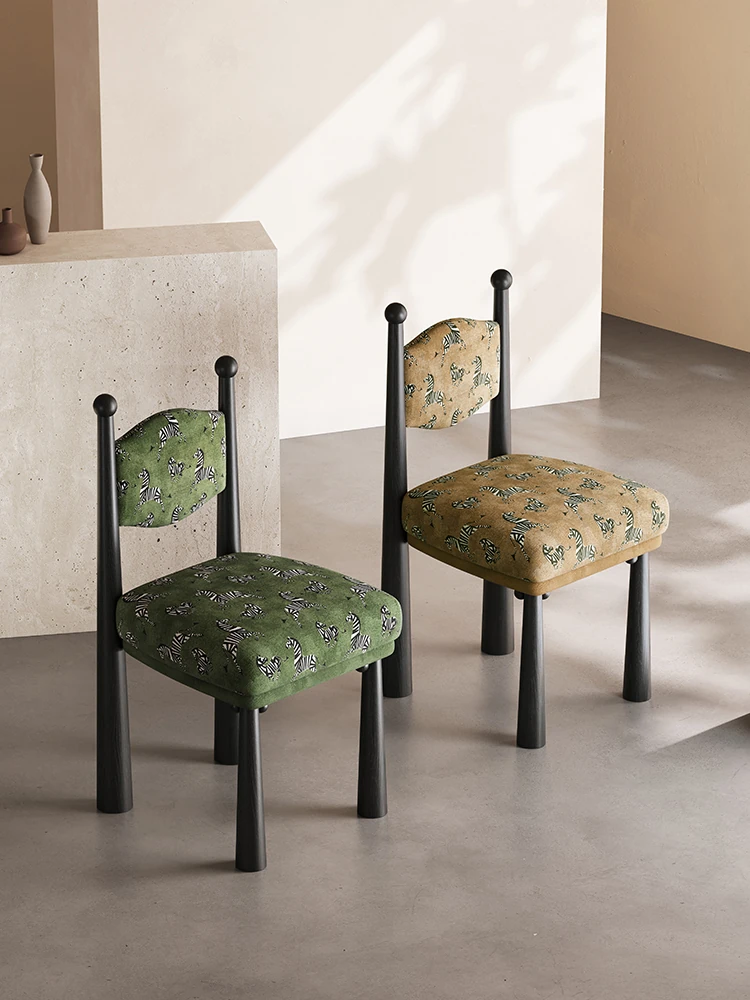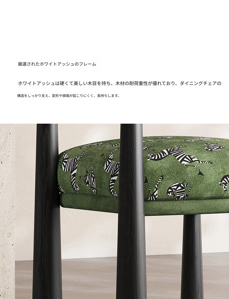 【2脚】碧縠苔原【フランス輸入ゼブラ柄生地+北米産ホワイトアッシュフレーム】アートダイニングチェア