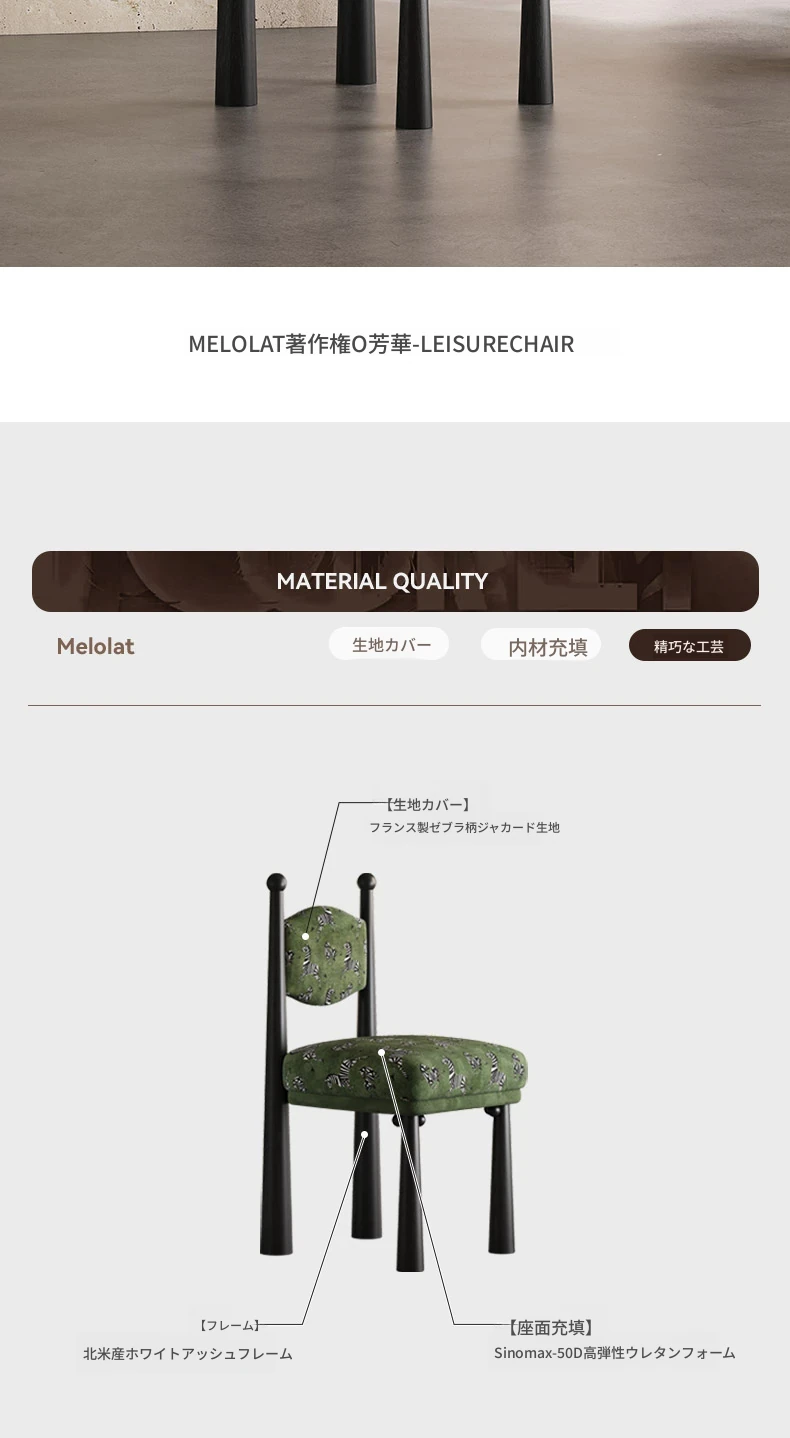 メロラット無垢材ダイニングチェア|デザイナーズフレンチアンティーク風|クリエイティブでラグジュアリーな高級感|レストランやリラックス空間に最適なスタイリッシュチェア