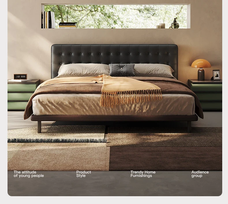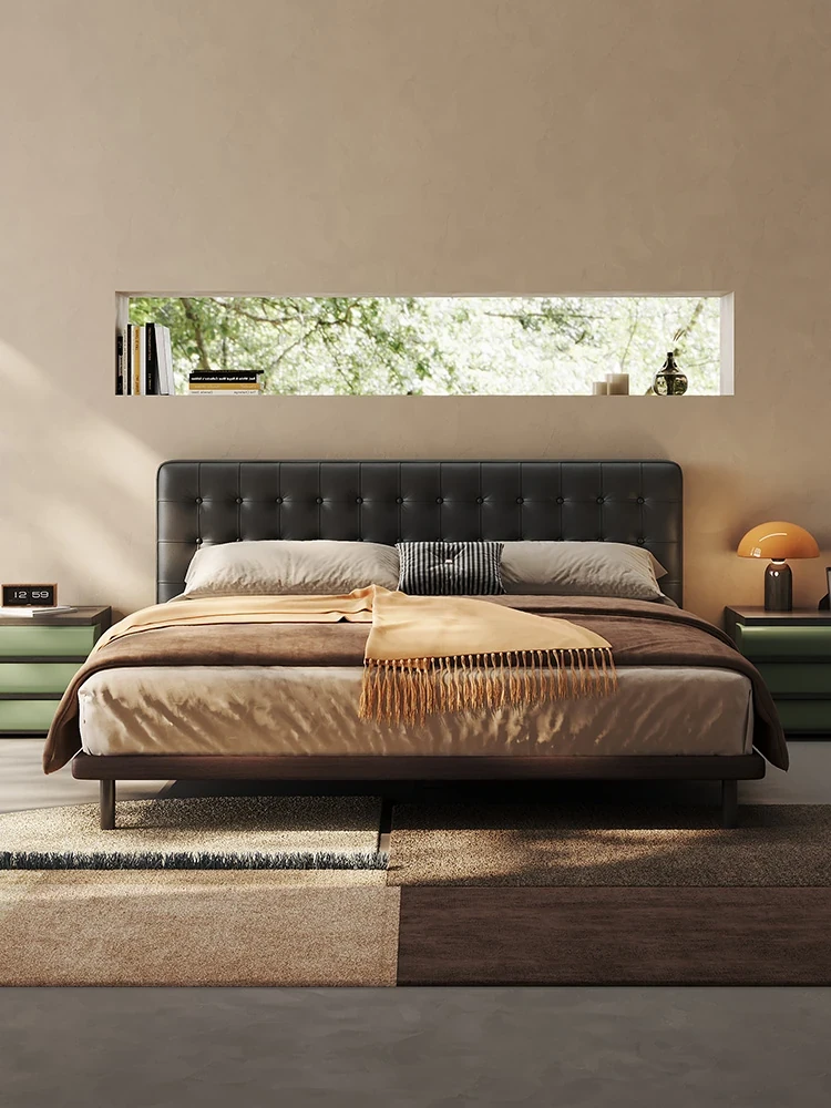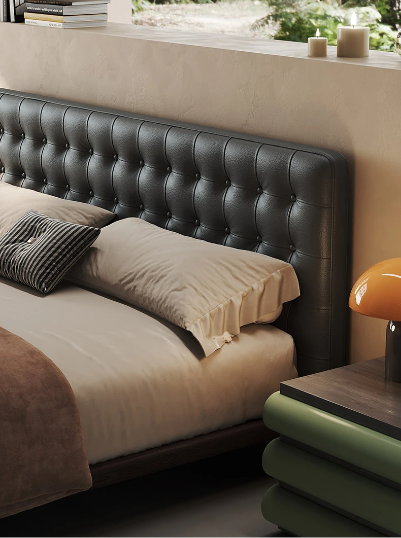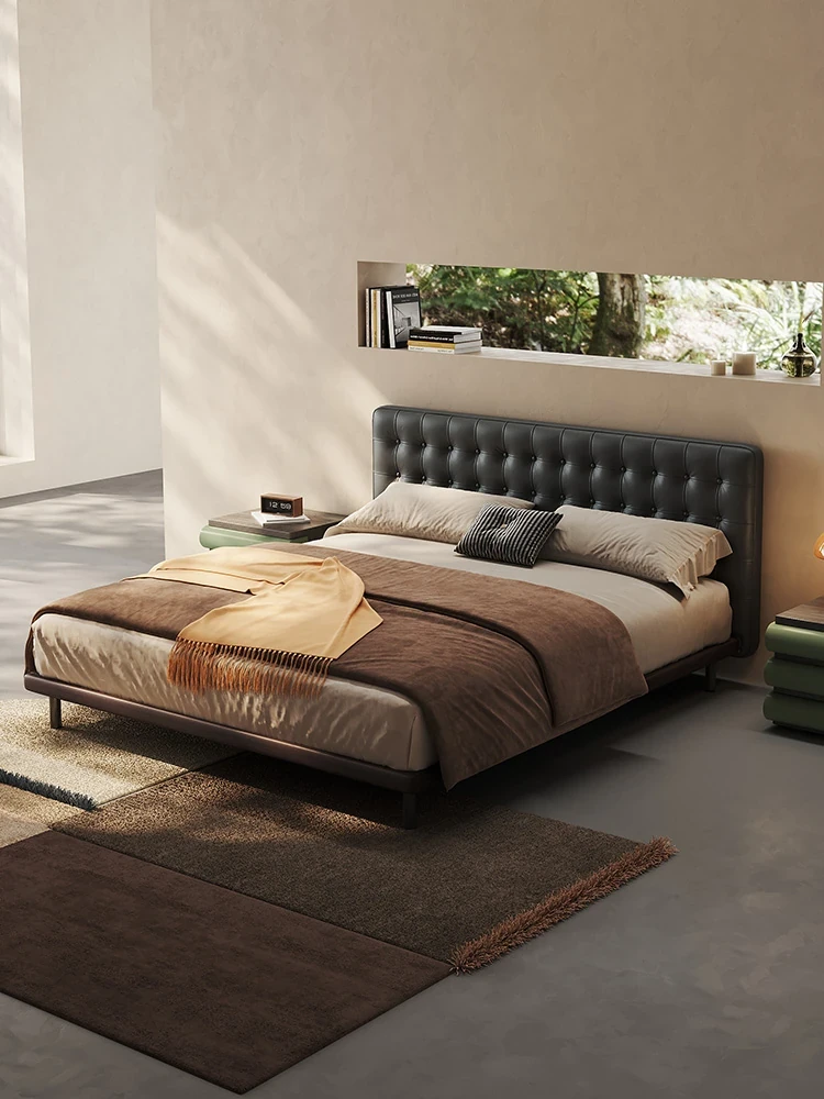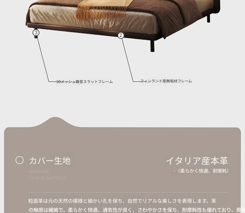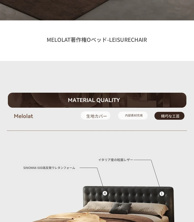 メロラット本革ベッド 高級感溢れるイタリアンミニマルデザイン 主寝室用ダブルベッド 結婚式用ベッド 静寂を感じる贅沢な空間を演出!