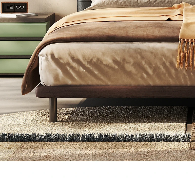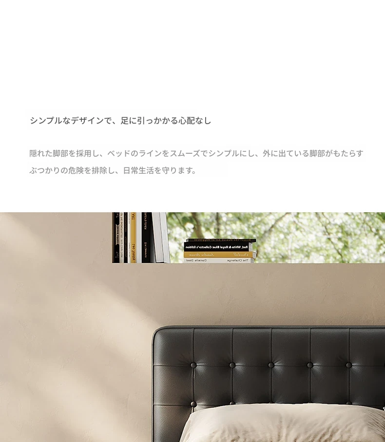 静謐なブラック 1.5メートルシングルベッド【イタリア輸入の原皮仕上げ】[アップグレードされた無垢材のベッドサイド]