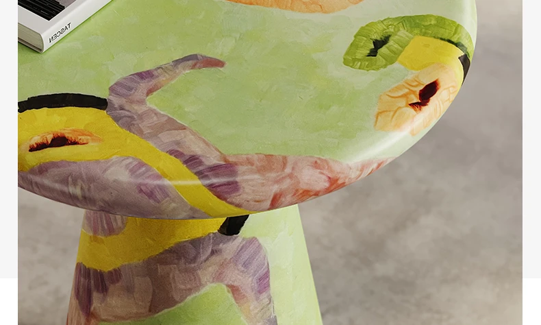 メロラット手描きサイドテーブル|イタリアンクリエイティブデザインの角テーブル|アートなラグジュアリー|個性的な彩色ラウンドコーヒーテーブルで、おしゃれな空間を演出!