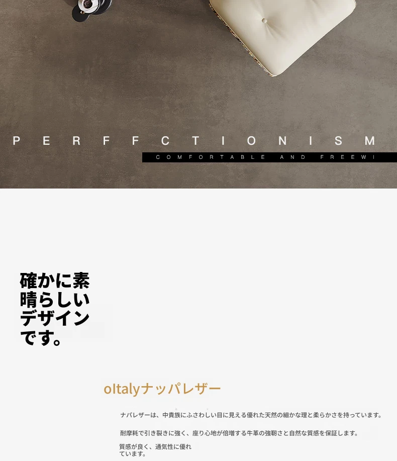 霓虹【Italy全革-ベージュ】【アームチェア+フットスツール】ハーフレザー