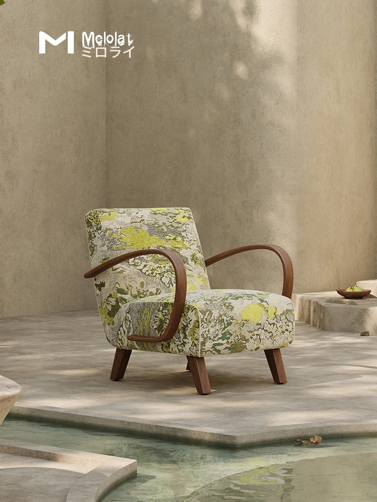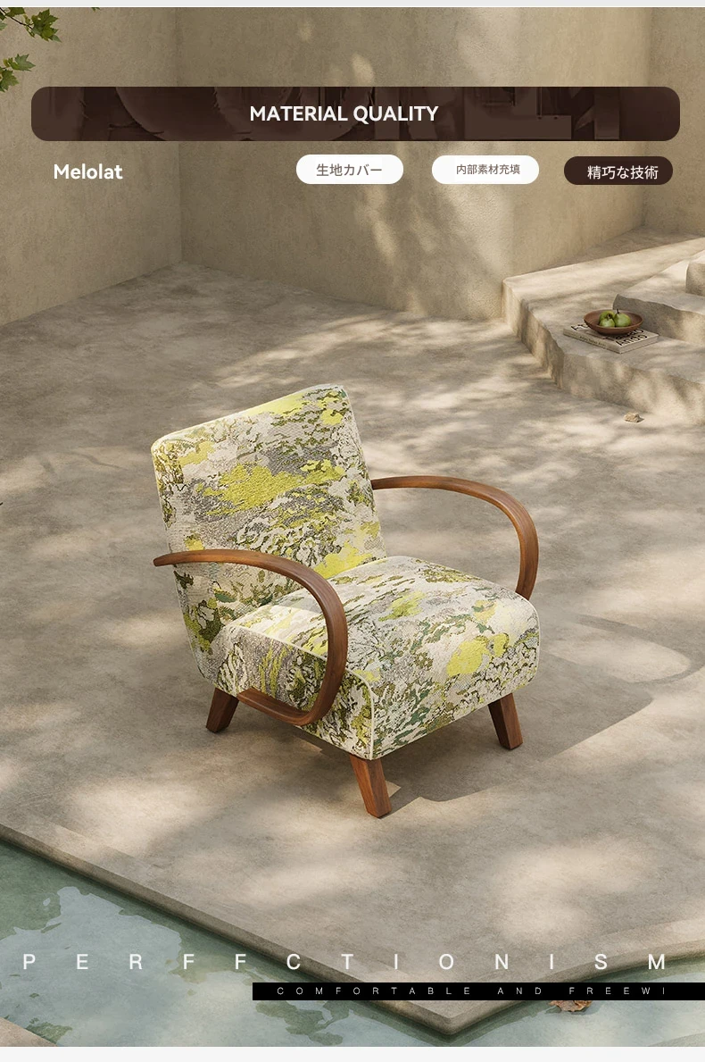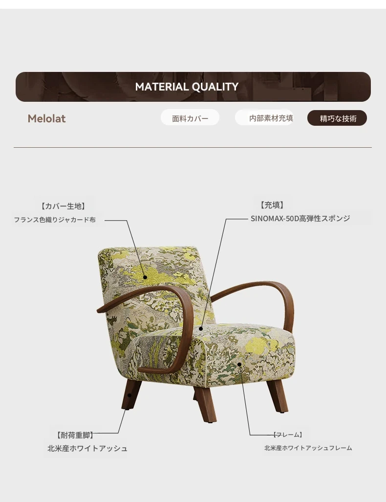 メロラット イタリアンデザイン 一人掛けソファチェア 中古 家庭用 リビング用 シンプルでスタイリッシュな無垢材 軽やかなラグジュアリー リラックスチェア