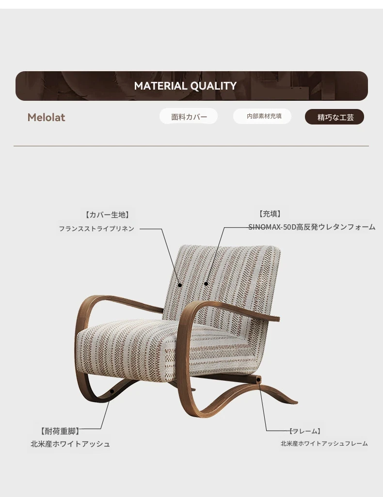 メロラット イタリアンデザイン 一人掛けソファ - 高級感溢れる木製リビングチェアで、くつろぎのひとときを。おしゃれで快適な空間を演出します!