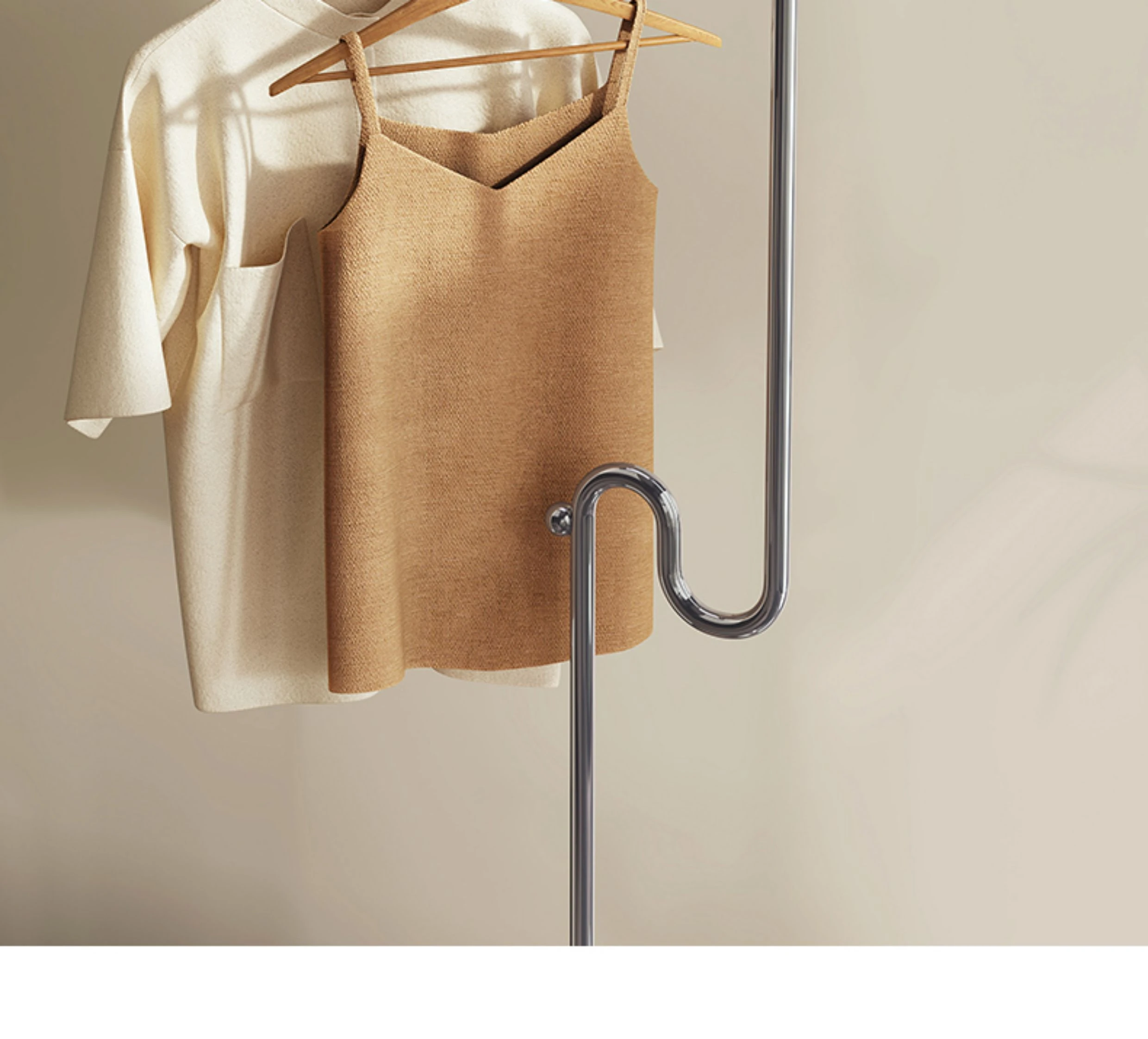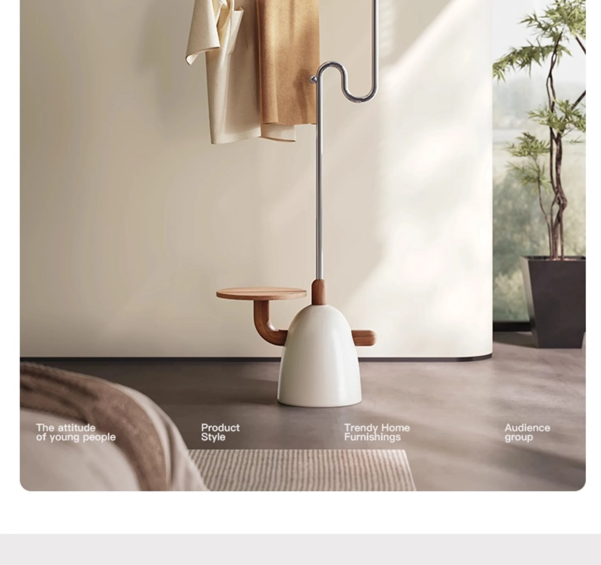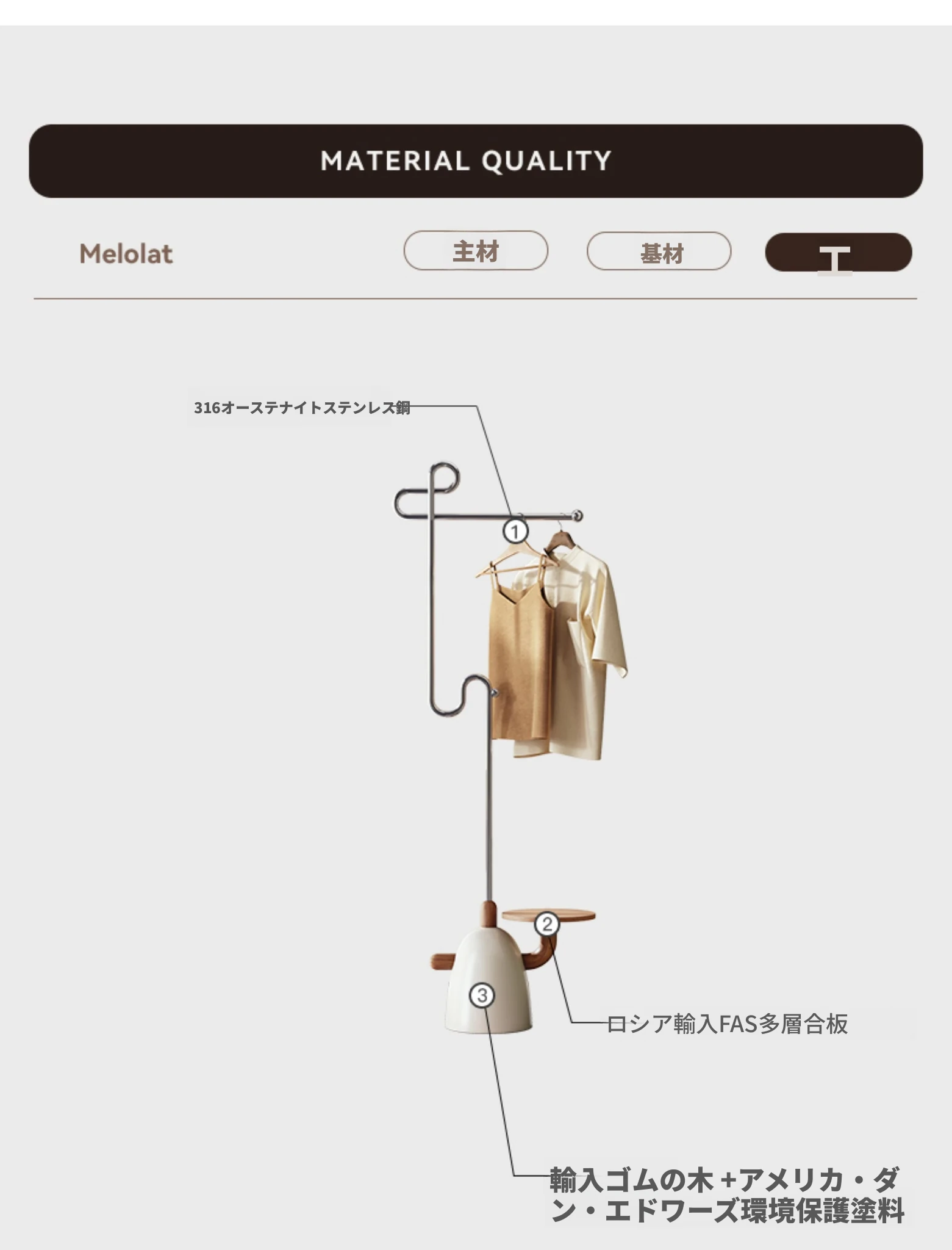 Melolatイタリアンスタイルのスタンディングコートハンガー - ステンレス製の創造的な収納掛け、モダンでシンプルなデザインの木製ハンガーで、寝室をスタイリッシュに演出します!