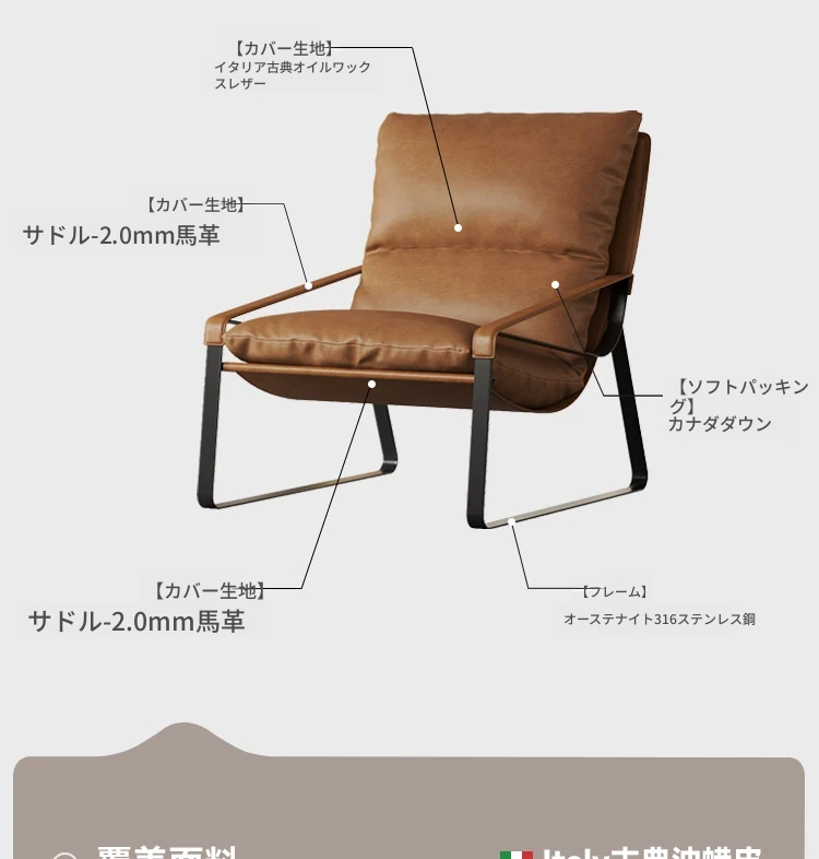 メロラット イタリアンソファー レジャーチェア オイルワックスレザー シンプルモダン リビング用リラックスチェア 一人用 ラウンジチェア くつろぎのひとときを提供します!