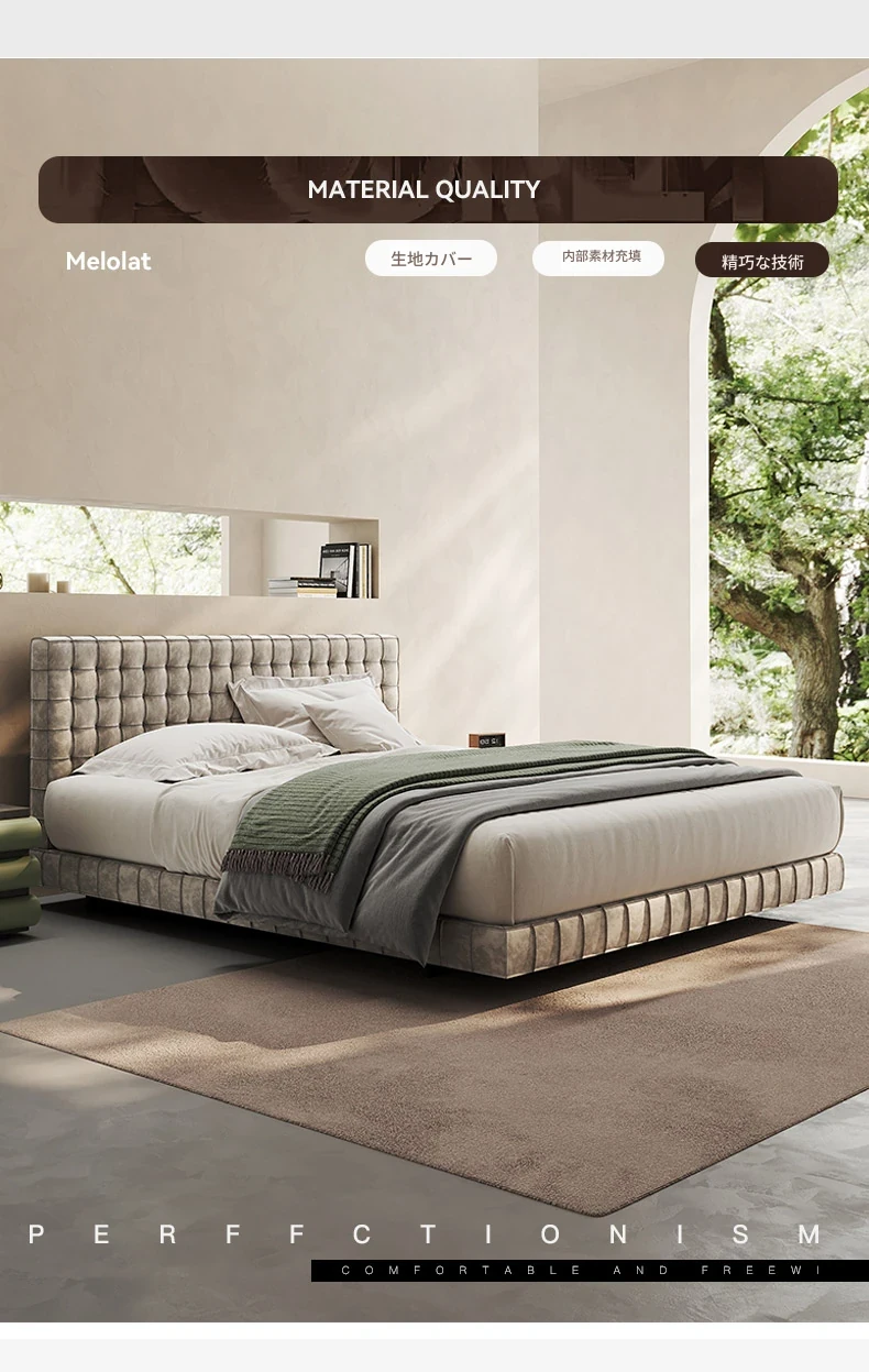 メロラット イタリアンラグジュアリー ベッド 高級別荘 モダンシンプル デザイナー主寝室用 高級マットレザー ベッド - 上質な睡眠を提供する洗練されたデザイン。