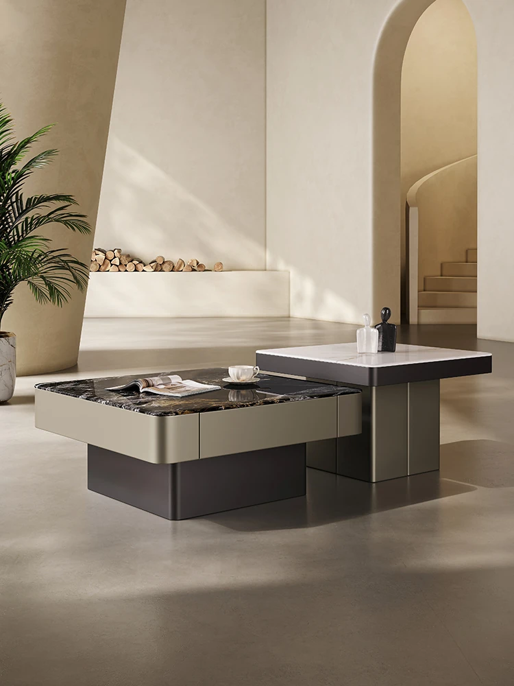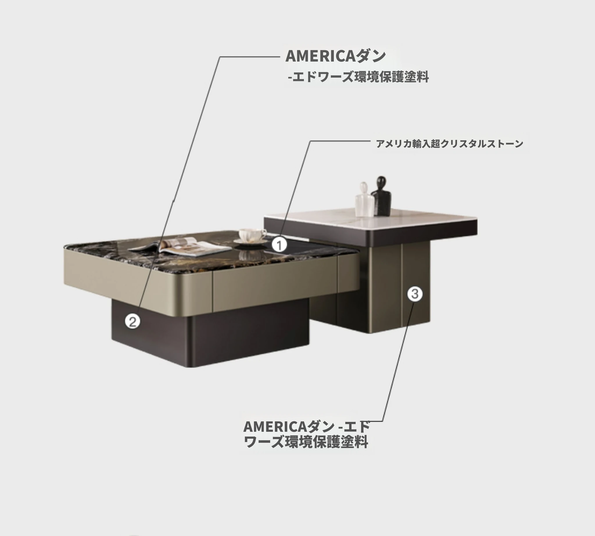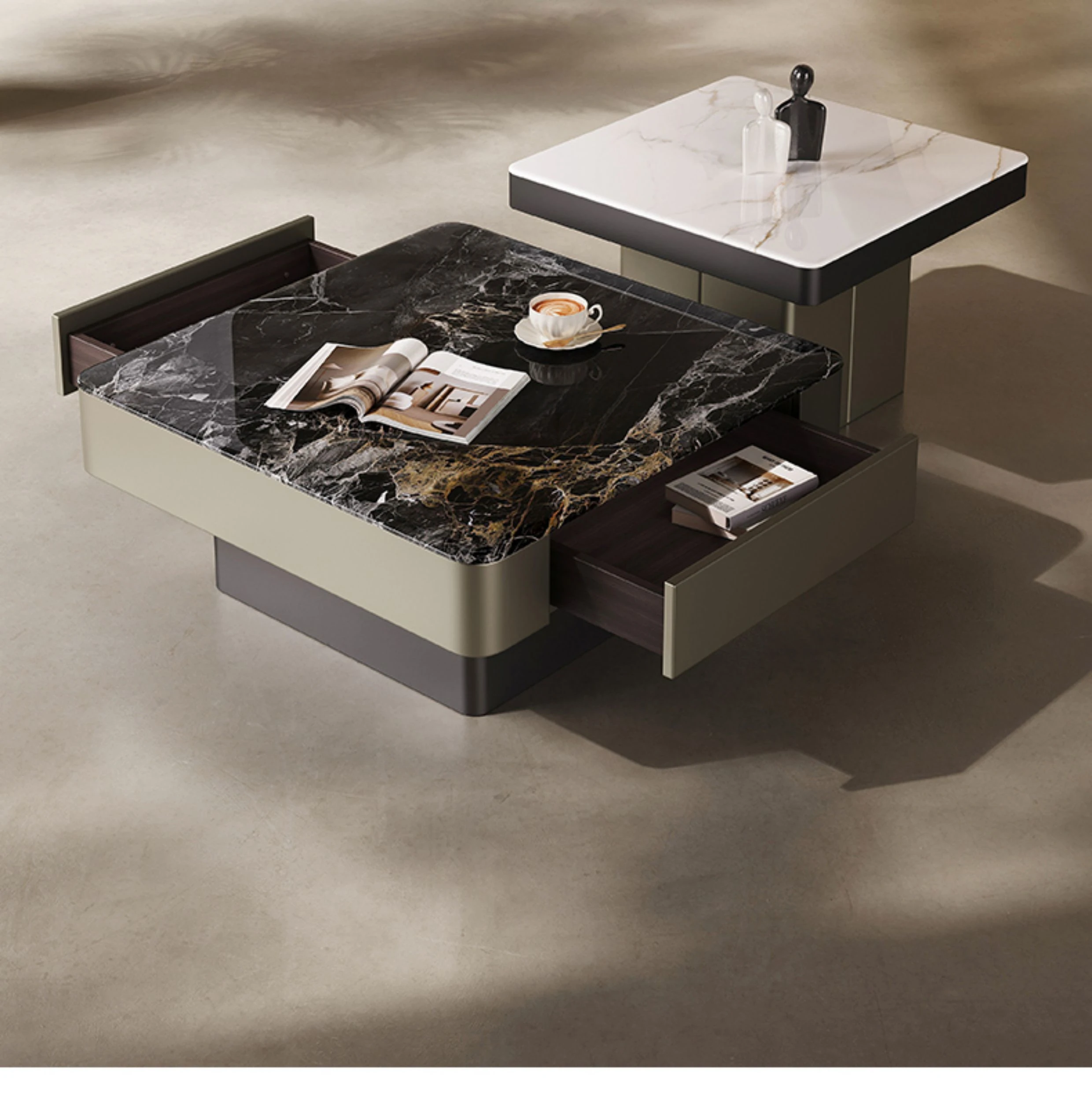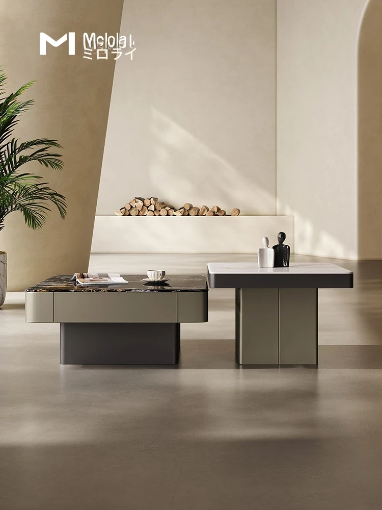 Melolatイタリアンラグジュアリーコーヒーテーブル 超クリスタルストーンのミニマルモダンデザイン 高級リビングルーム向け サイズ展開と収納力抜群のデザイナーアイテム