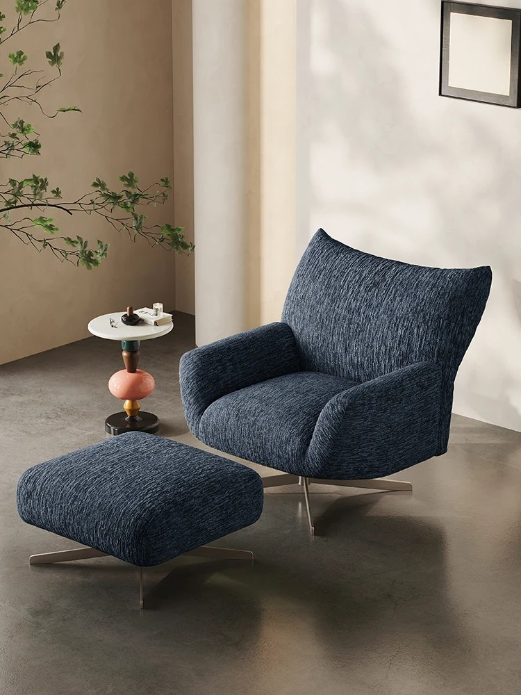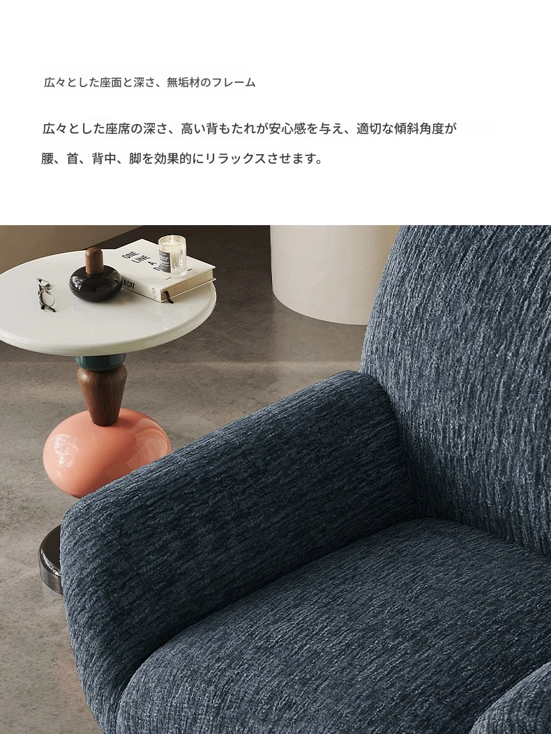 [少量現貨]単椅子+オットマン[子夜ブルー]【フランス輸入シェニールベルベット】