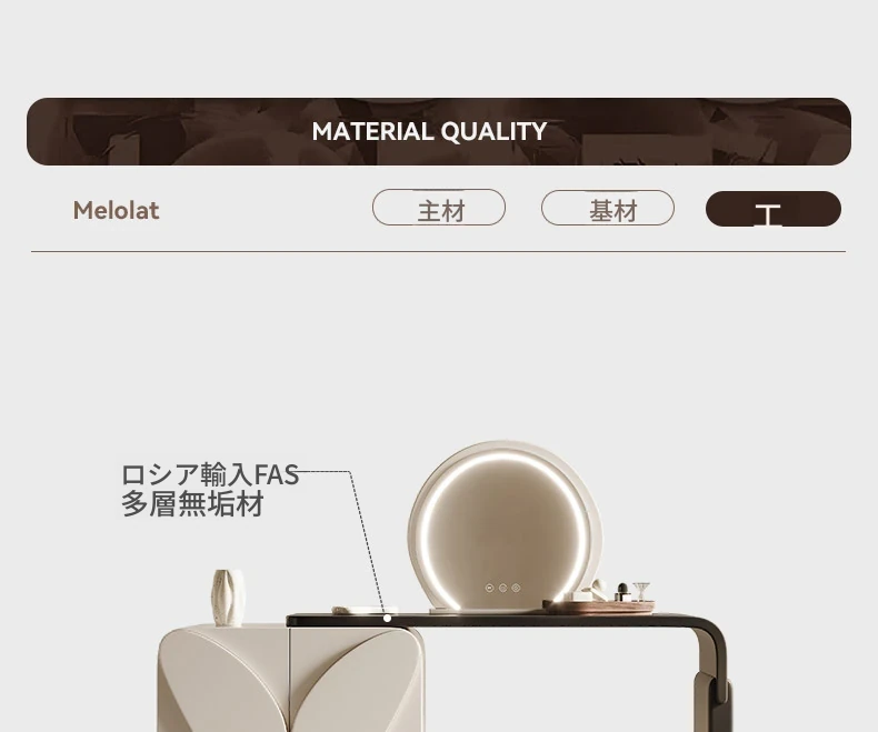 Melolatのイタリアンミニマリズムデザインドレッサー - モダンで洗練されたベッドサイドメイクアップテーブル。シンプルでありながら高級感溢れる、あなたの寝室を格上げします。