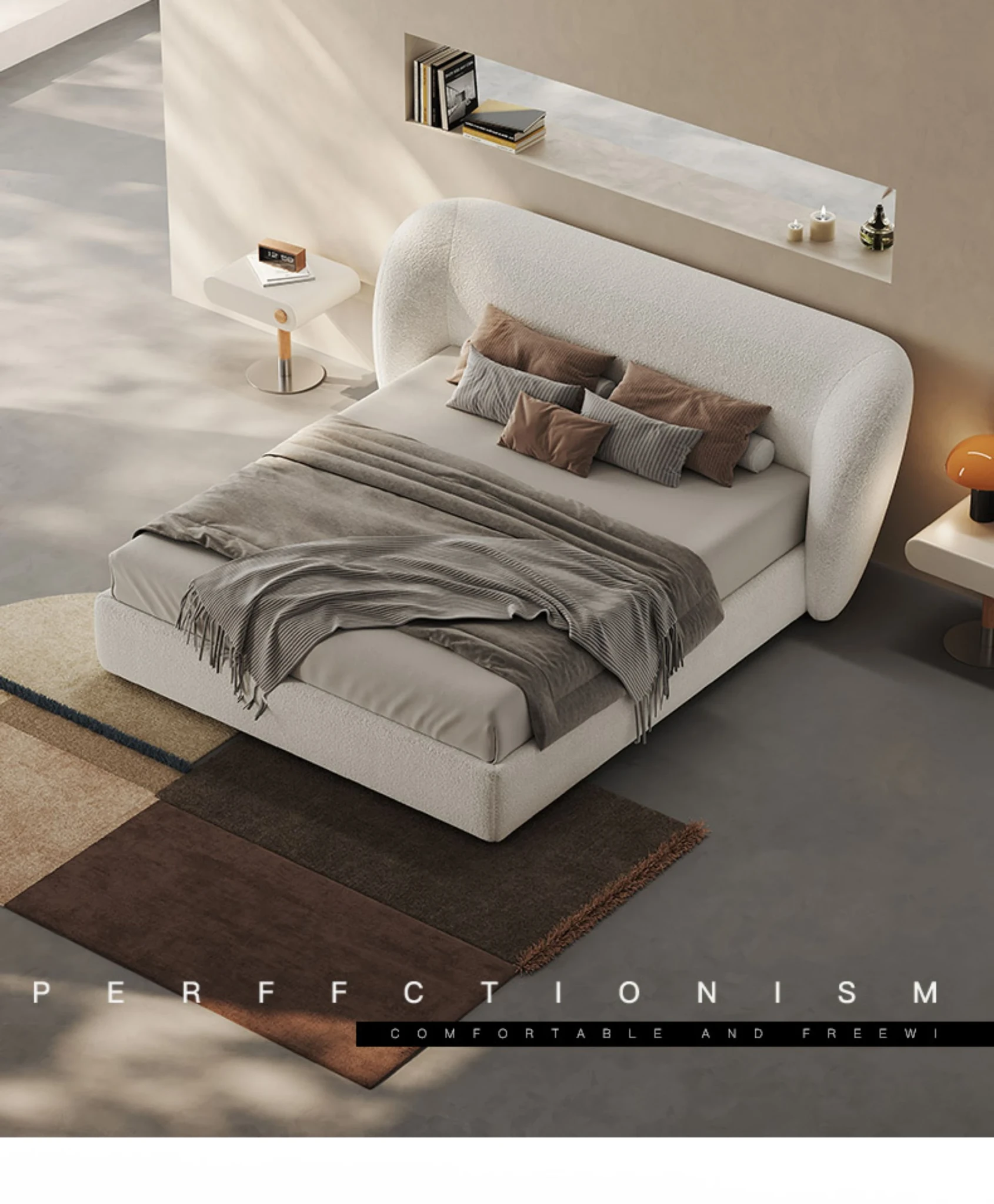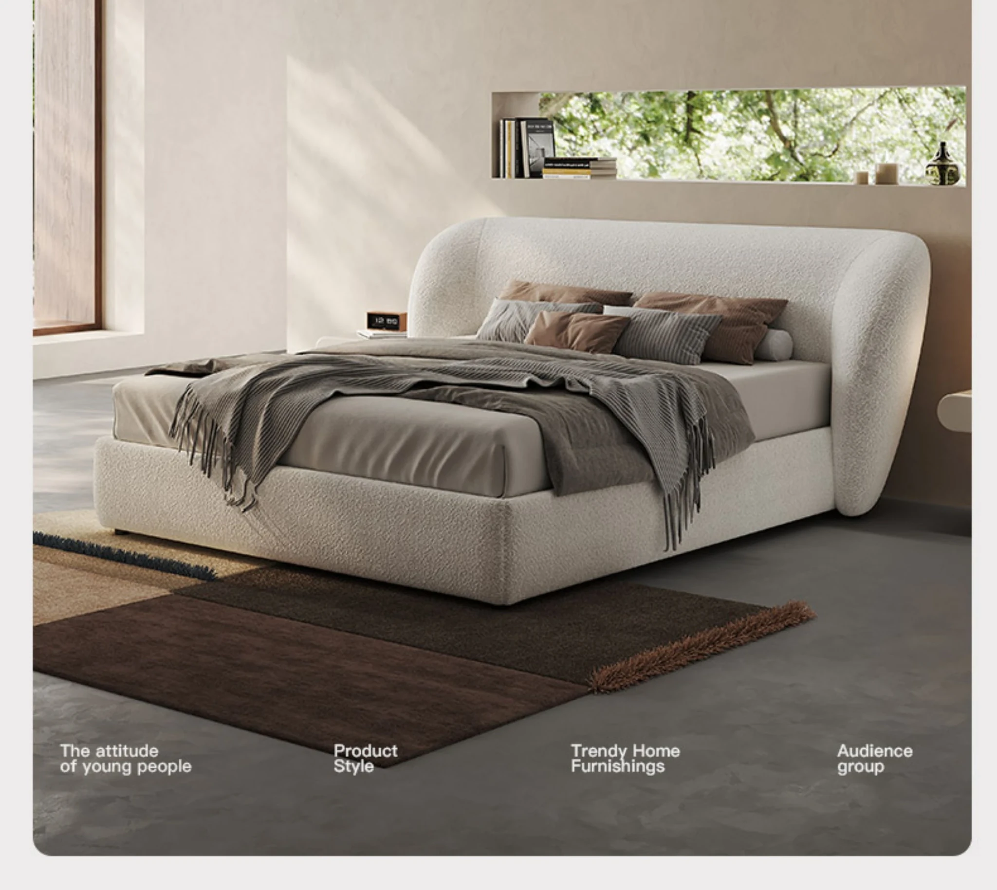メロラット イタリアンミニマリスト ファブリックベッド ダブルサイズ ゴートカシミヤ ヘリンボーンパターン シンプルで快適なソフトパッケージベッド 最高の眠りを提供する主寝室用ベッド
