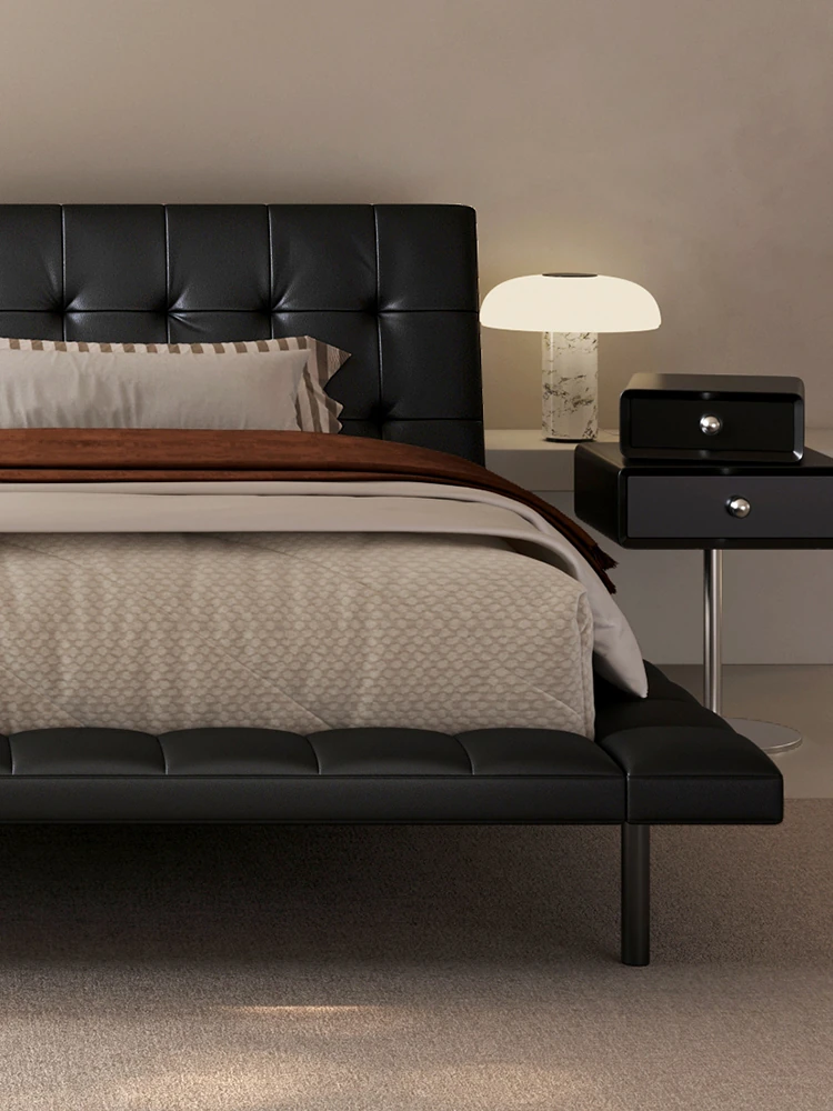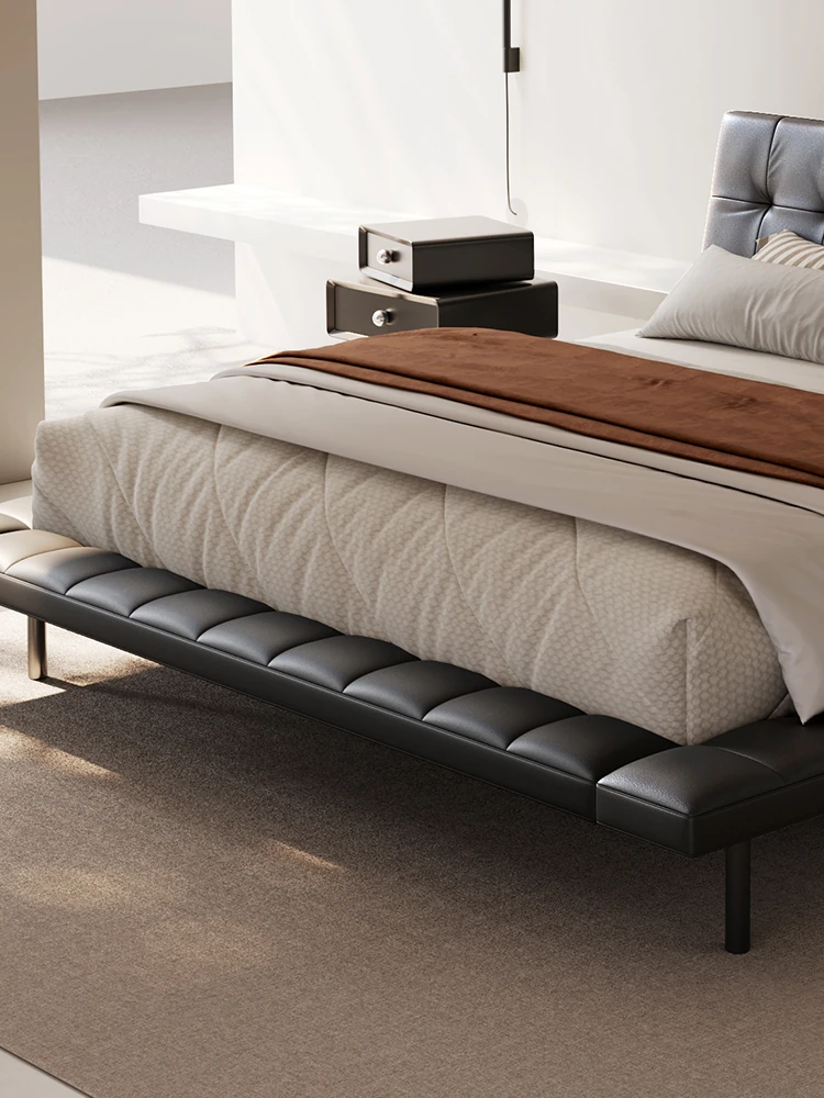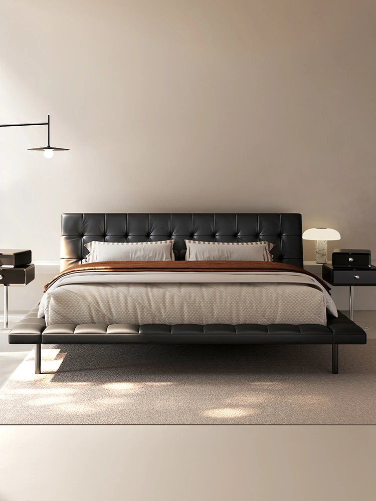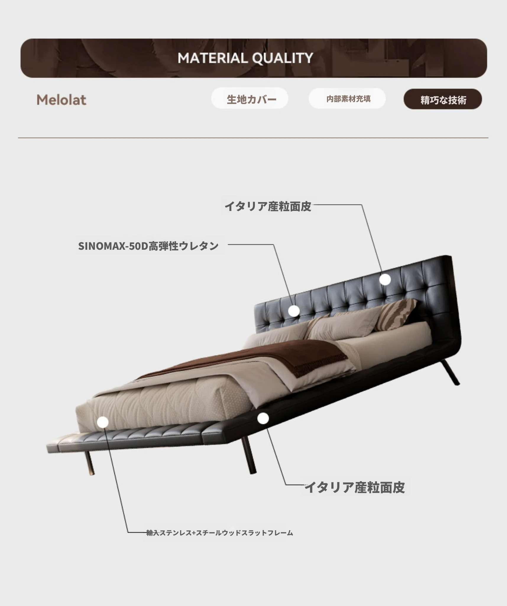 メロラット イタリアンミニマリズム 本革ベッド 高級主寝室用 大婚ベッド モダンシンプル ダブルデザイン ベッド - スタイリッシュで洗練された空間を演出する、リッチな寝心地をご体験ください!