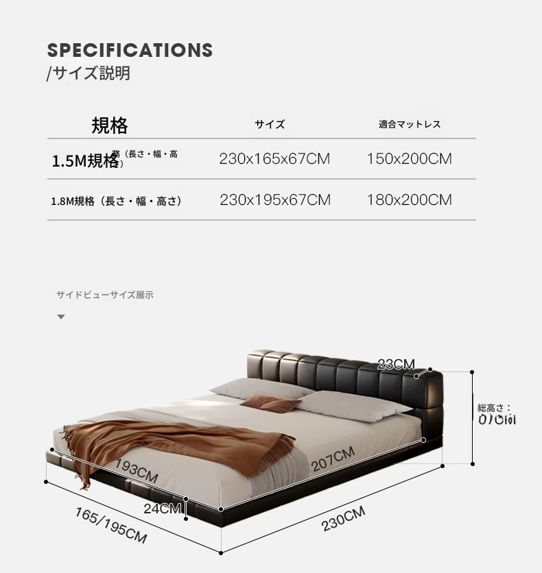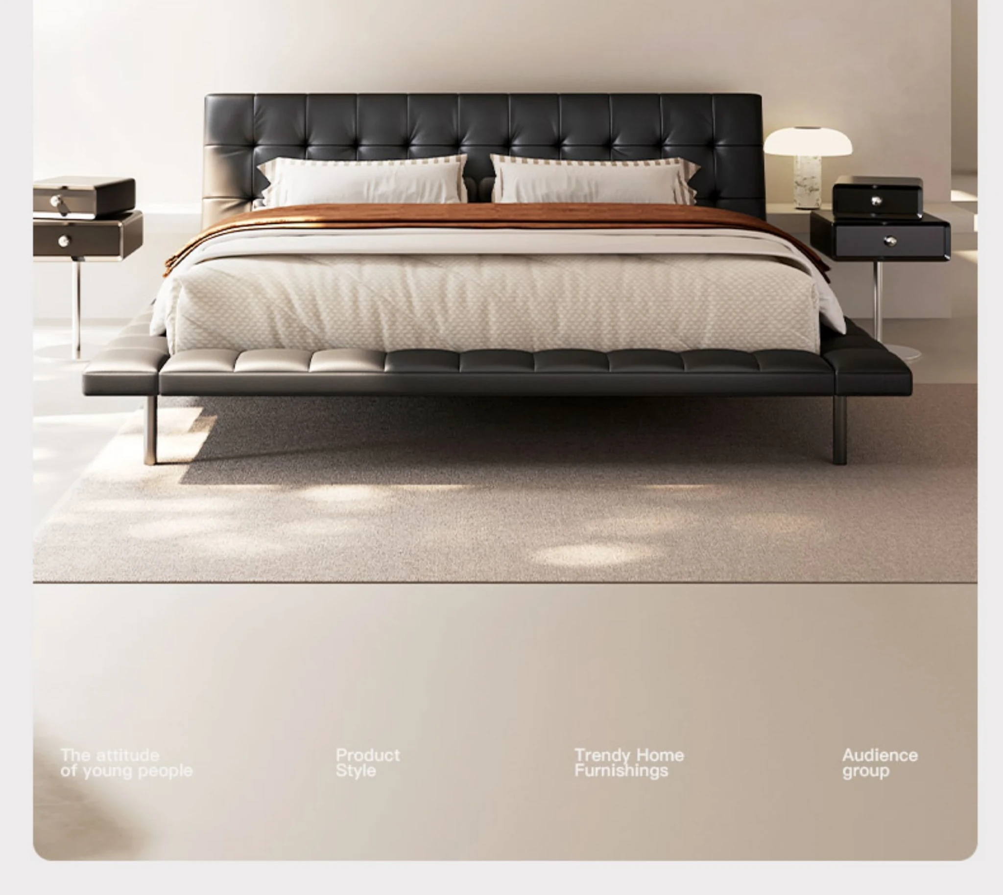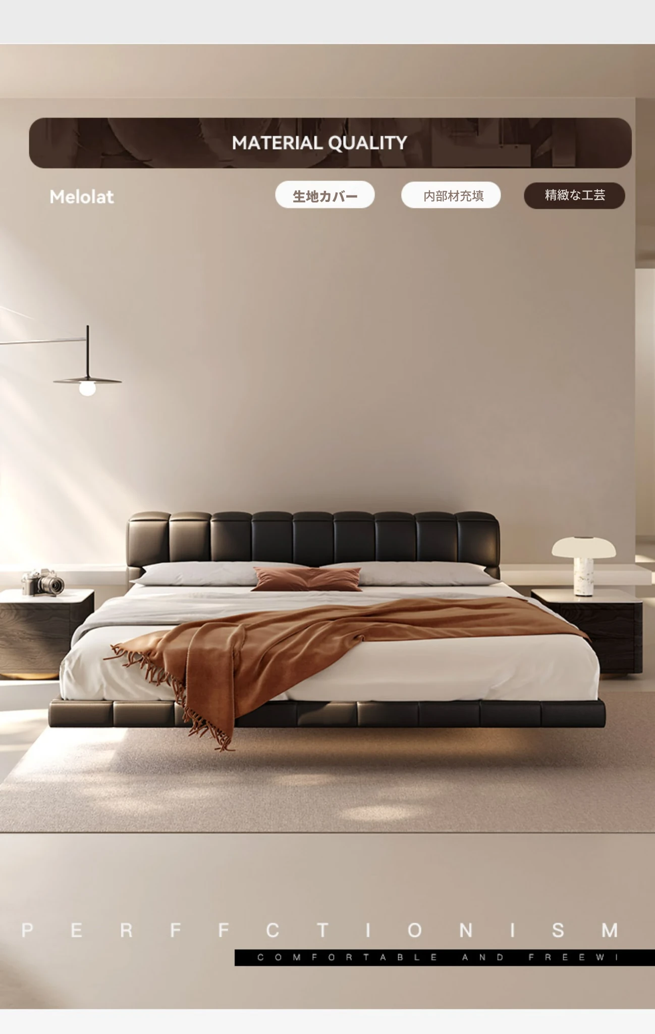 メロラット イタリアンミニマリズム 本革ベッド 高級主寝室用 大婚ベッド モダンシンプル ダブルデザイン ベッド - スタイリッシュで洗練された空間を演出する、リッチな寝心地をご体験ください!