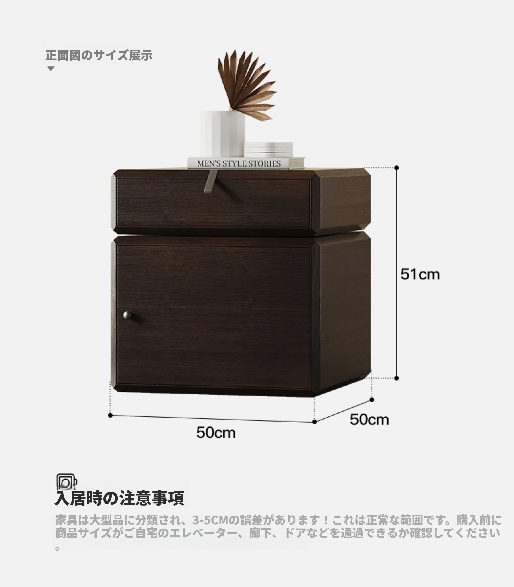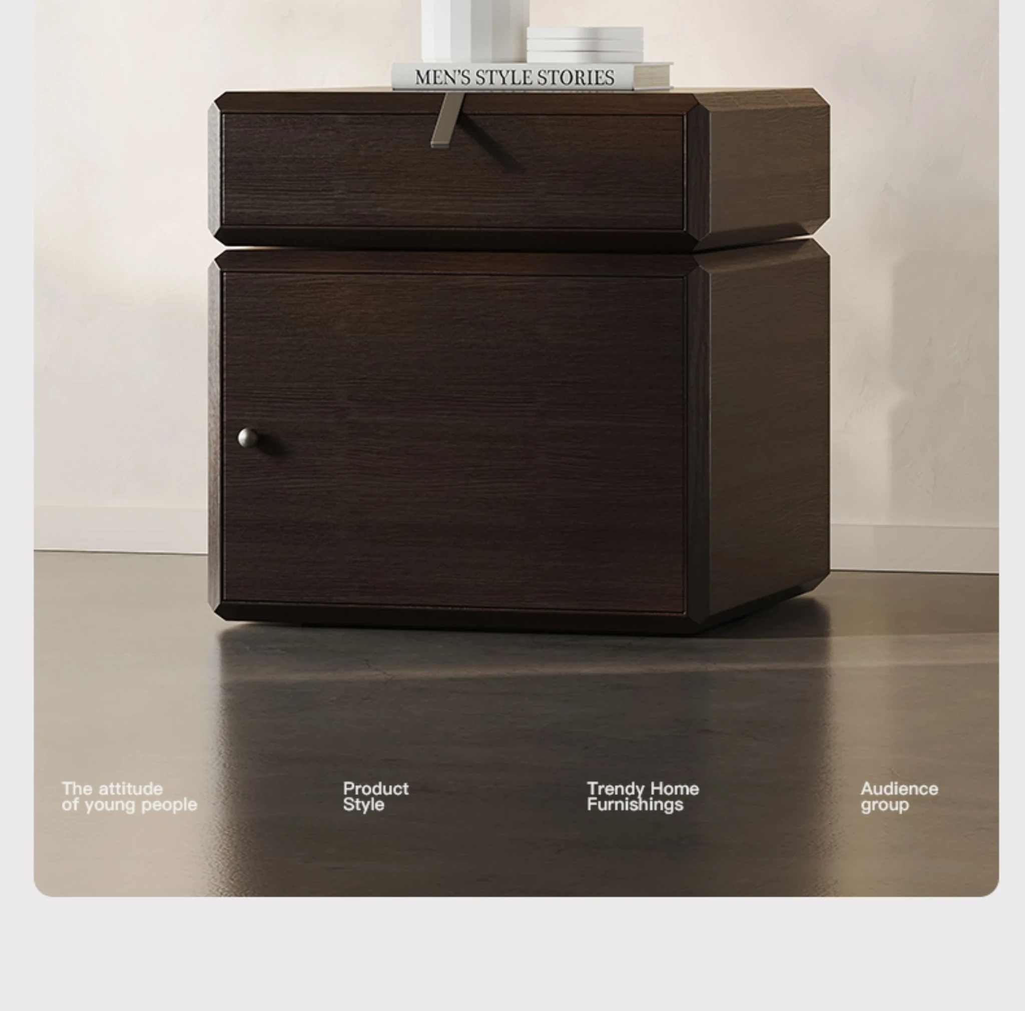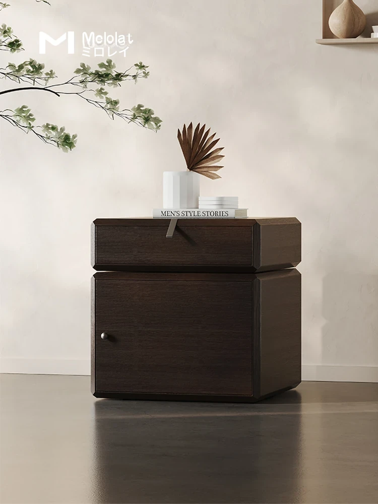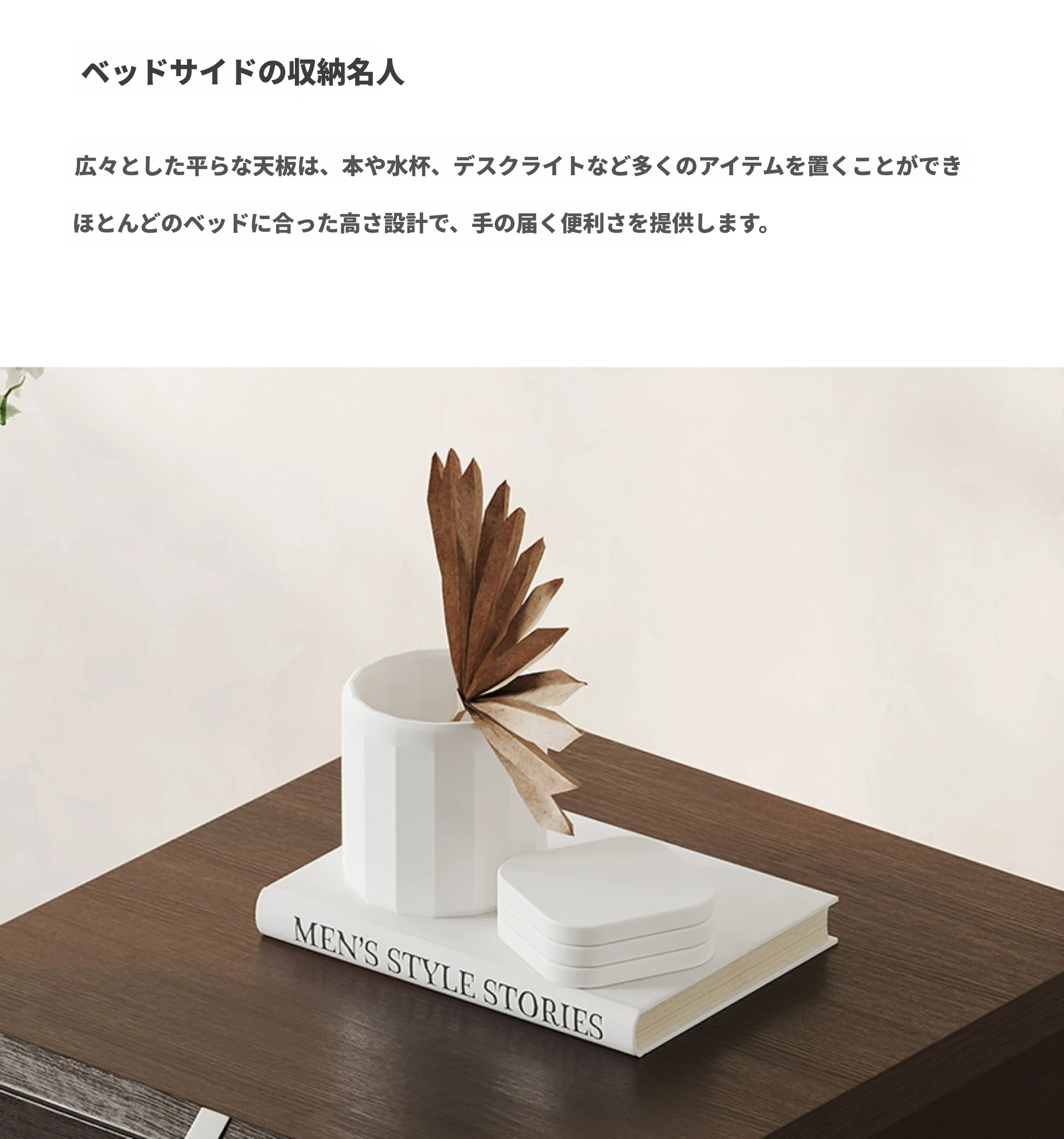 メロラット イタリアンミニマリスト ナイトスタンド 輸入スモーキーウッド デザイン収納機能付き 回転引き出し ベッドサイドキャビネット 使い勝手抜群のスタイリッシュな収納で、お部屋をスッキリ整頓!