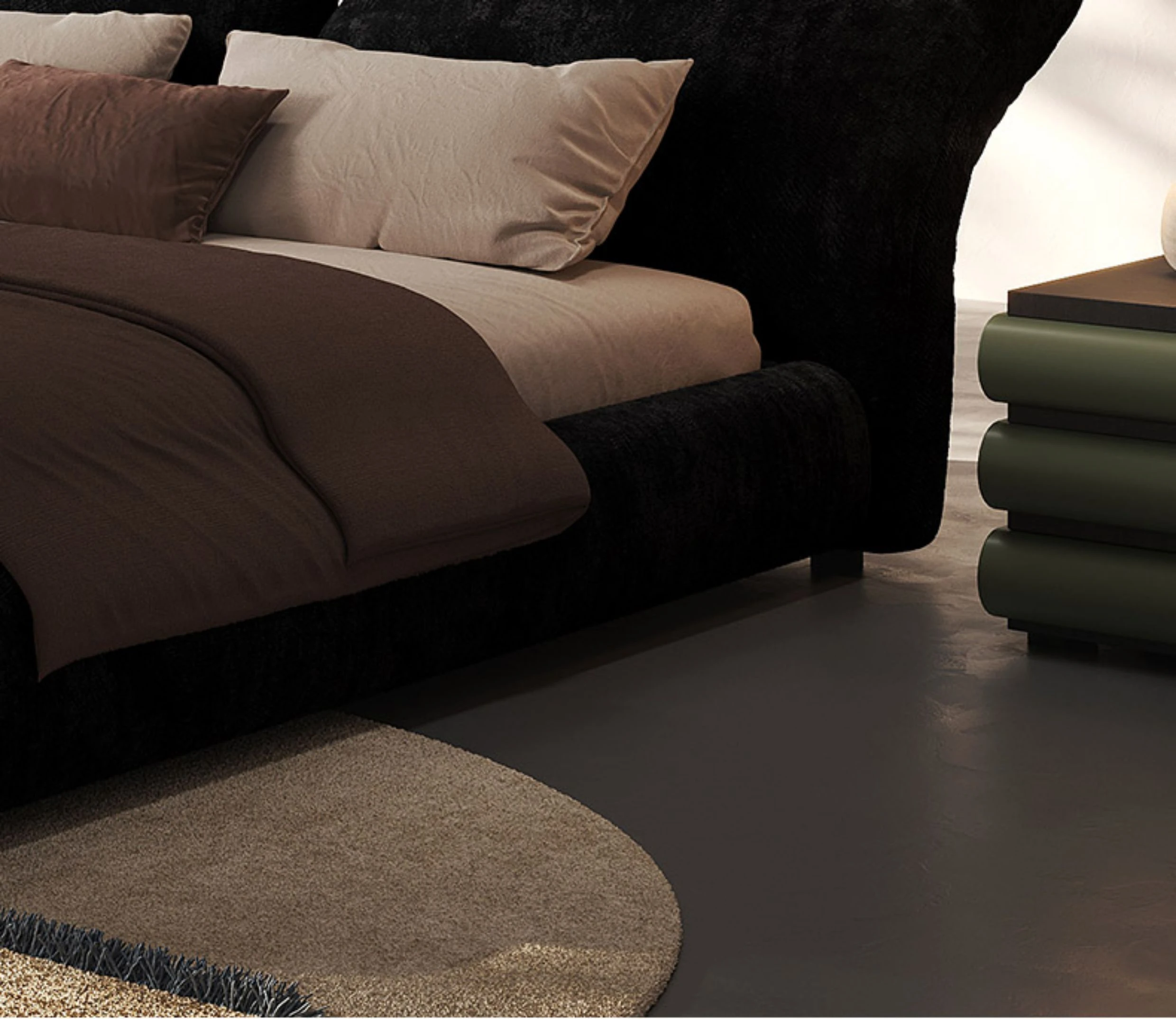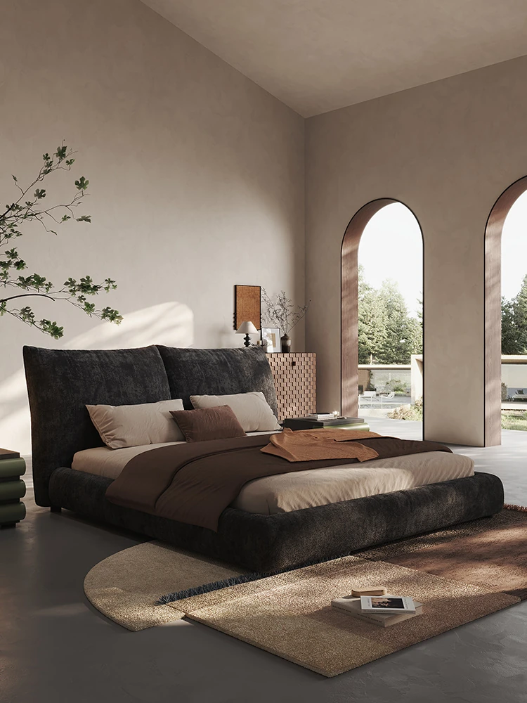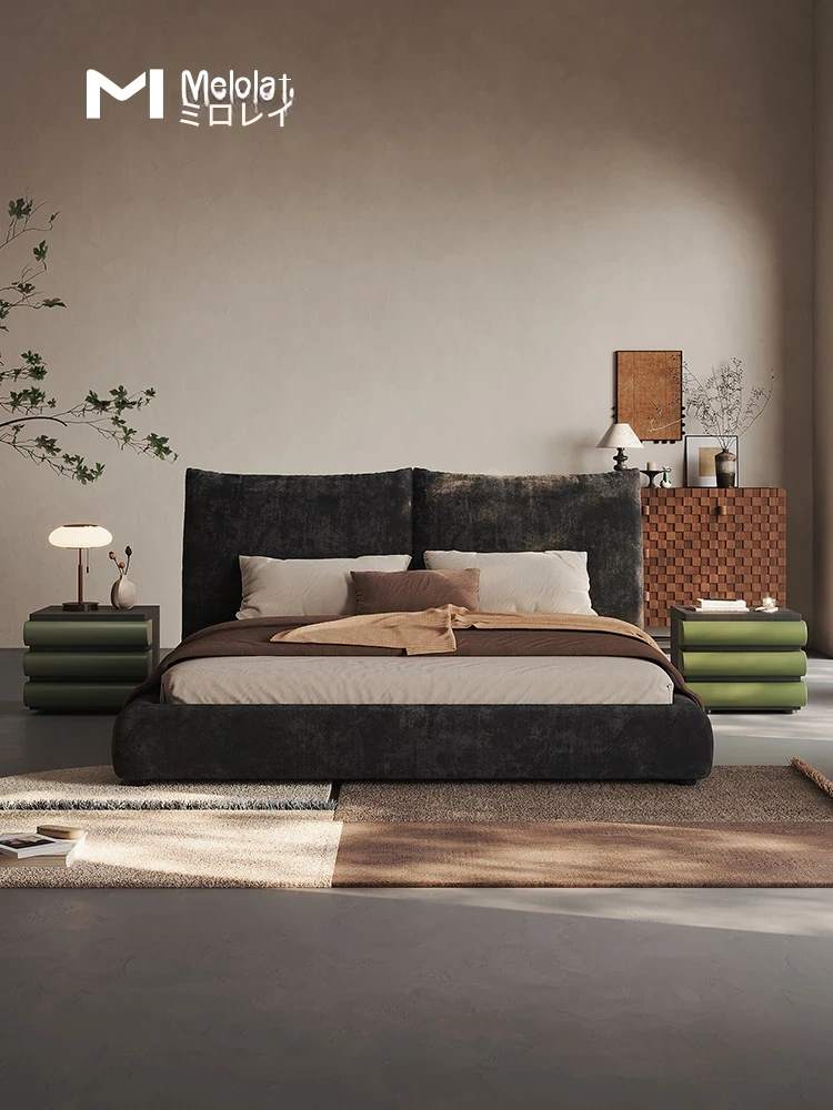 Melolatイタリアンミニマリスト花びらデザイン高級ダブルベッド - シュニールベルベット仕上げ、洗練されたスタイルで新婚生活を彩る特別な婚床。