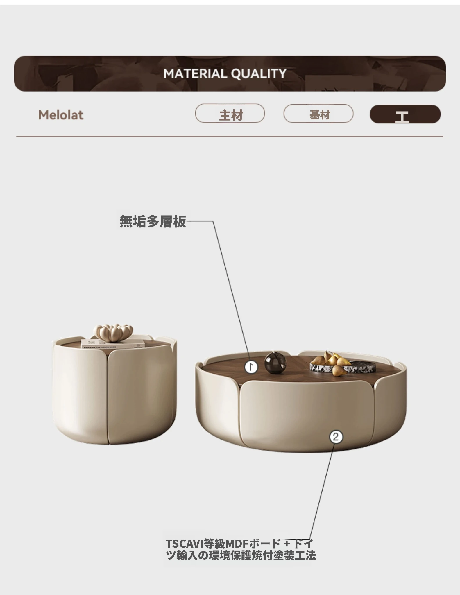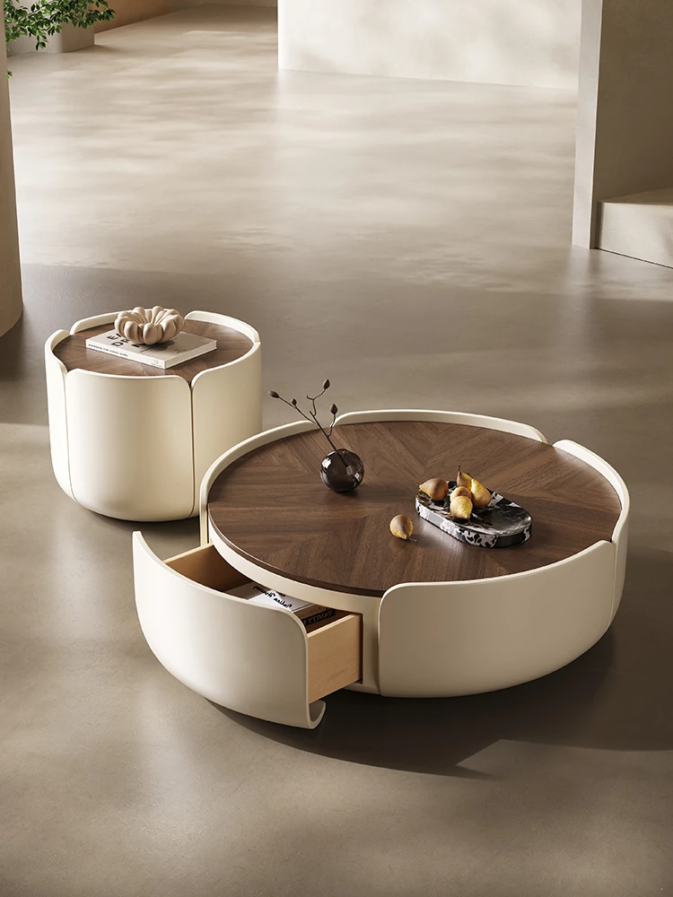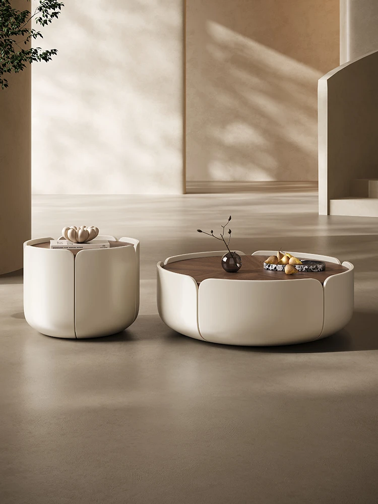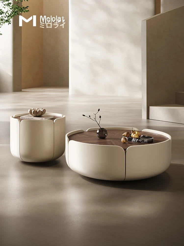 Melolat イタリアンミニマル フラワーペタル テーブル 小型リビング向け シンプルでモダンなラウンド ウォールナット コーヒーテーブル - スタイリッシュな空間を演出!