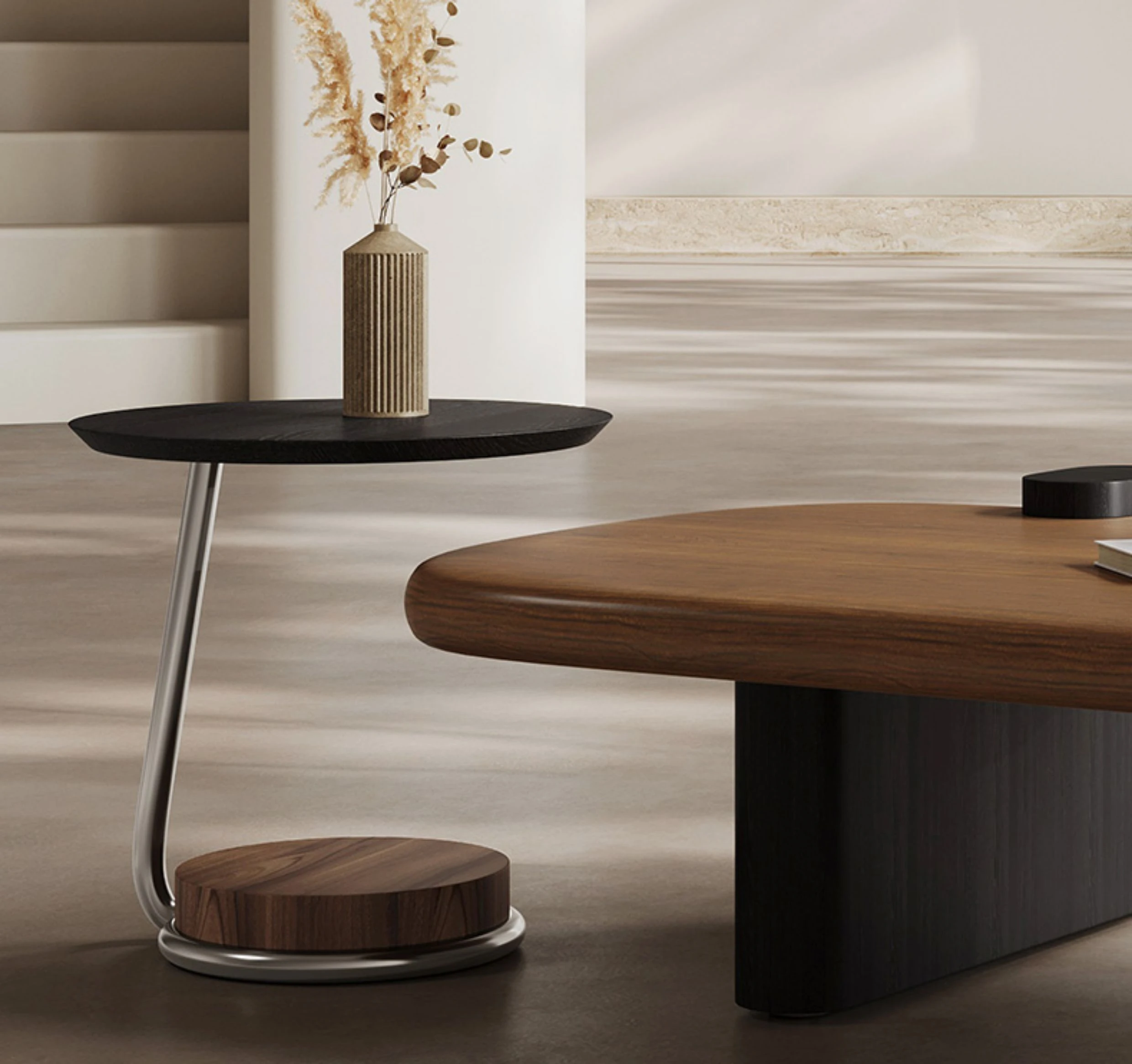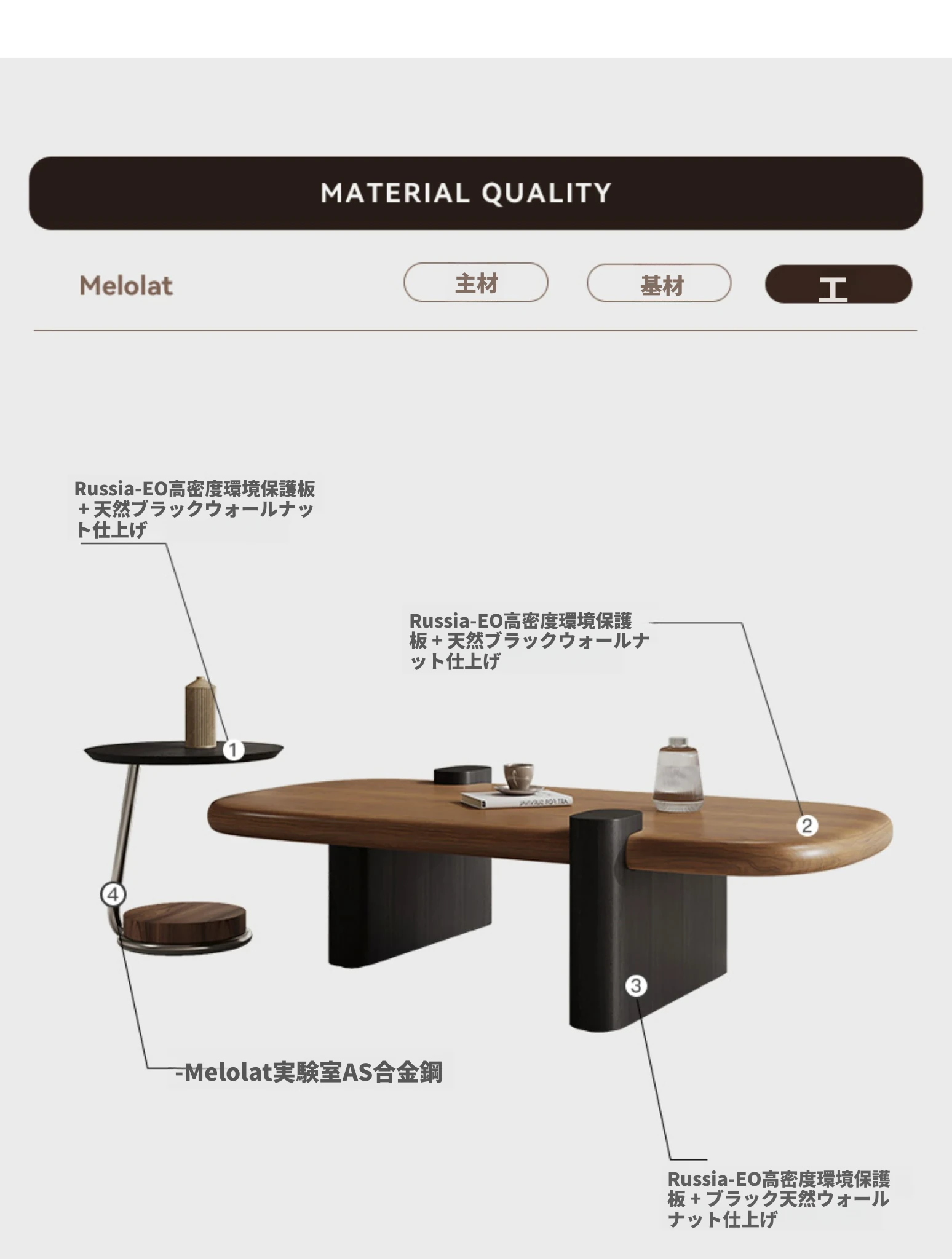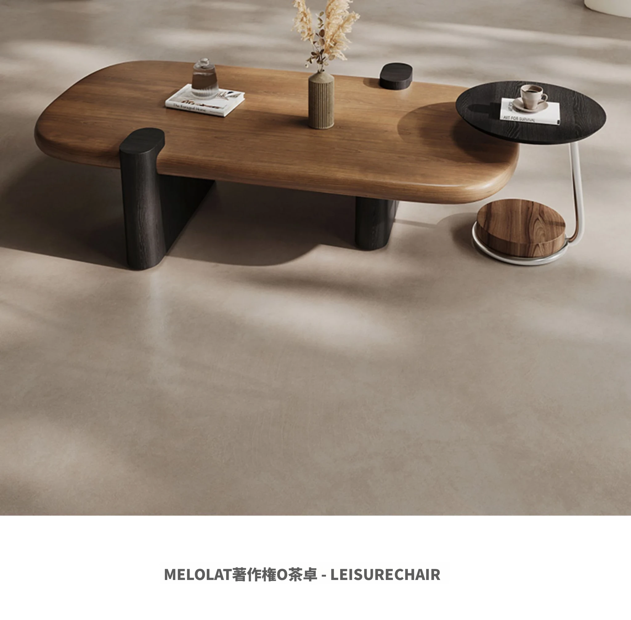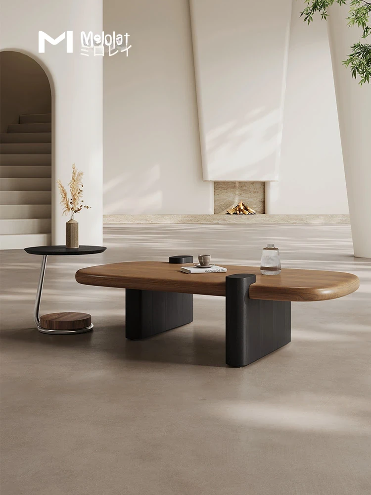 Melolatイタリアンミニマリストコーヒーテーブルセット - ヴィンテージ感漂う高級感!小型リビングにぴったりなラグジュアリーウォールナット仕上げのテーブル。