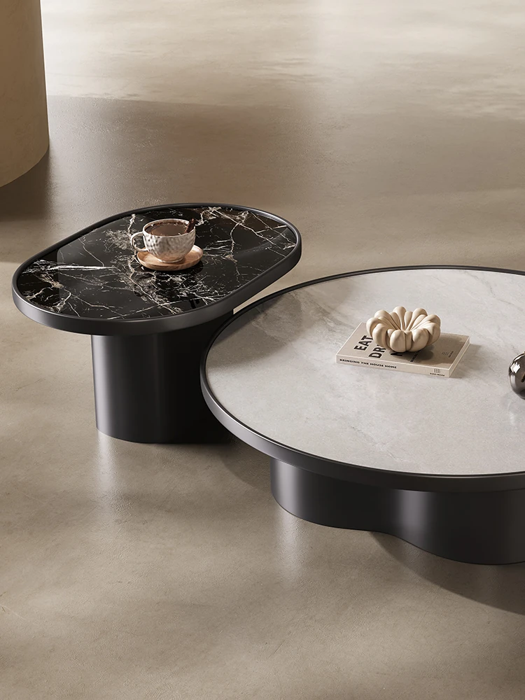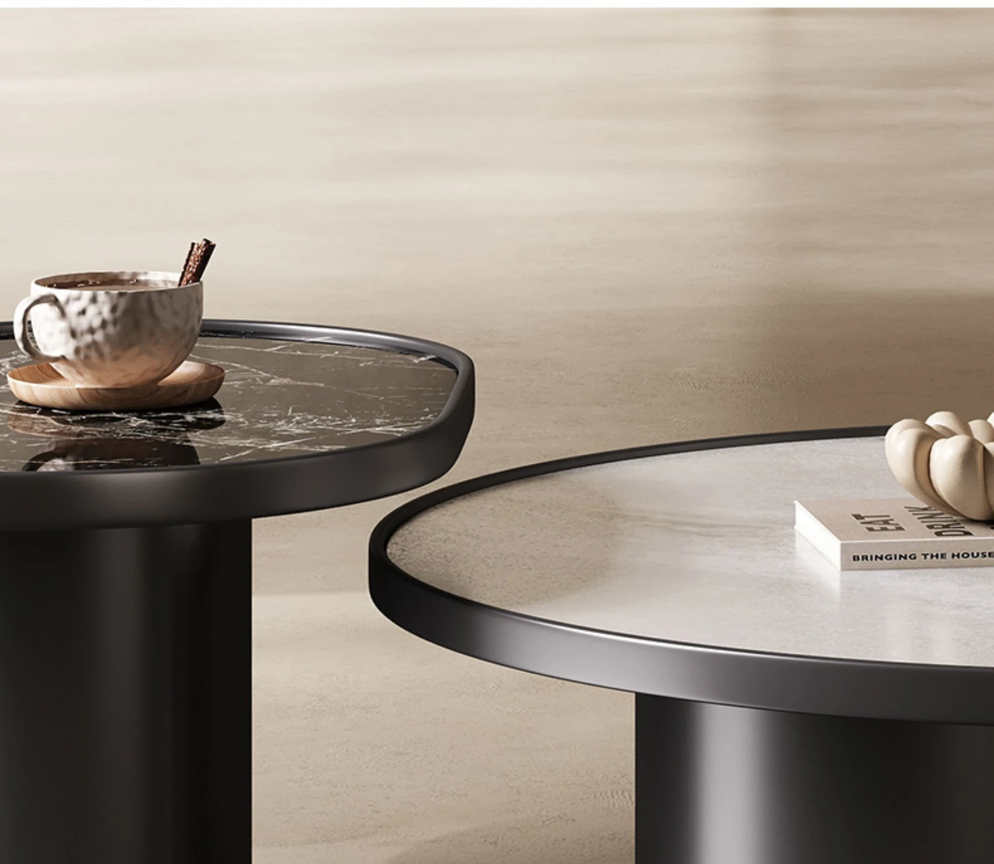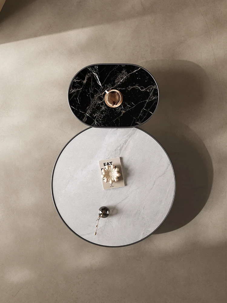 Melolat イタリアンミニマルデザイン 丸型マーブルコーヒーテーブル セット 高級感溢れるリビングに最適 小型住宅にぴったり!