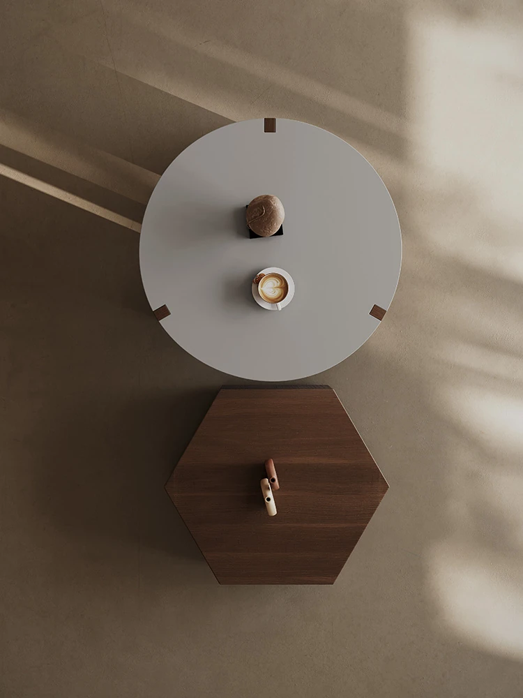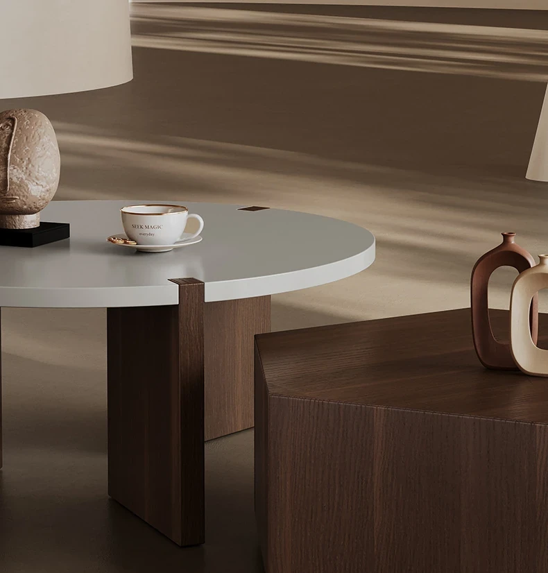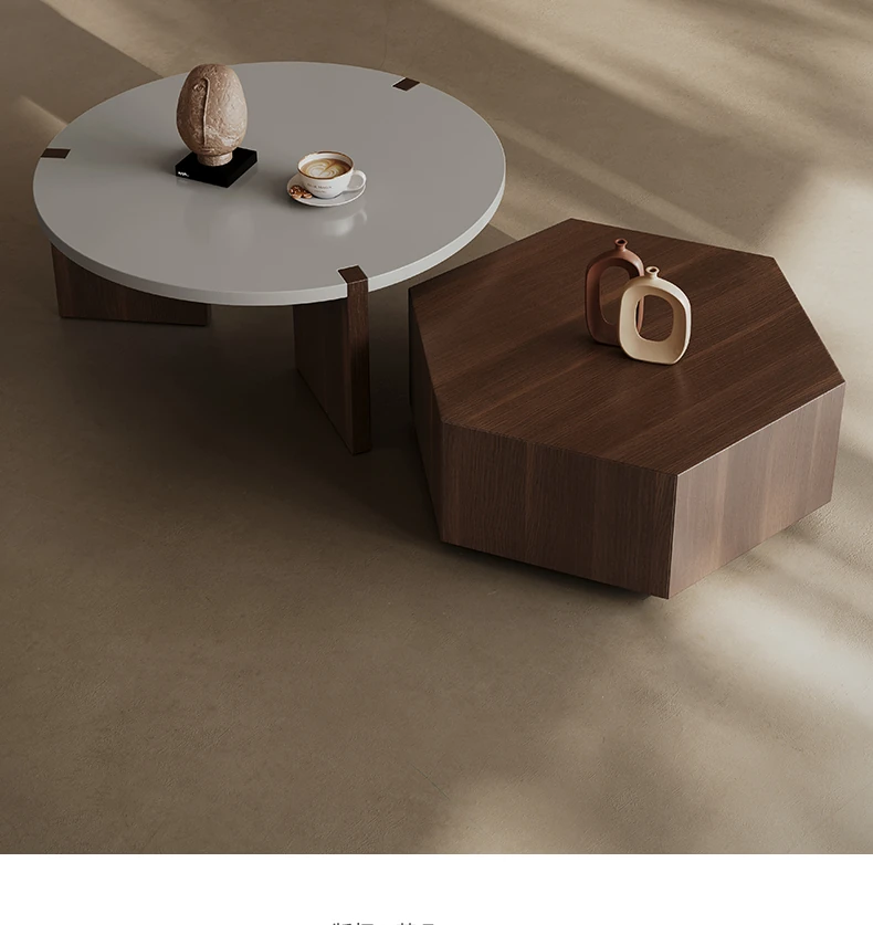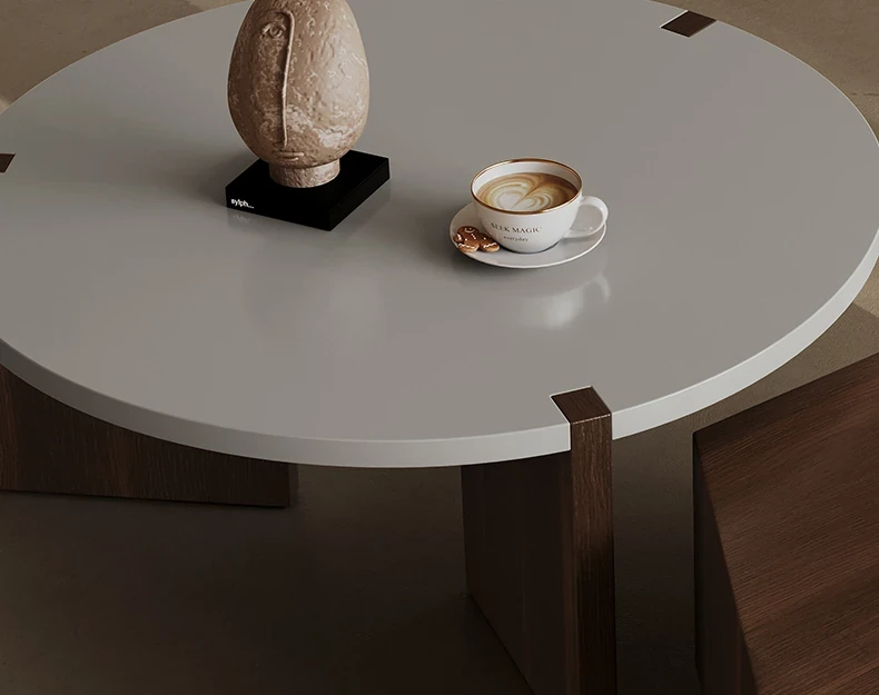 Melolat イタリアンミニマリスト 円形 コーヒーテーブルセット 輸入スモーキーウッド 大小様々なリビングにぴったりなデザイン 家庭用 デザイナー家具