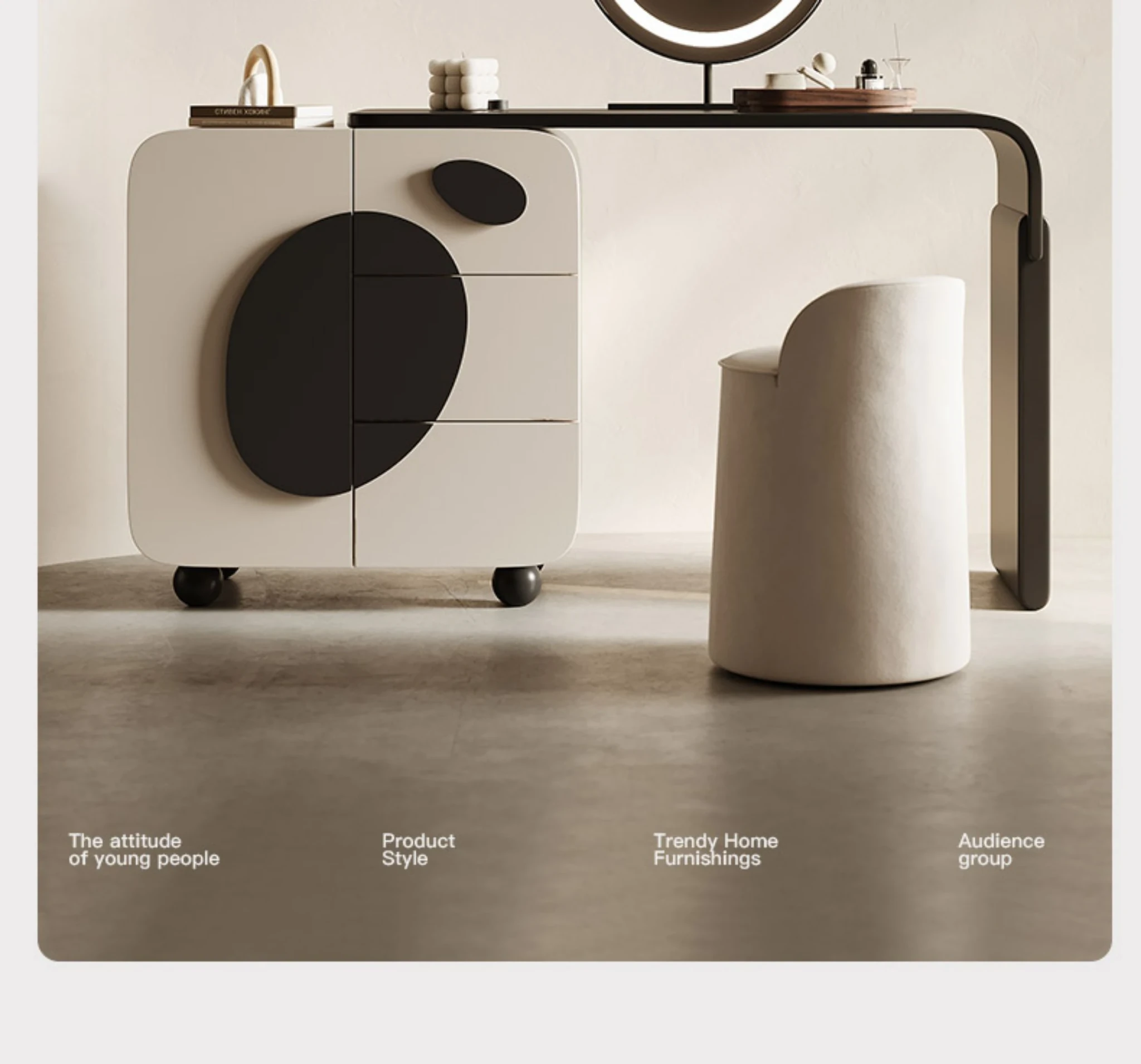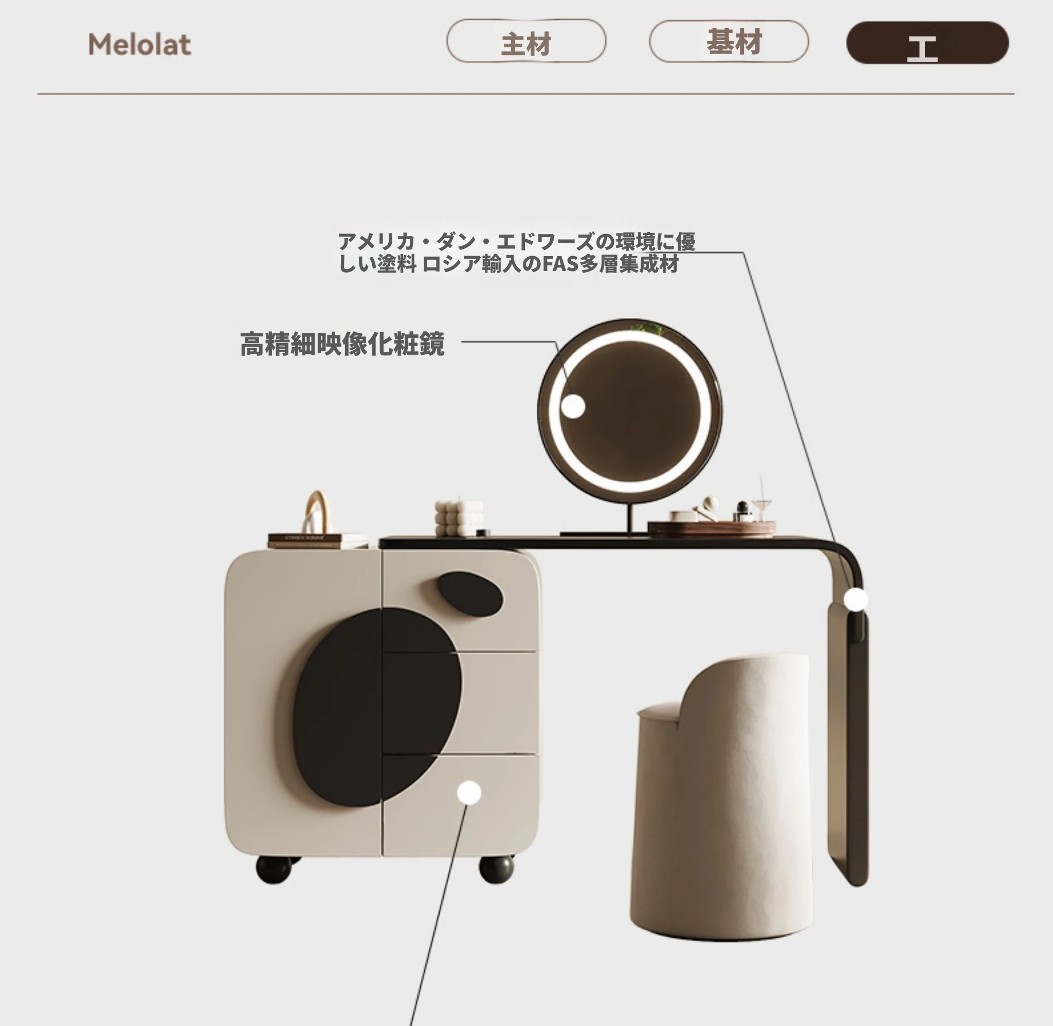 Melolat イタリアンミニマリスト化粧台収納キャビネット - クリーム風の現代的でシンプルなデザイン、上質な化粧デスクであなたの寝室をスタイリッシュに演出!