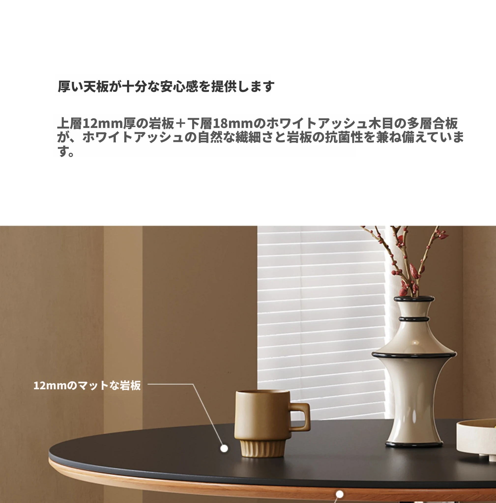 アイボリーホワイト【イタリア輸入岩板】110cmダイニングテーブル