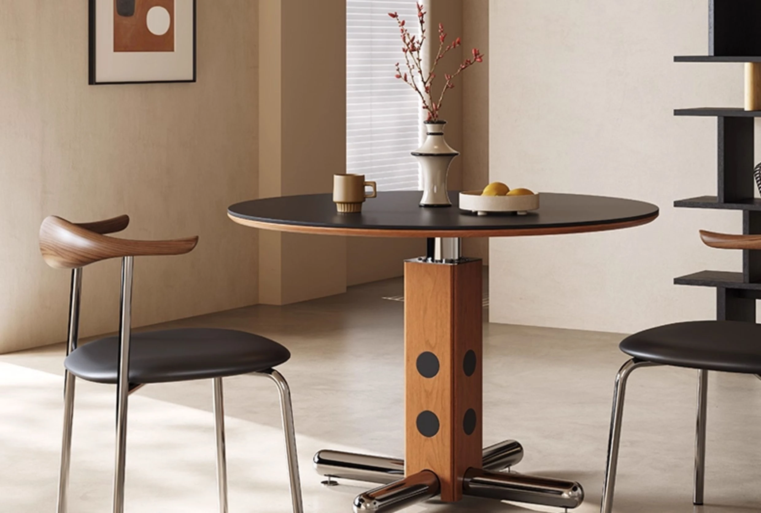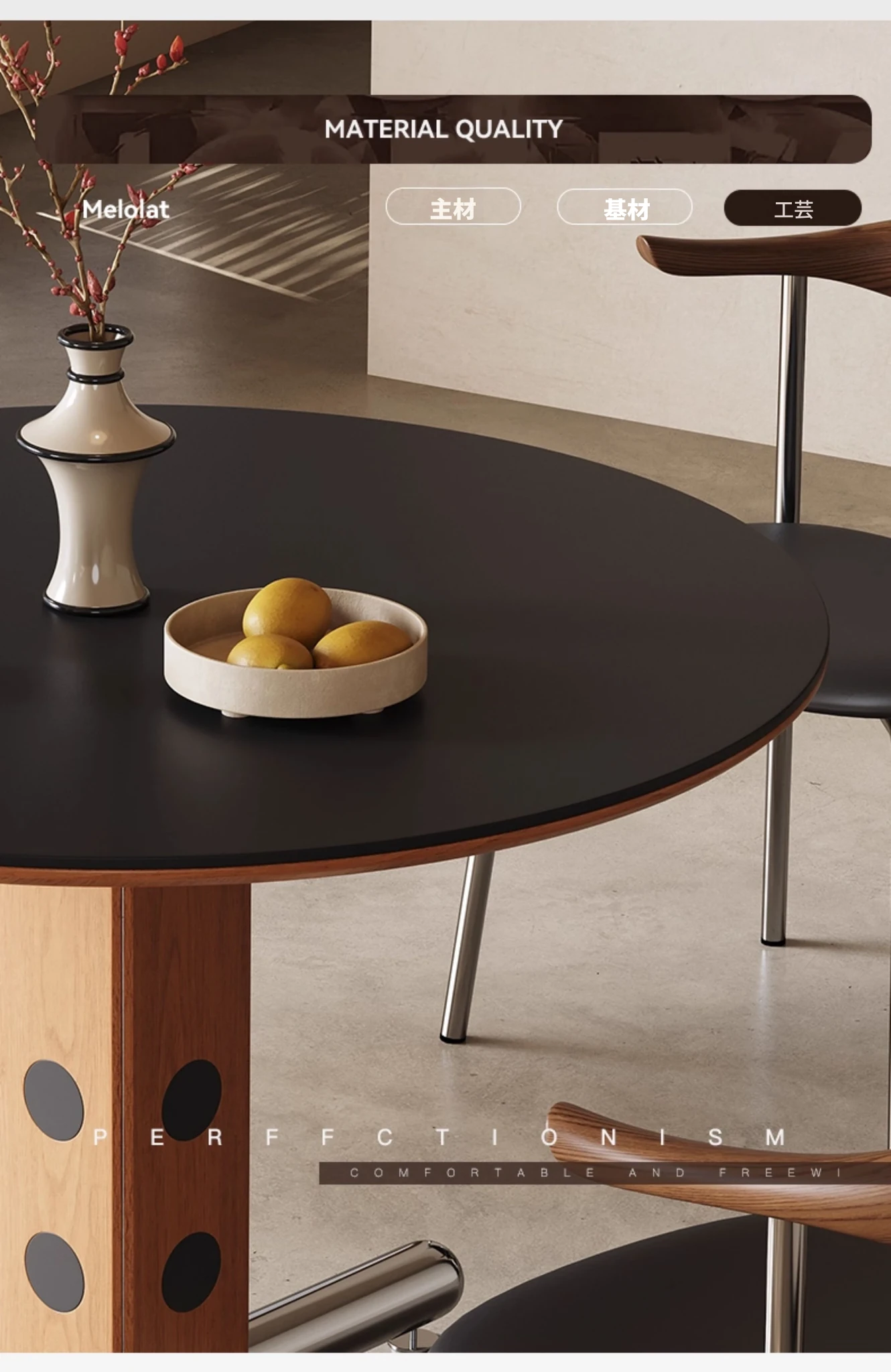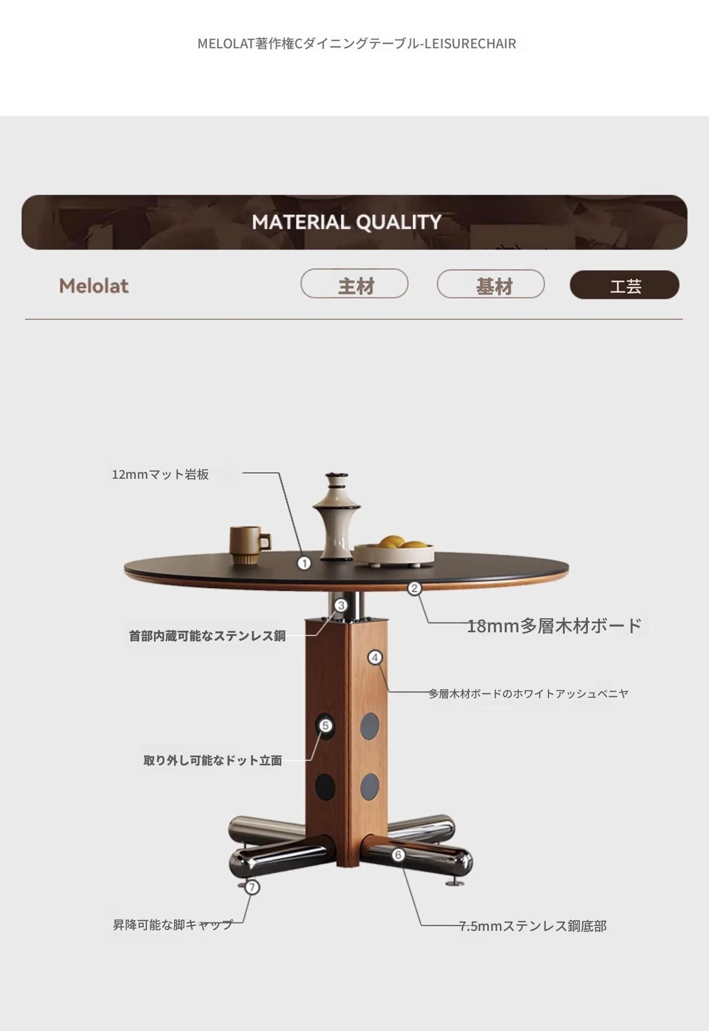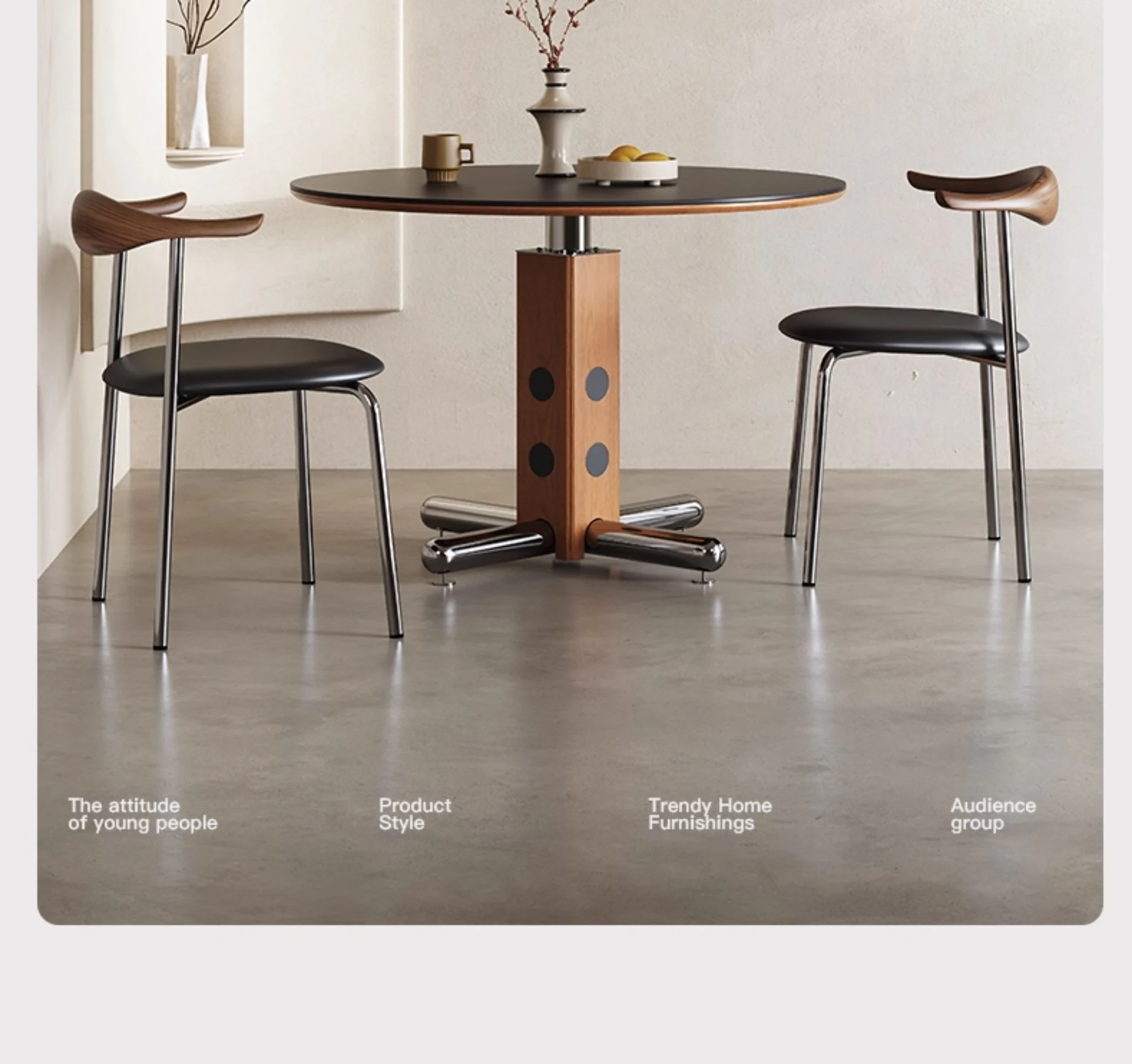 Melolatイタリアンヴィンテージスタイルのステンレス製ラウンドテーブル - 北欧バウハウスデザインの会議用テーブル、天然木製でスタイリッシュな雰囲気を演出!
