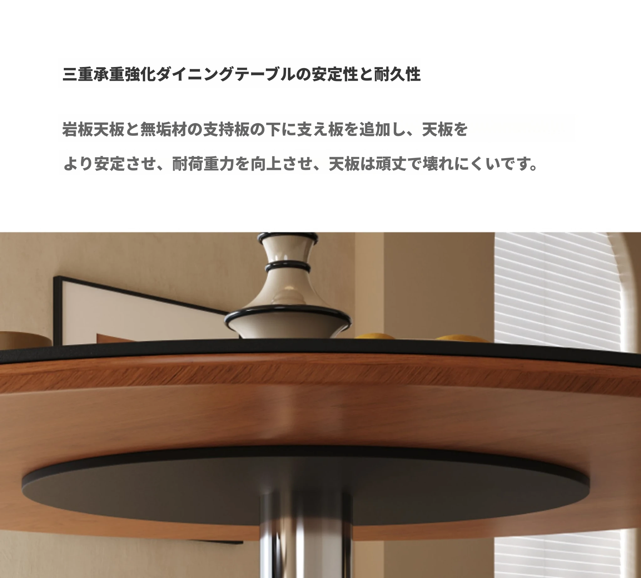 アイボリーホワイト【イタリア輸入岩板】100cmダイニングテーブル