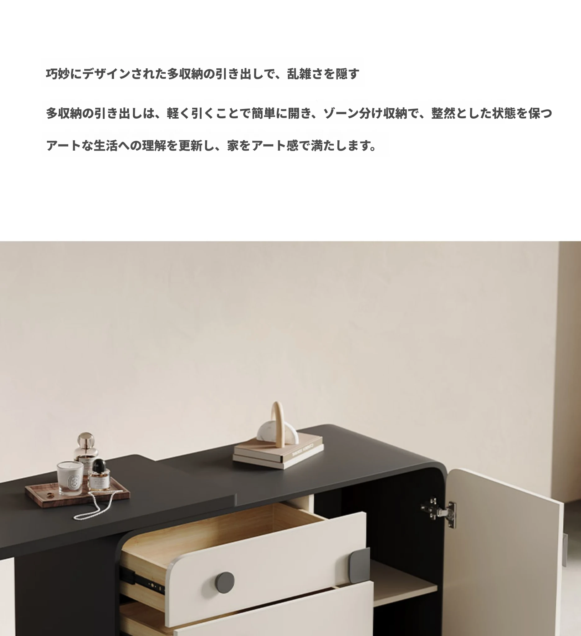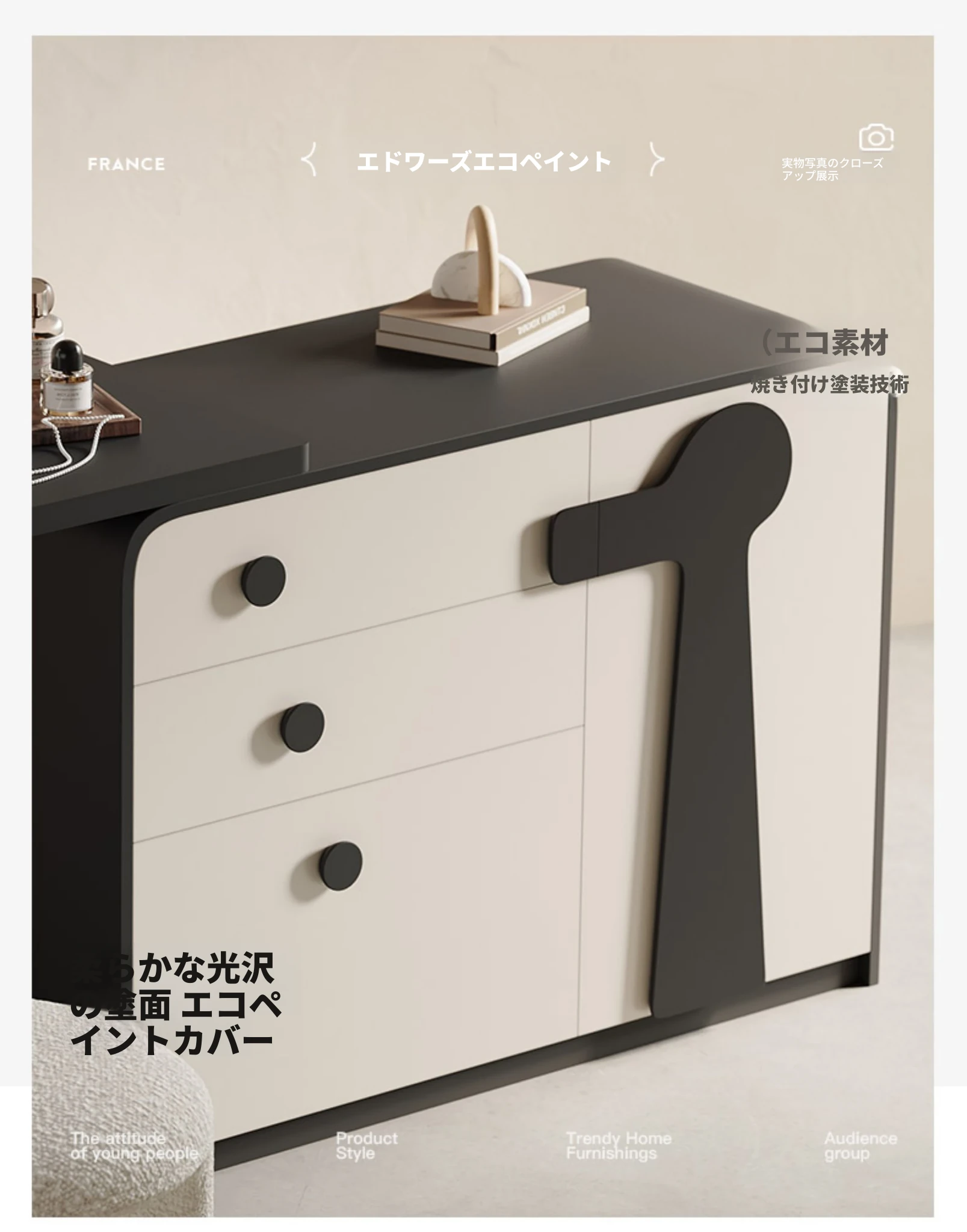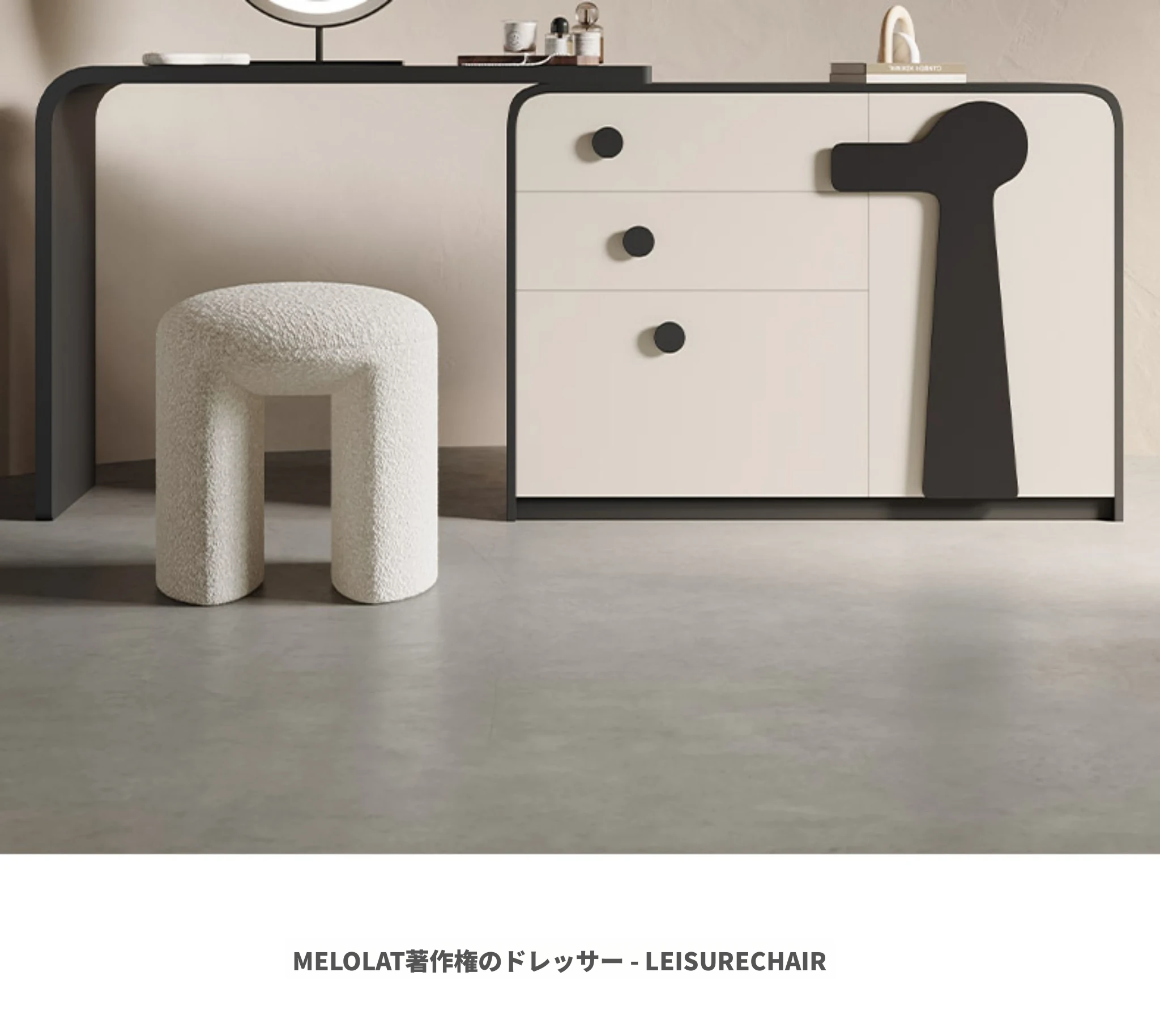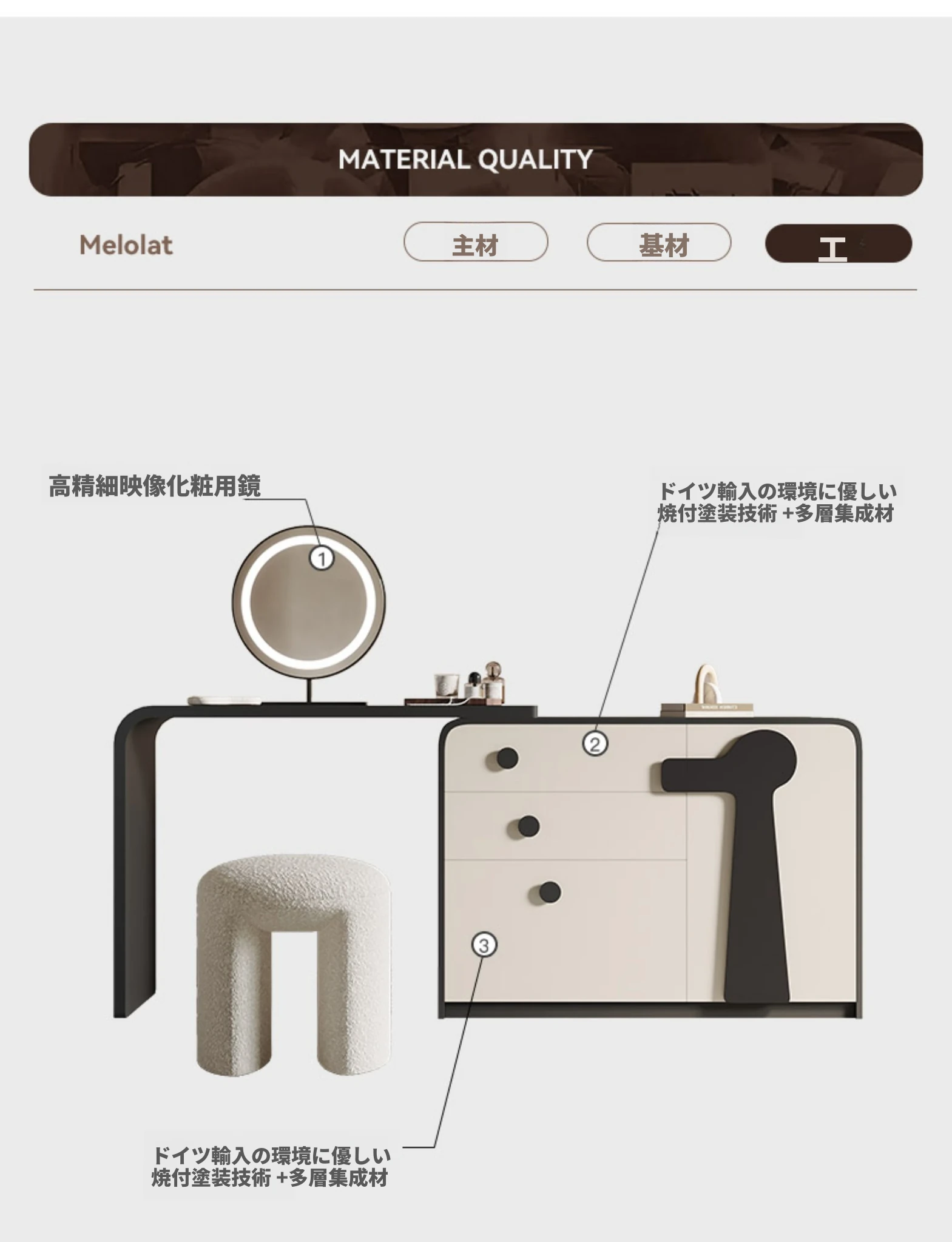 メロラット イタリア製特許コスメティックドレッサー クリーム風デザインのキャビネット一体型 寝室用収納キャビネット 新作シンプルメイクミラー付きテーブルで、心地よい空間を演出します!