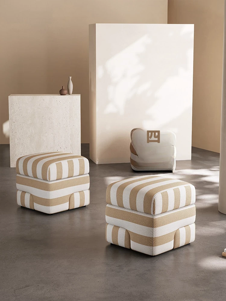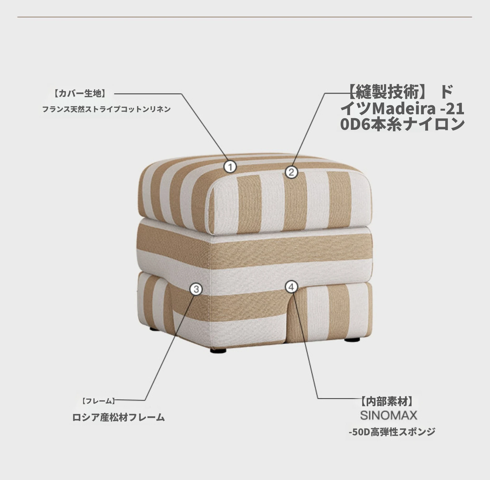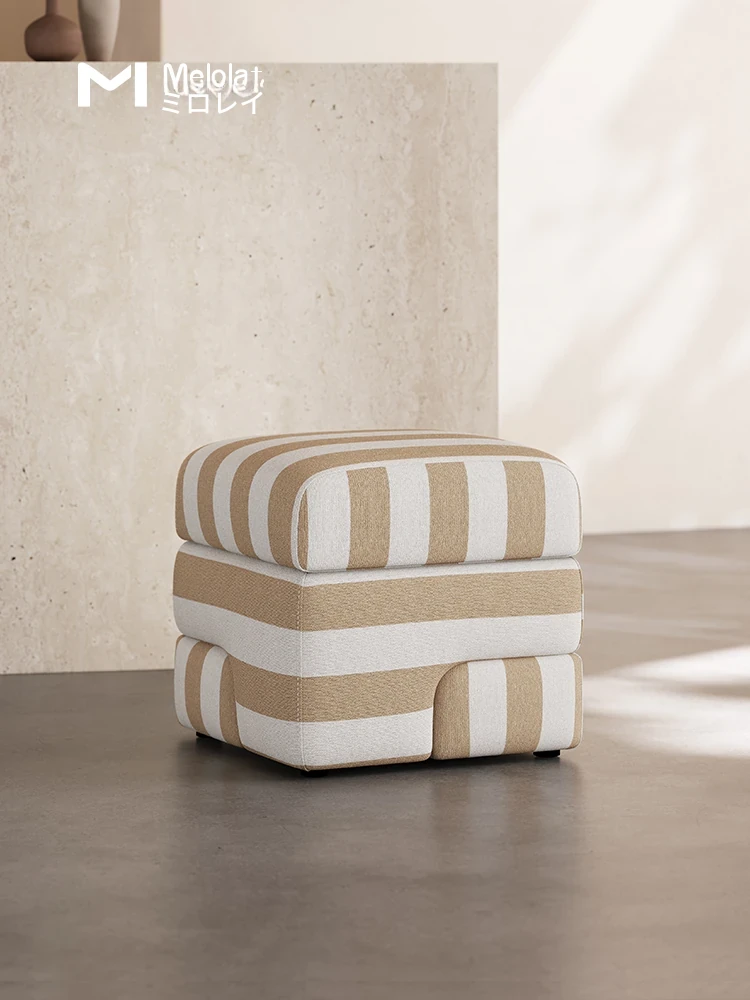 クリエイティブモジュールスツール【フランス輸入天然ストライプコットンリネン】
